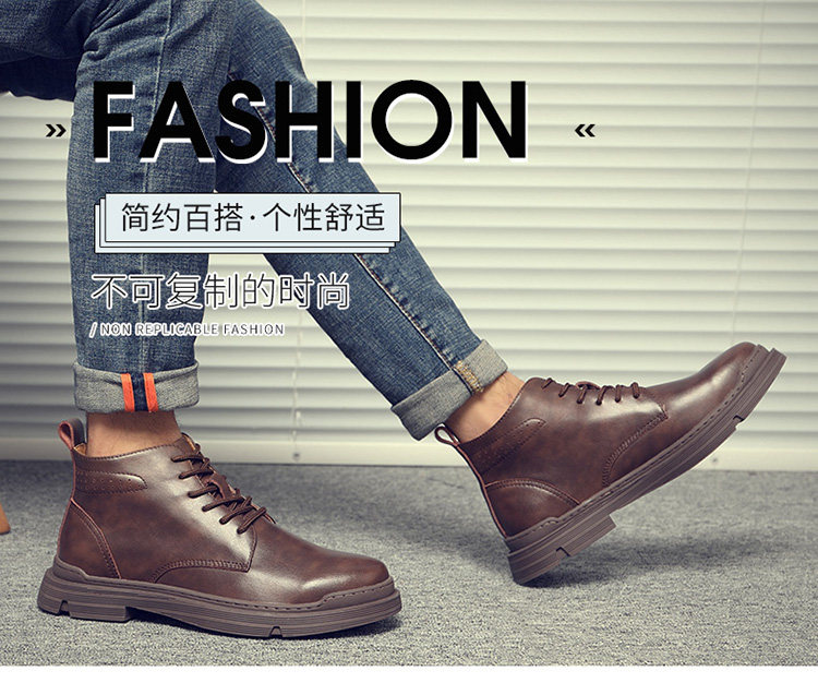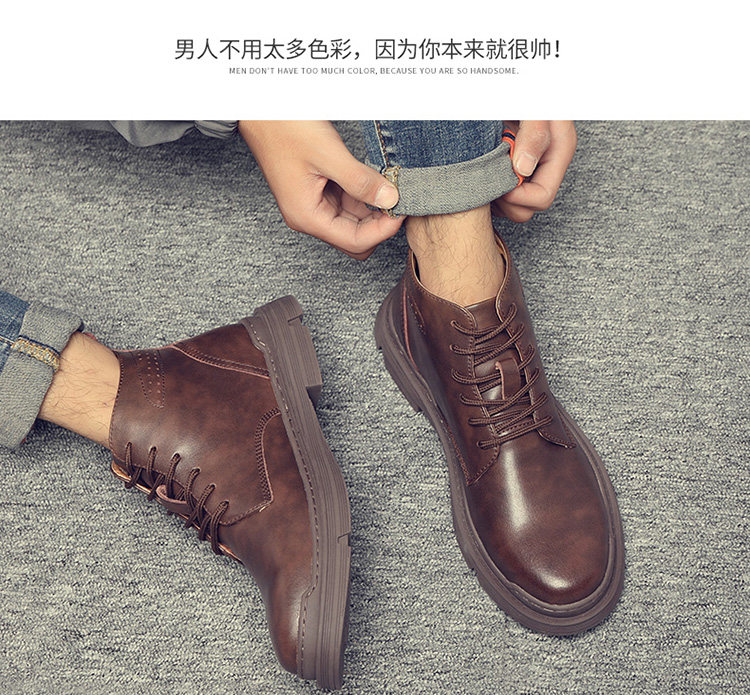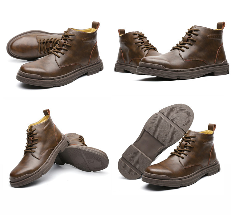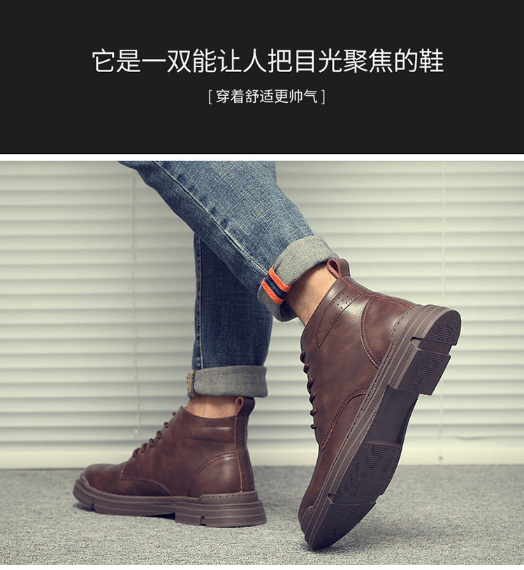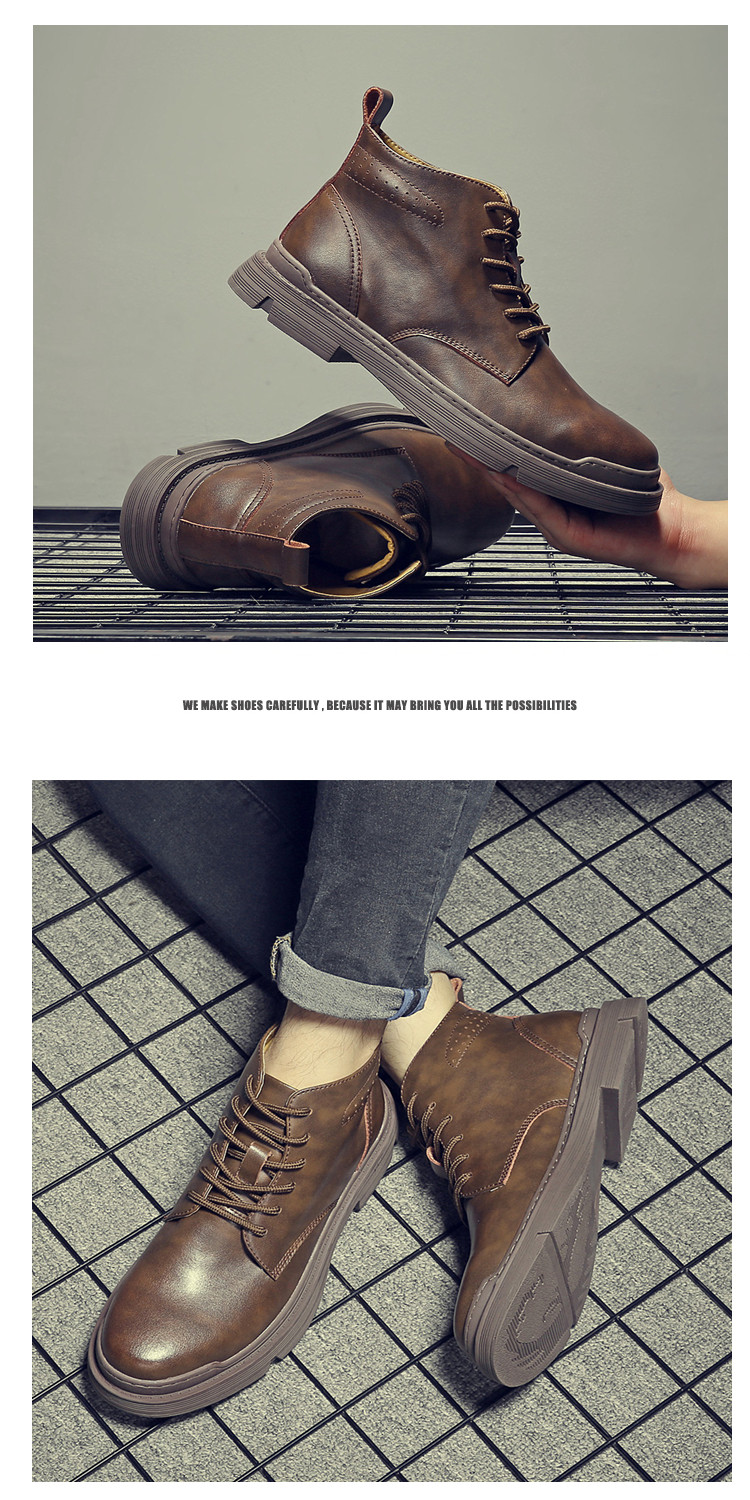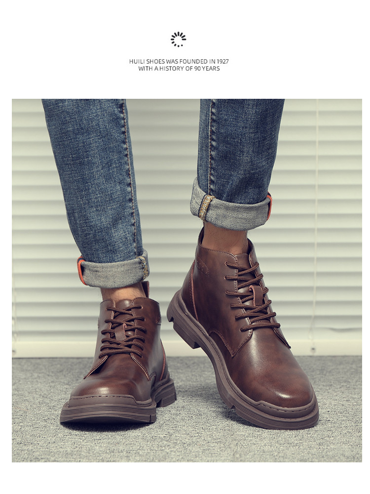 Martin Boots for Men, Winter Fleece-Lined, British Style High-Top Shoes, Trendy Casual Genuine Leather Mid-Top Short Boots, Retro Work Boots