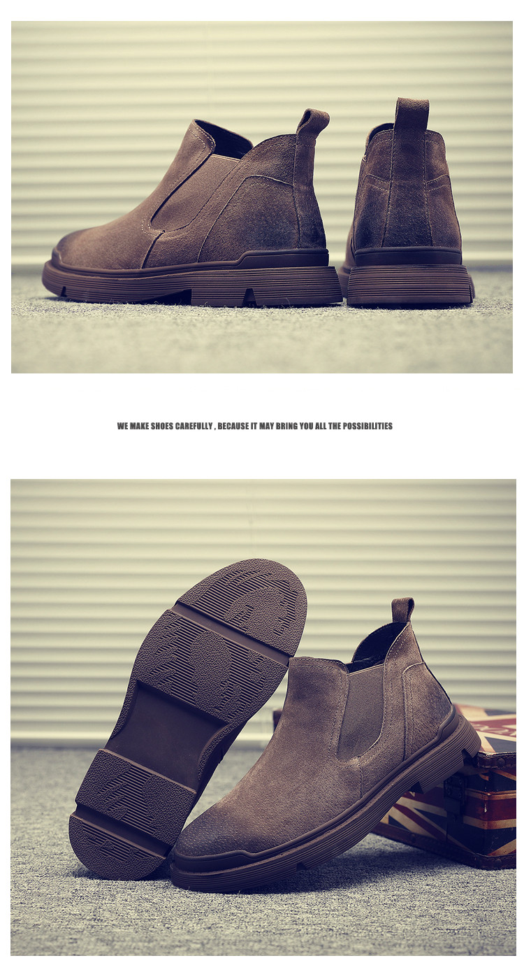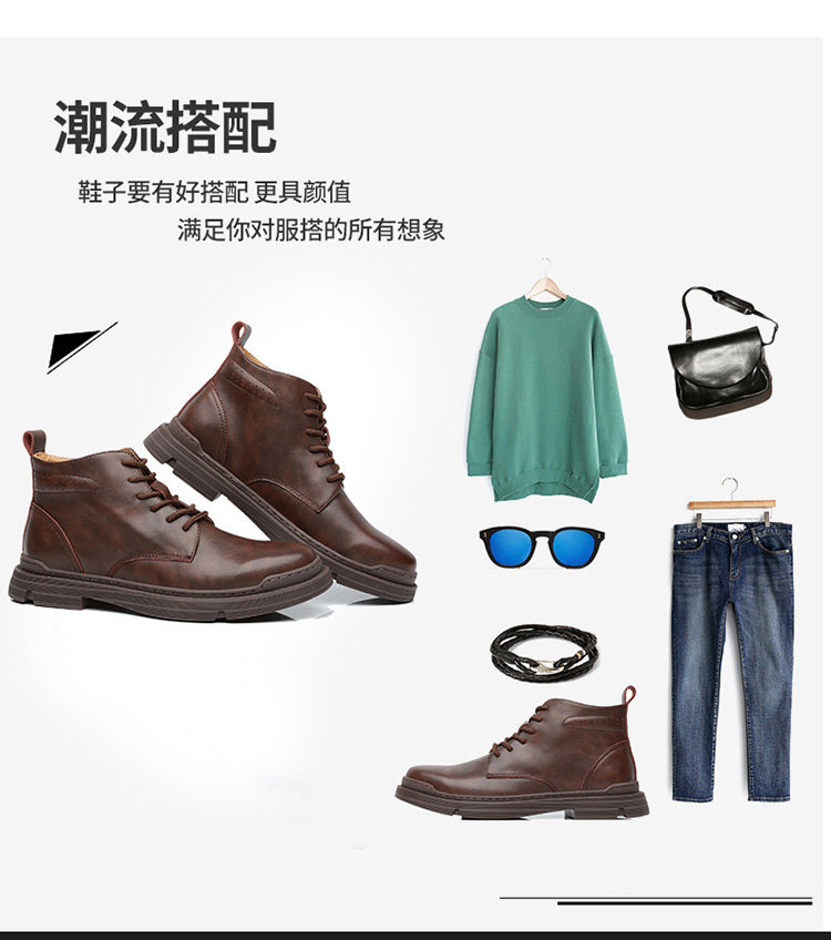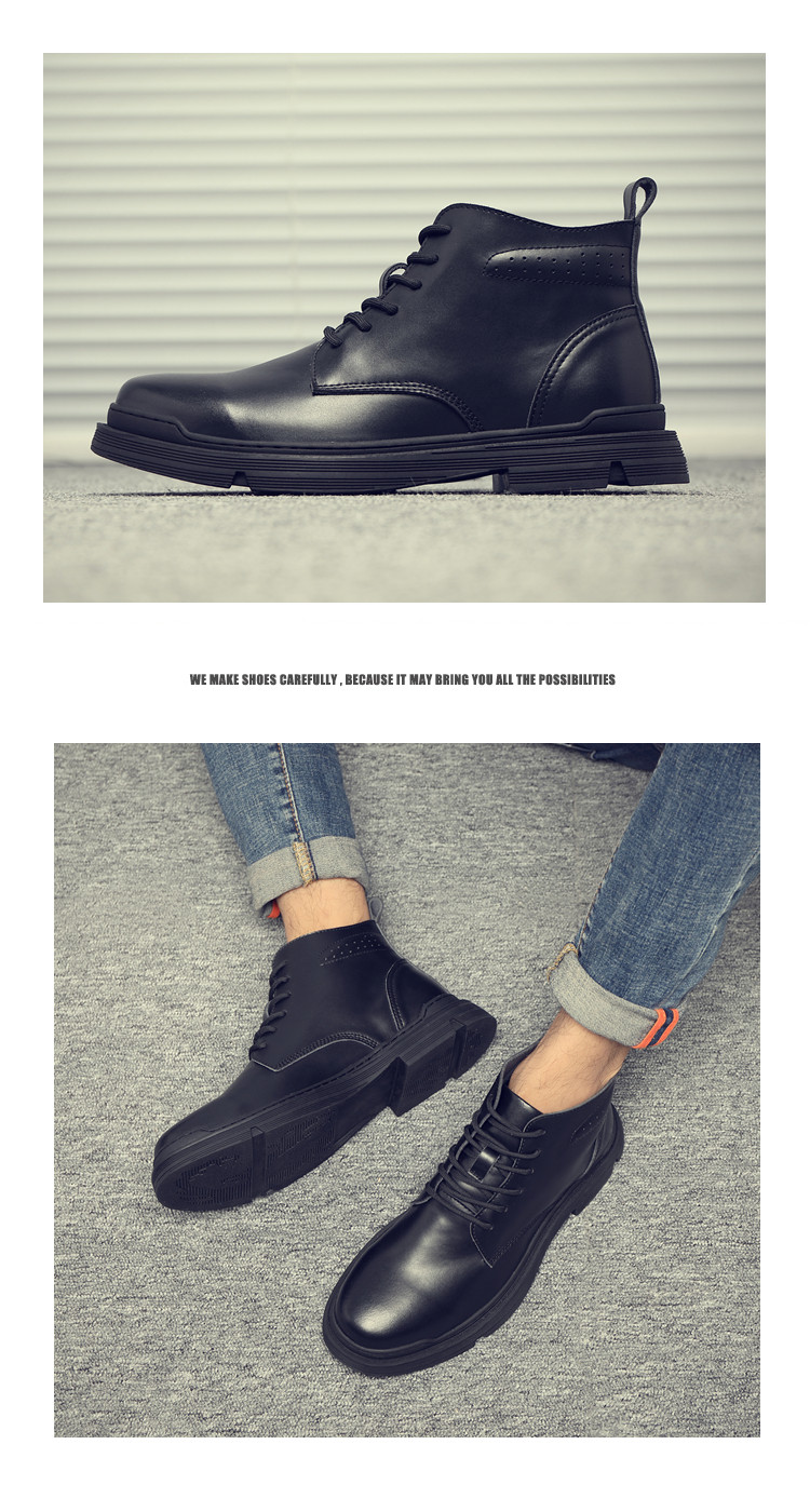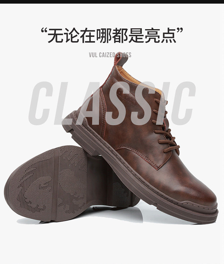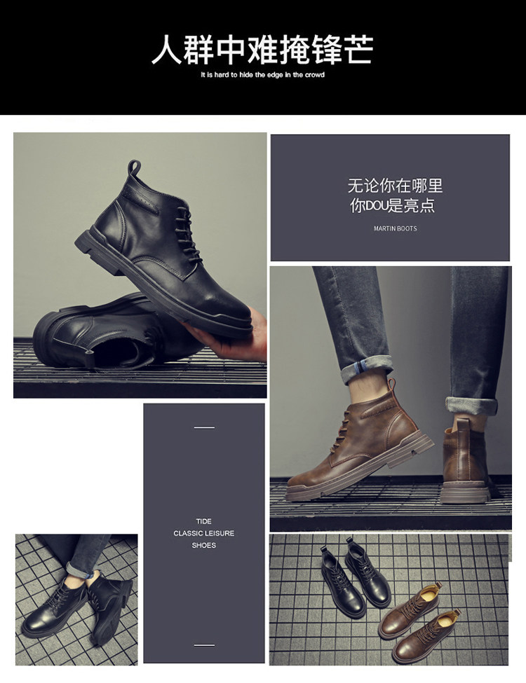 Martin Boots for Men, Winter Fleece-Lined, British Style High-Top Shoes, Trendy Casual Genuine Leather Mid-Top Short Boots, Retro Work Boots