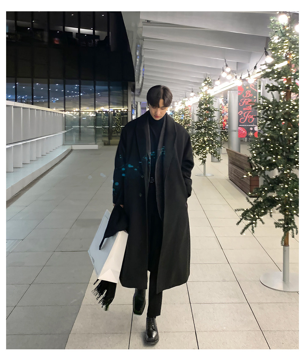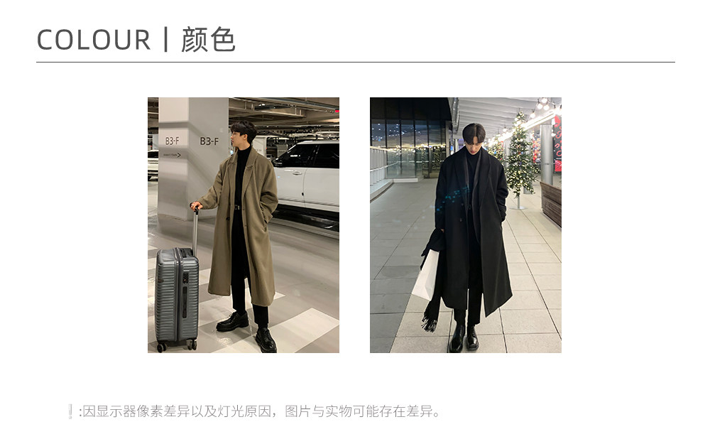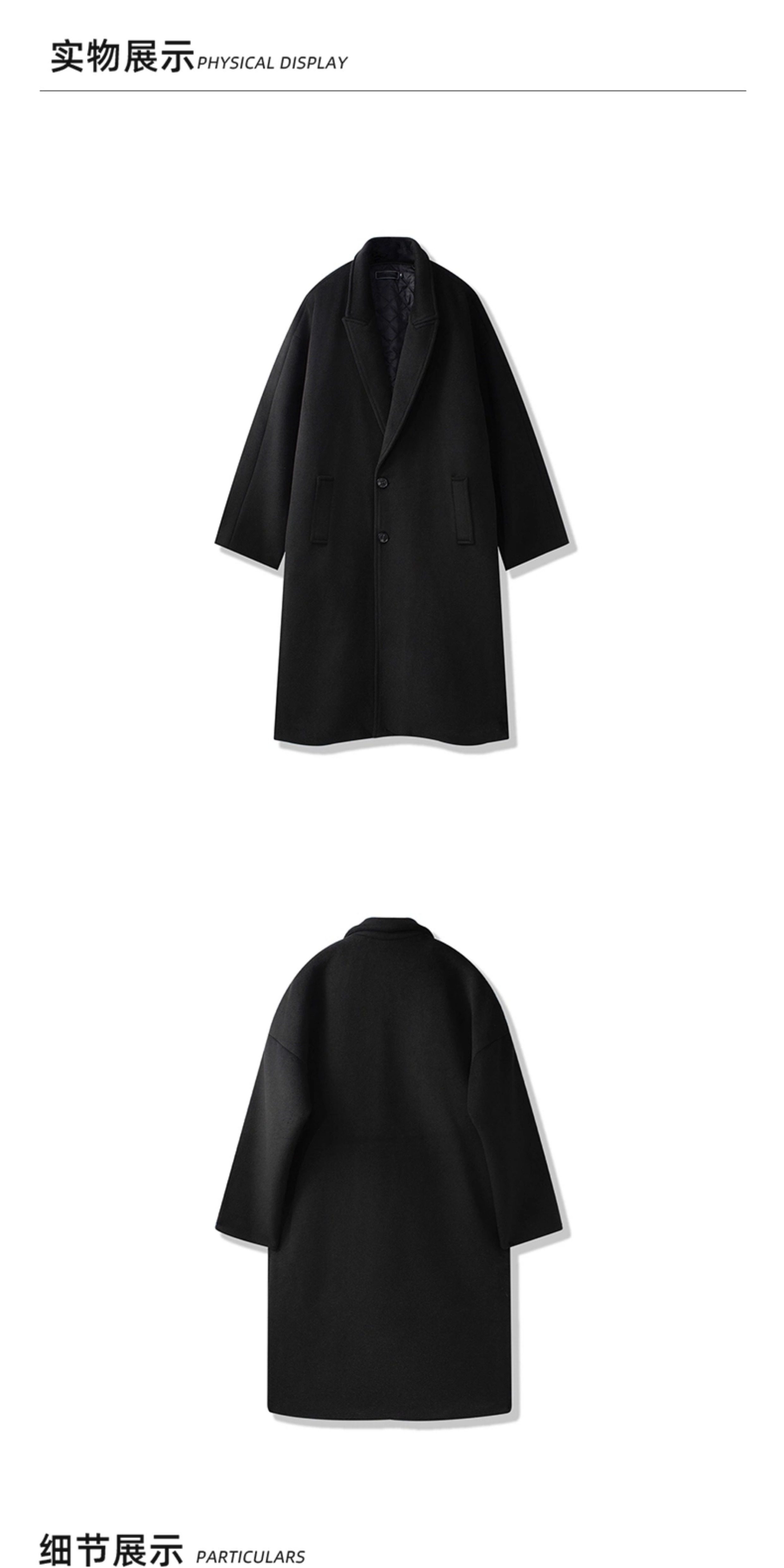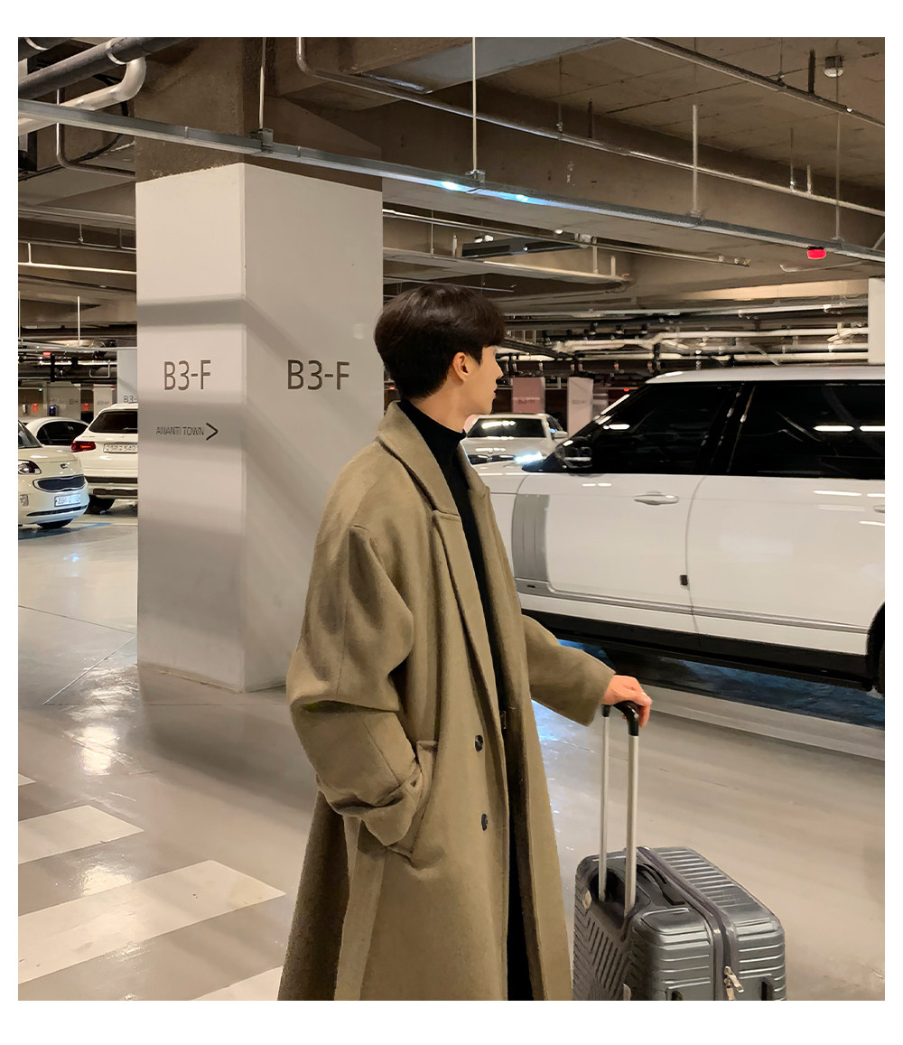 Men's Wool Coat, Winter Thickened Casual Trench Coat, Mid-Length Over-The-Knee Korean Style, Non-Double-Sided Cashmere Woolen Coat, Trendy