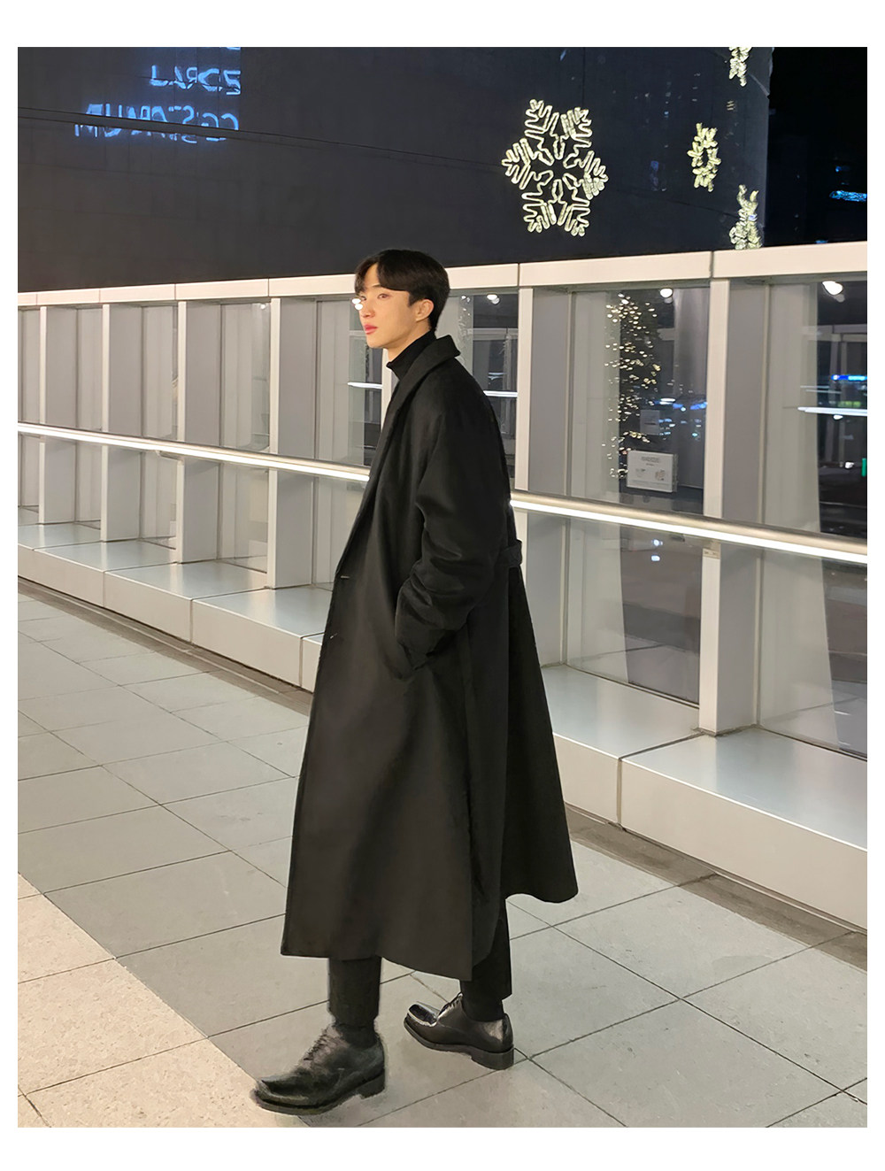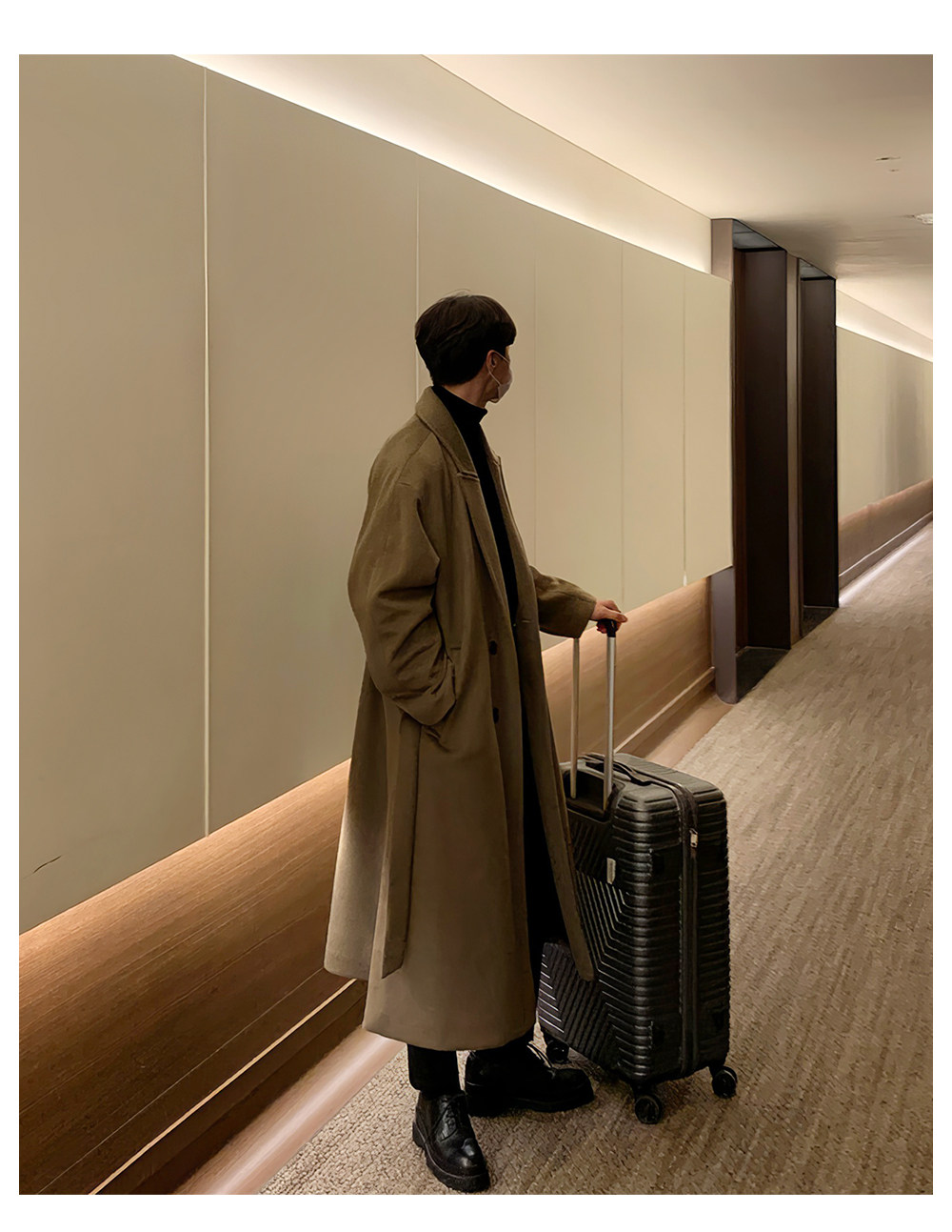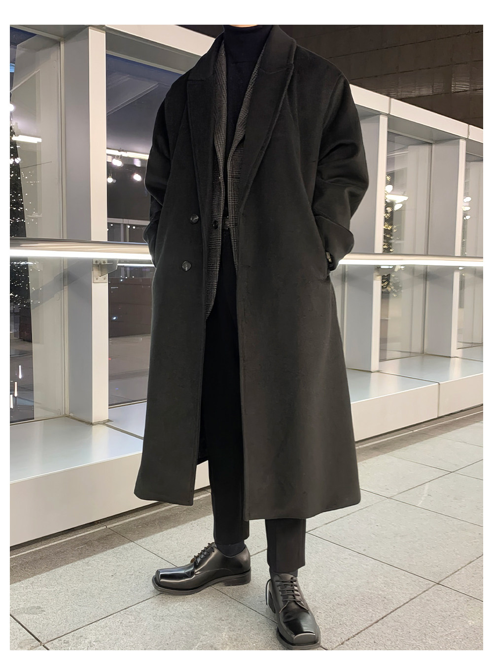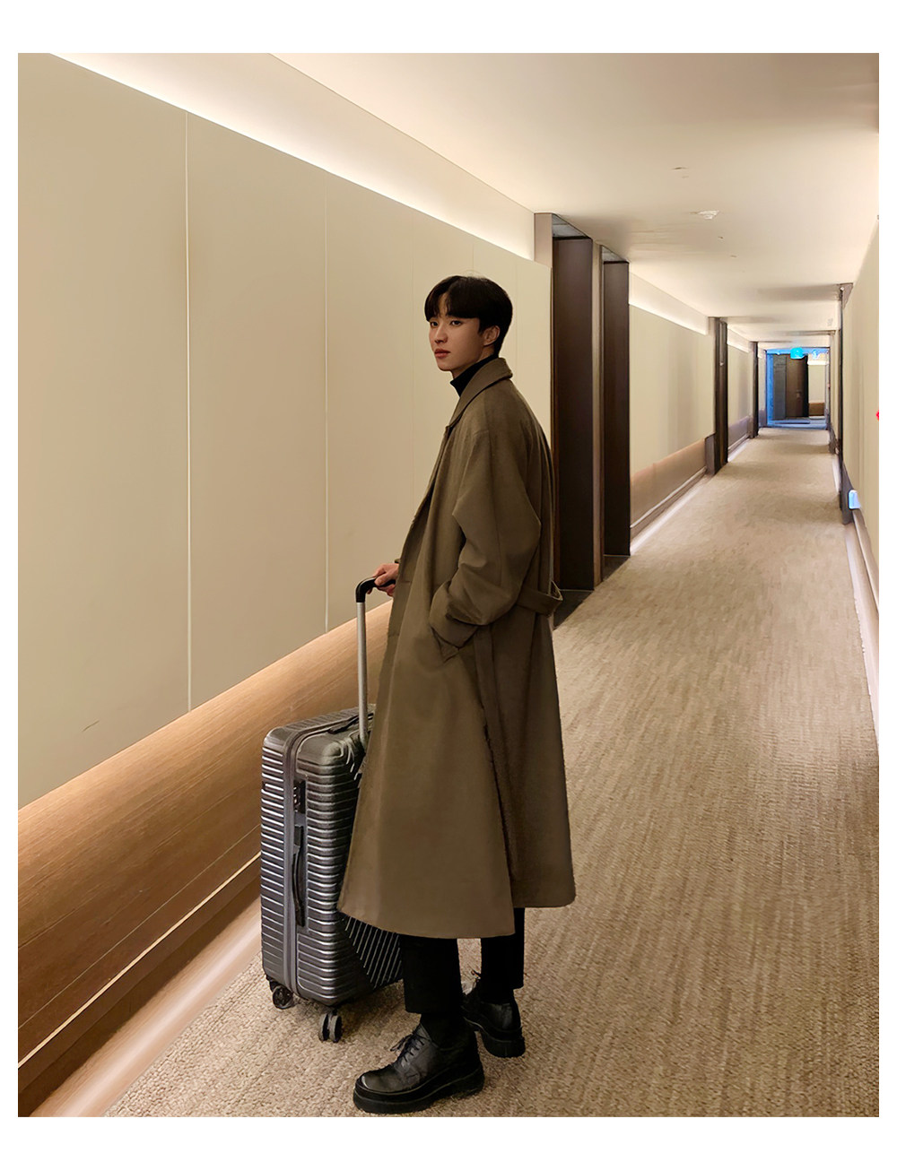 Men's Wool Coat, Winter Thickened Casual Trench Coat, Mid-Length Over-The-Knee Korean Style, Non-Double-Sided Cashmere Woolen Coat, Trendy