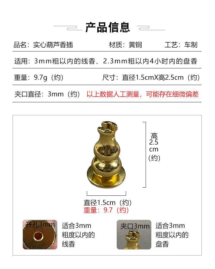 Incense clip, pure copper small gourd incense insert, nine-hole incense insert, incense rack, incense rack, sandalwood rack, incense holder, mosquito repellent incense support frame