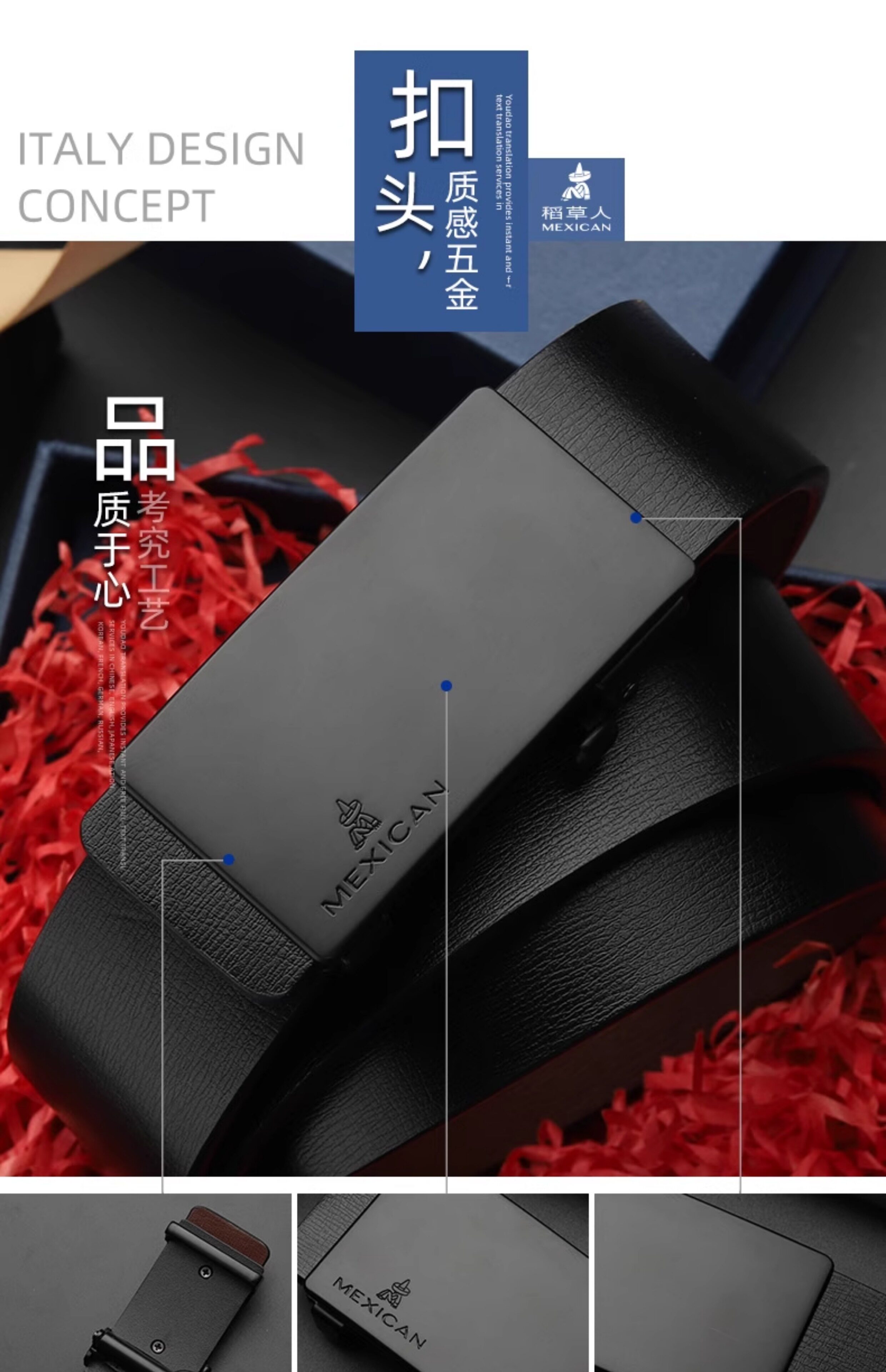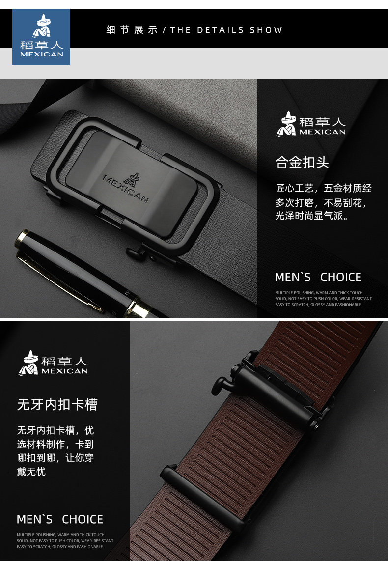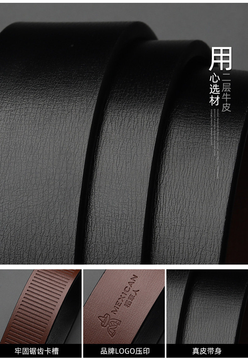 Scarecrow belt men's genuine leather toothless automatic buckle trendy all-match casual men's belt young people jeans belt
