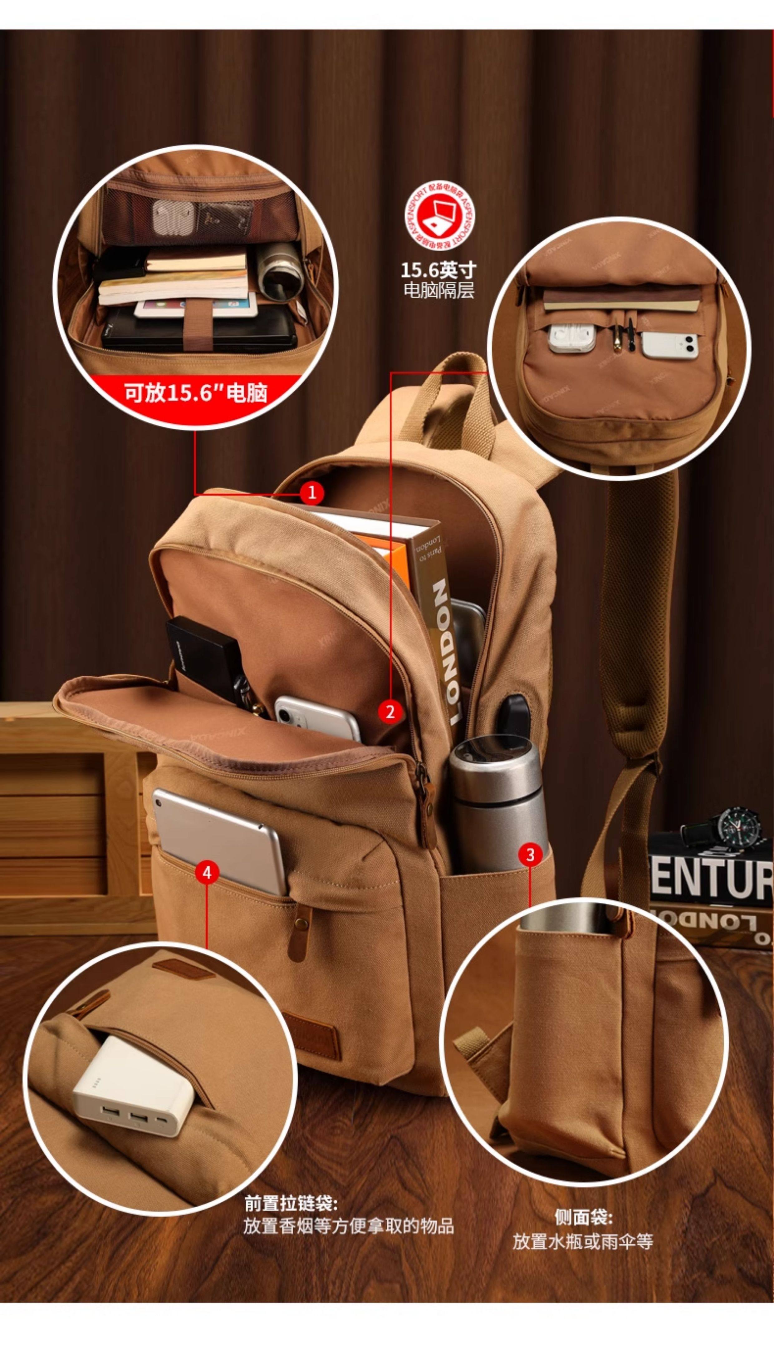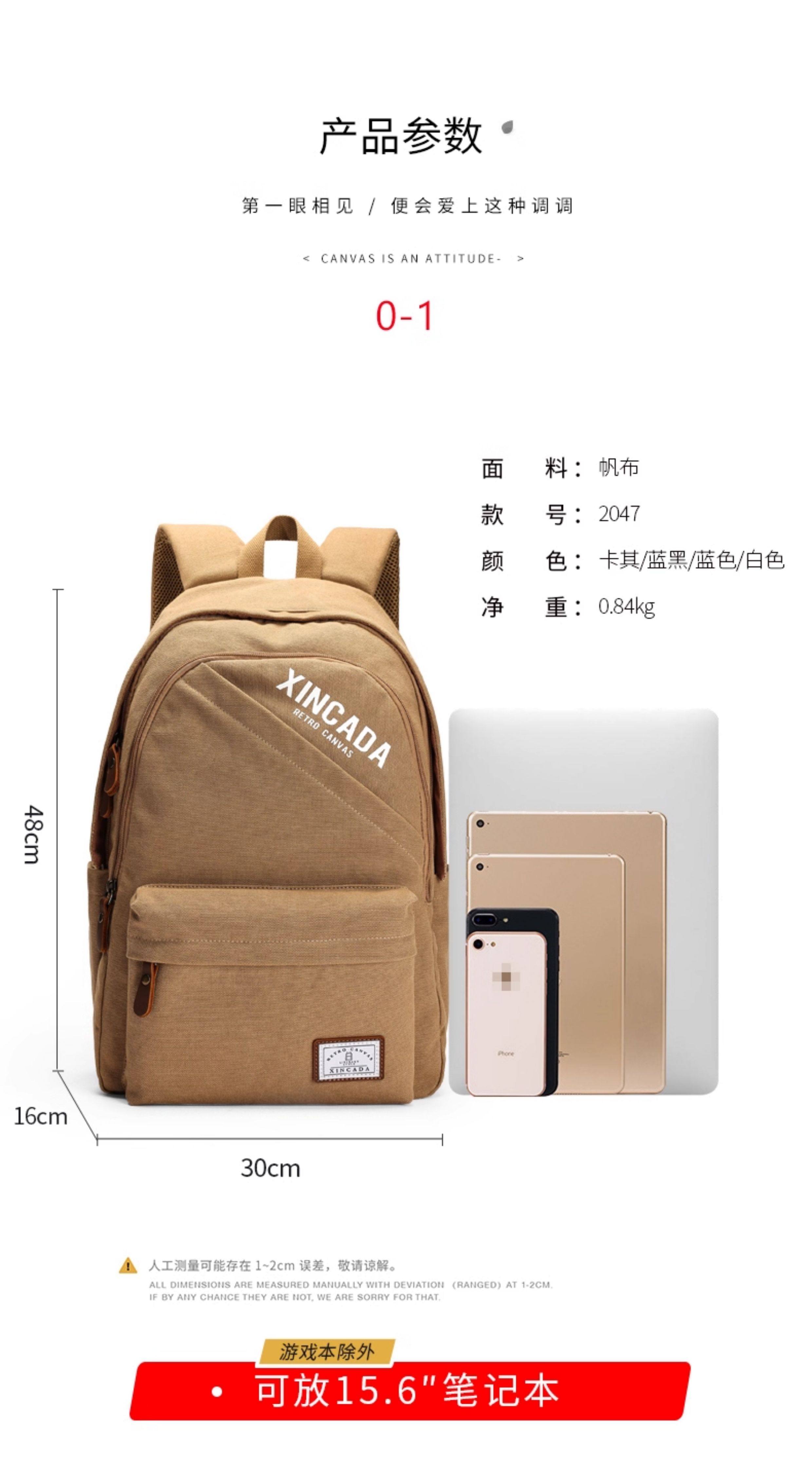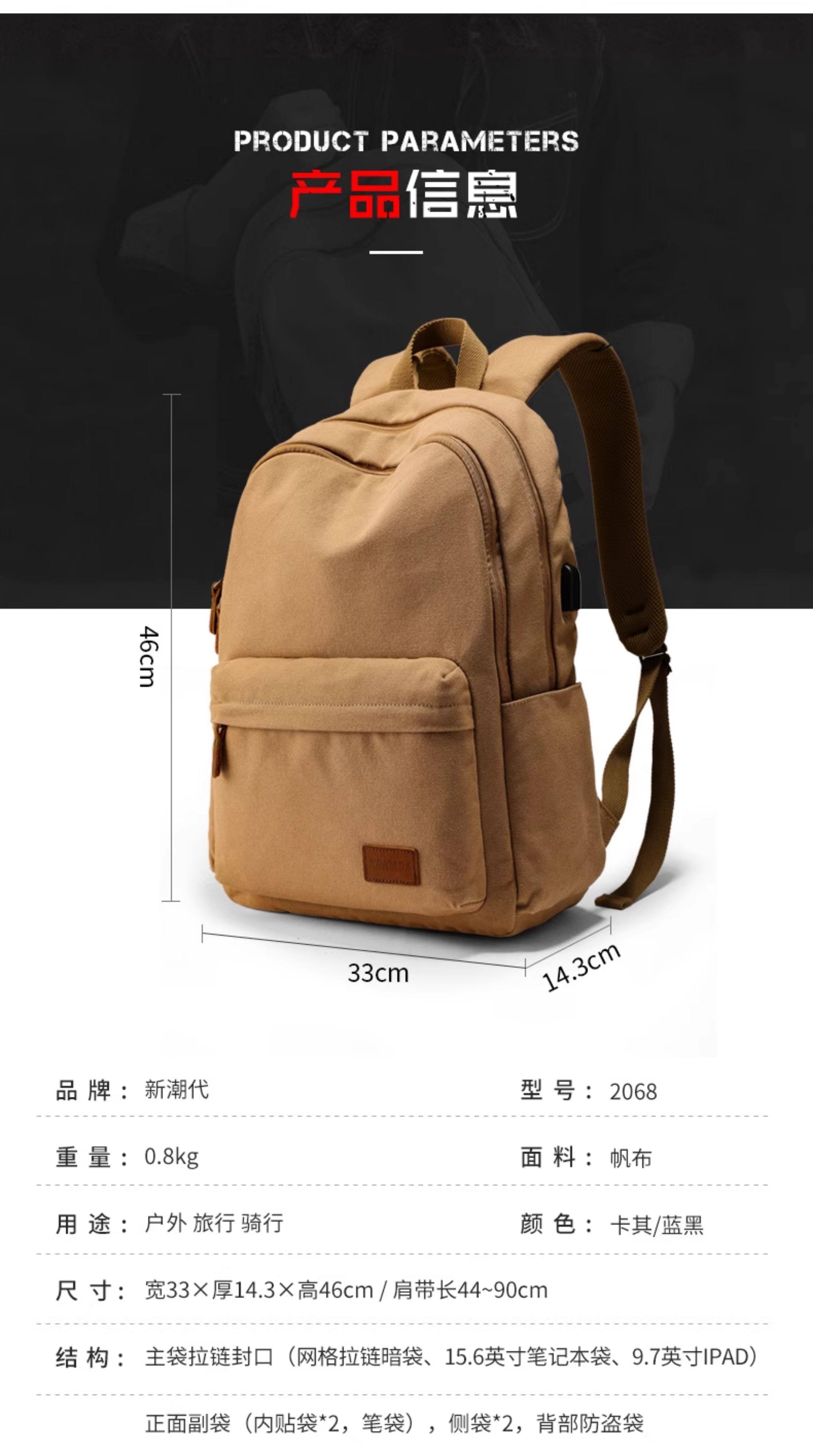 Sports Men's Backpack Casual High School Student School Bag Canvas College Student Travel Computer Backpack Retro Campus
