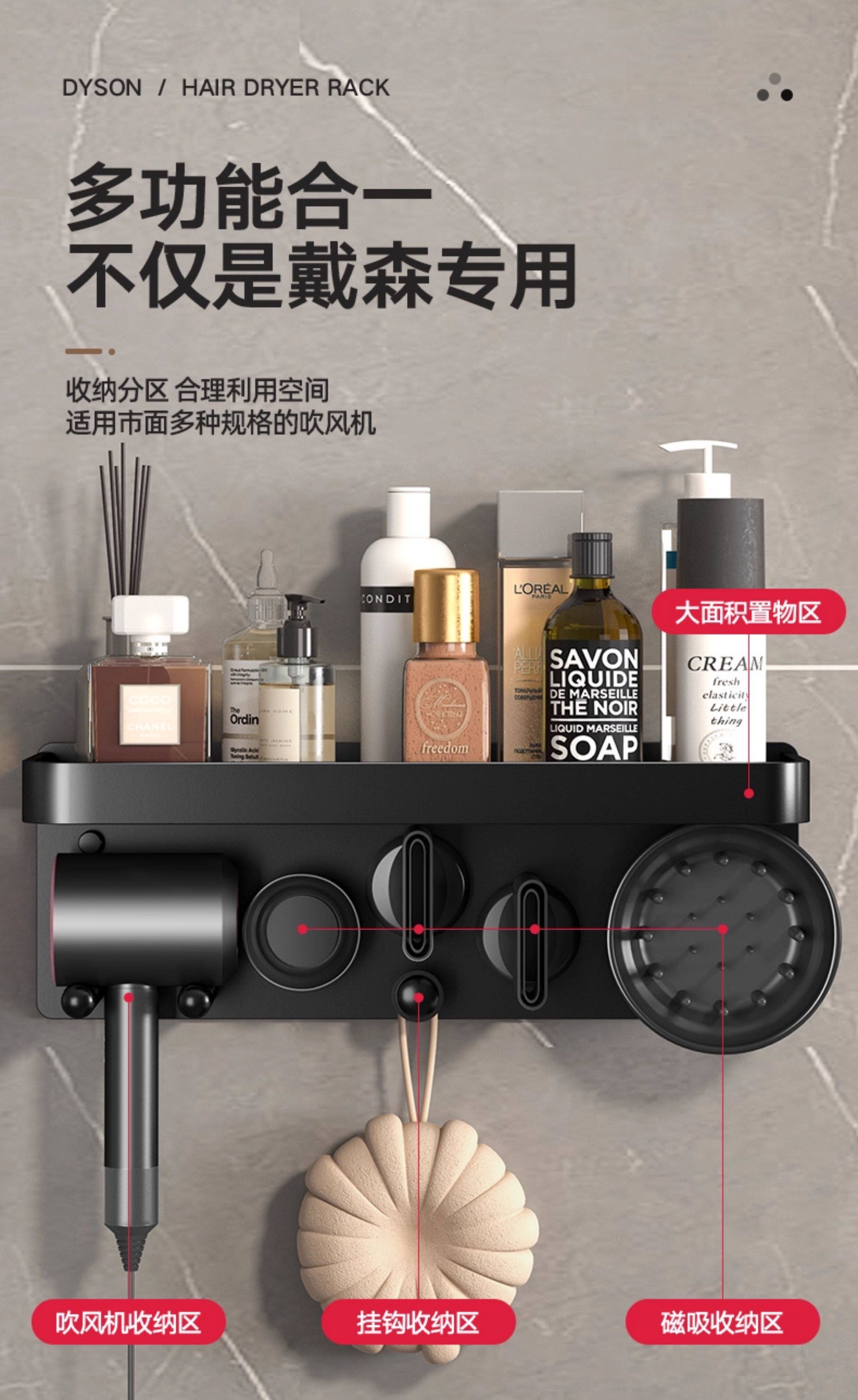 Dyson Hair Dryer Holder Bathroom Storage Rack No-Drill Wall-Mounted Bathroom Wall Hair Dryer Storage Rack