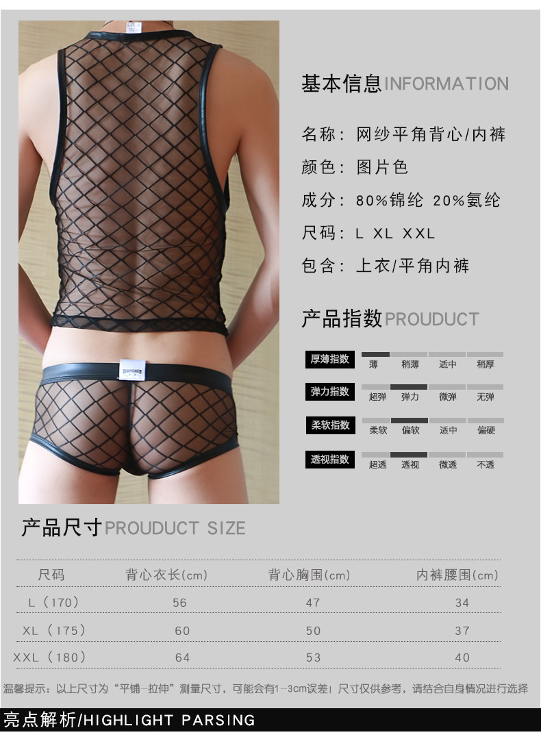 Men's Sexy Erotic See-Through Vest, Tight-Fitting Underwear, Lingerie Set, Adult Products, Sex Tools, Temptation Boxer Briefs