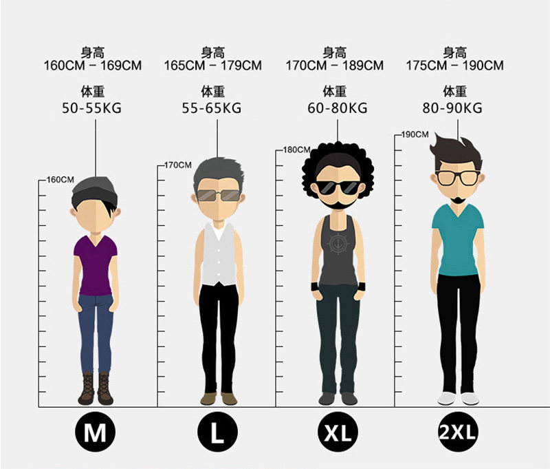 China (cm) 165 / 88-90 170 / 96-98 175 / 108-110 180 / 118-122 185 / 126-130