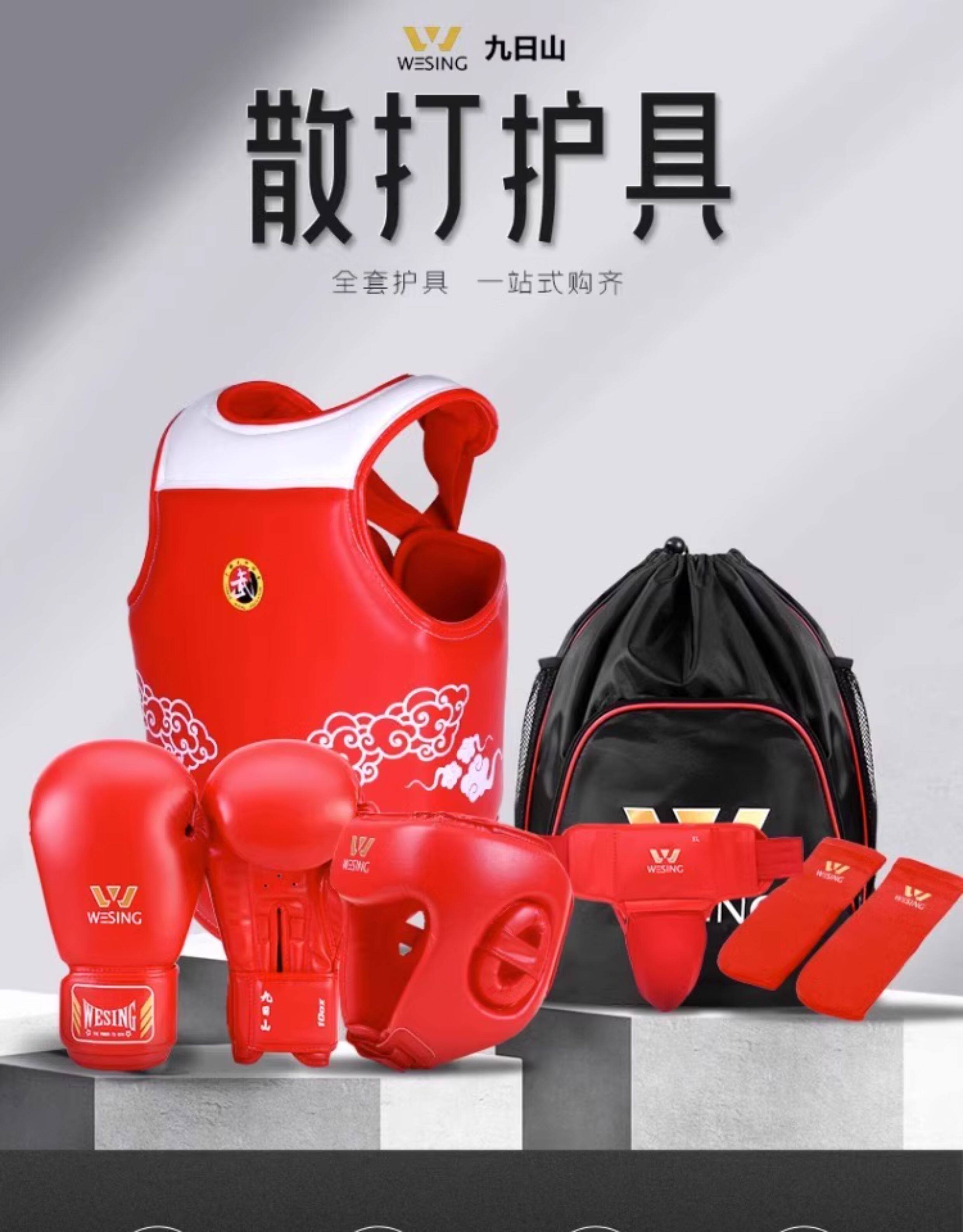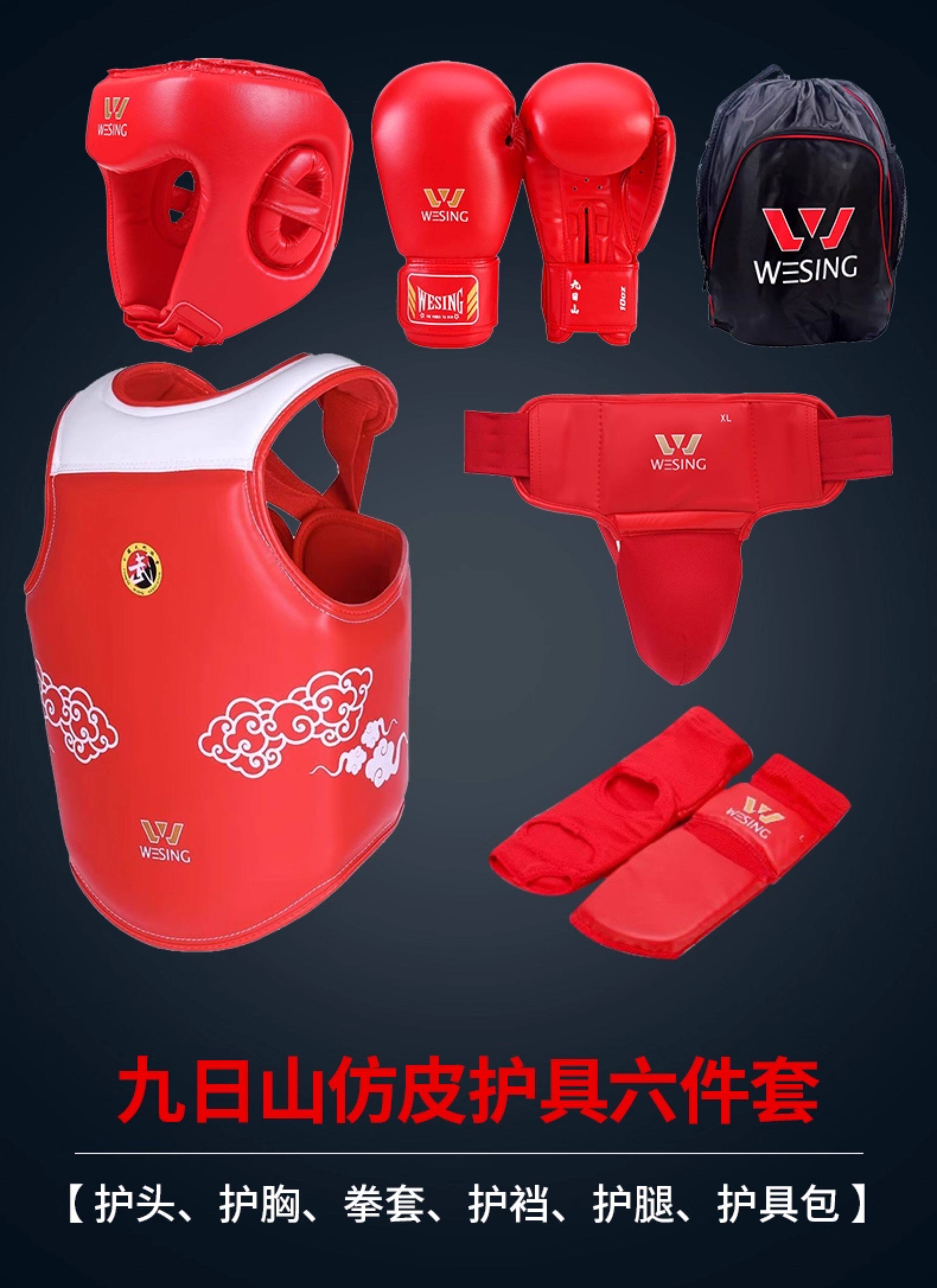 Jiurishan professional competition Sanda protective gear complete set for adults and children full imitation leather professional training equipment boxing gloves set