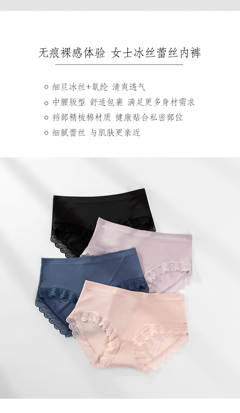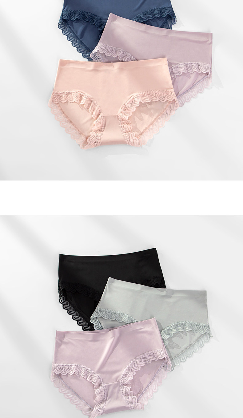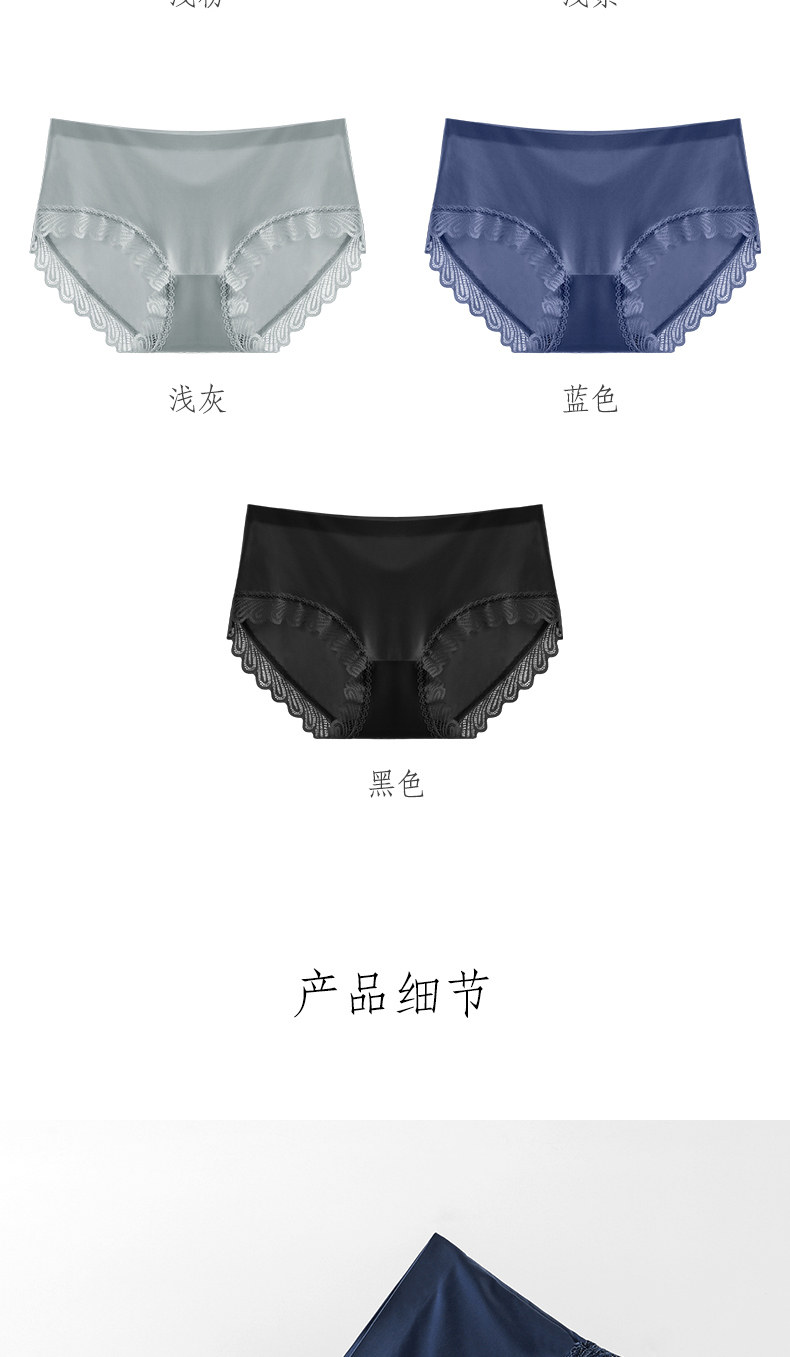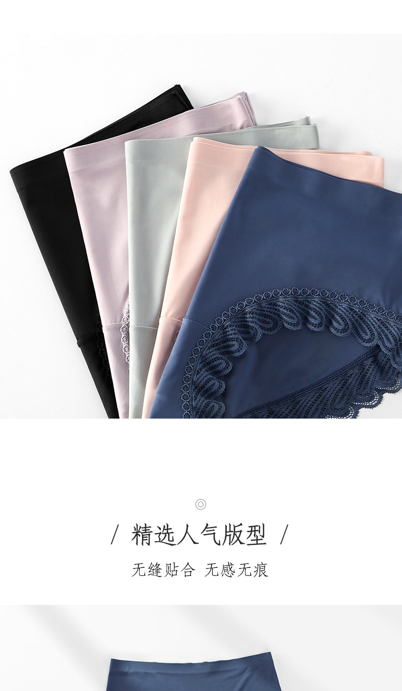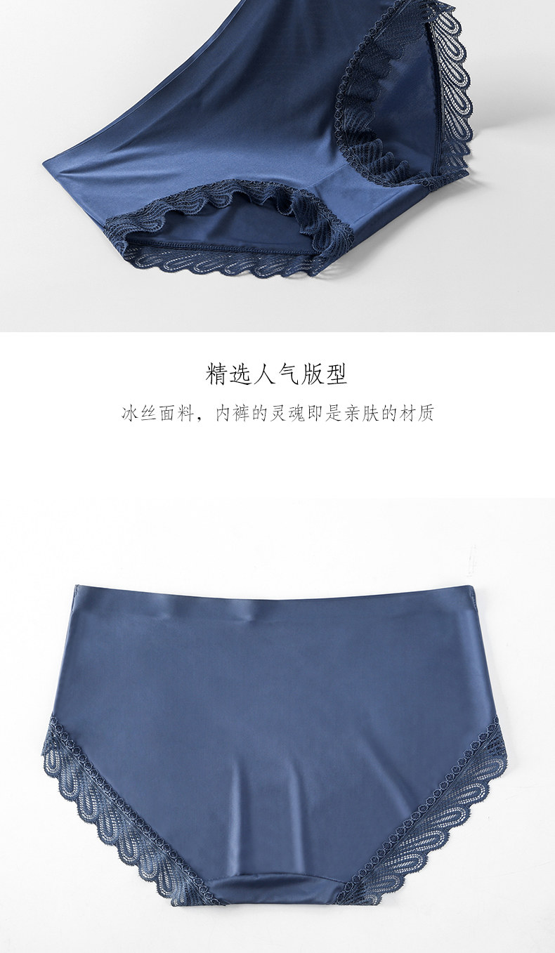 One-piece seamless sexy lace-edged pure cotton crotch panties for women, mid-waist breathable ice silk triangle shorts with thin top