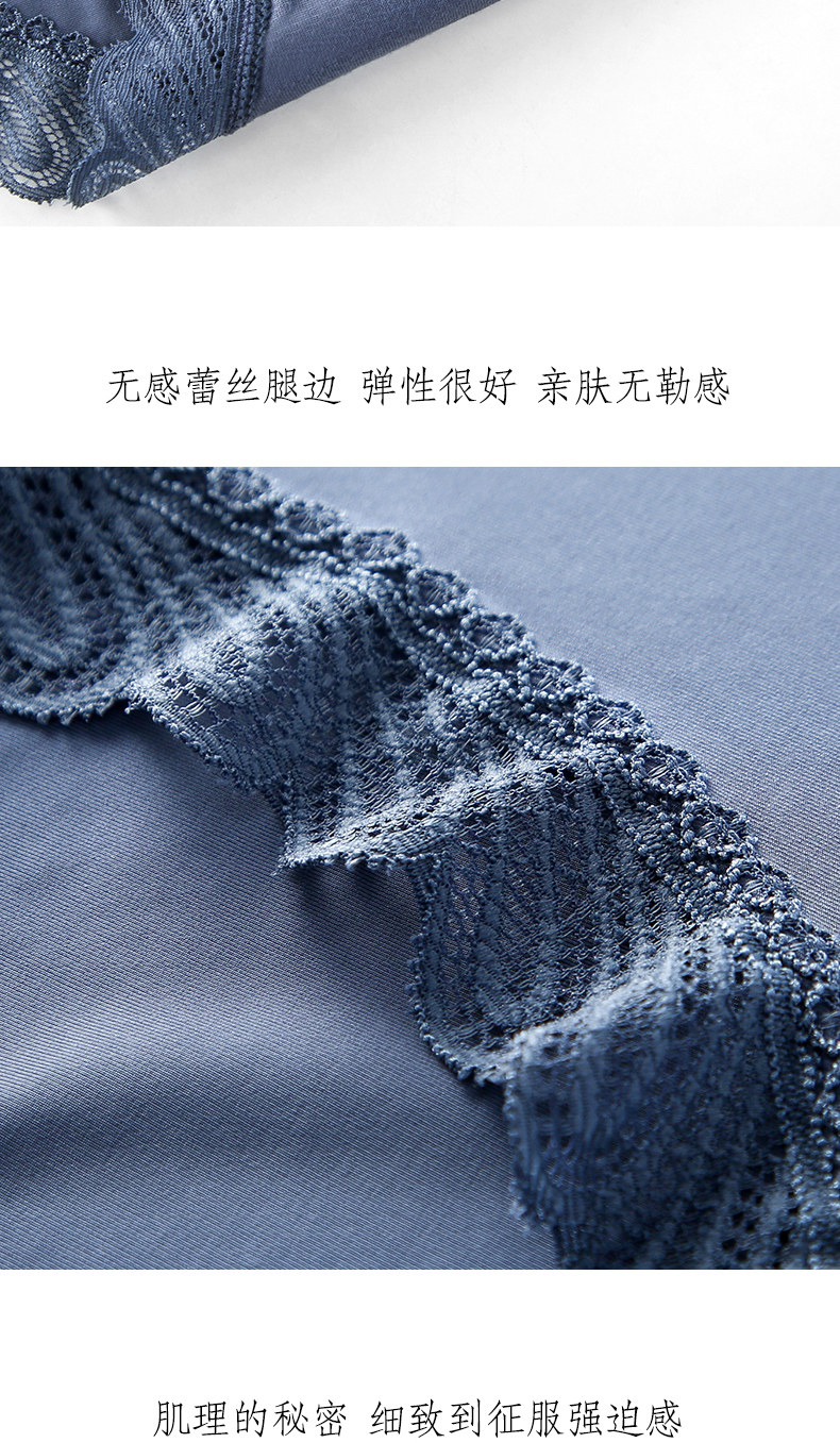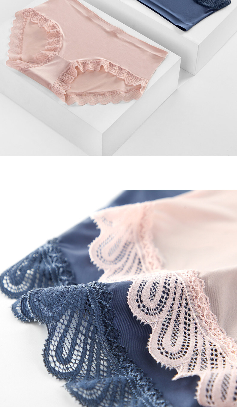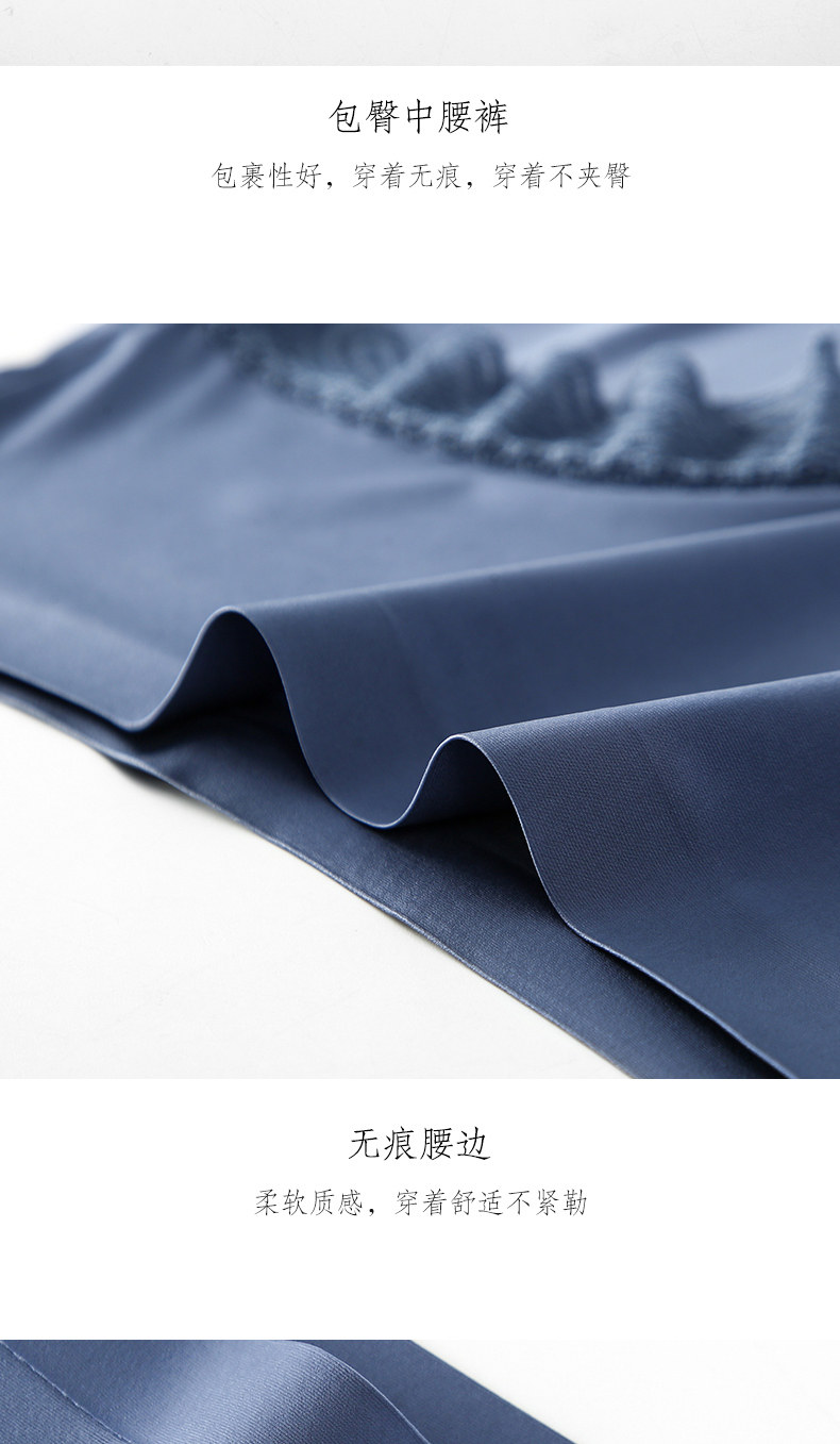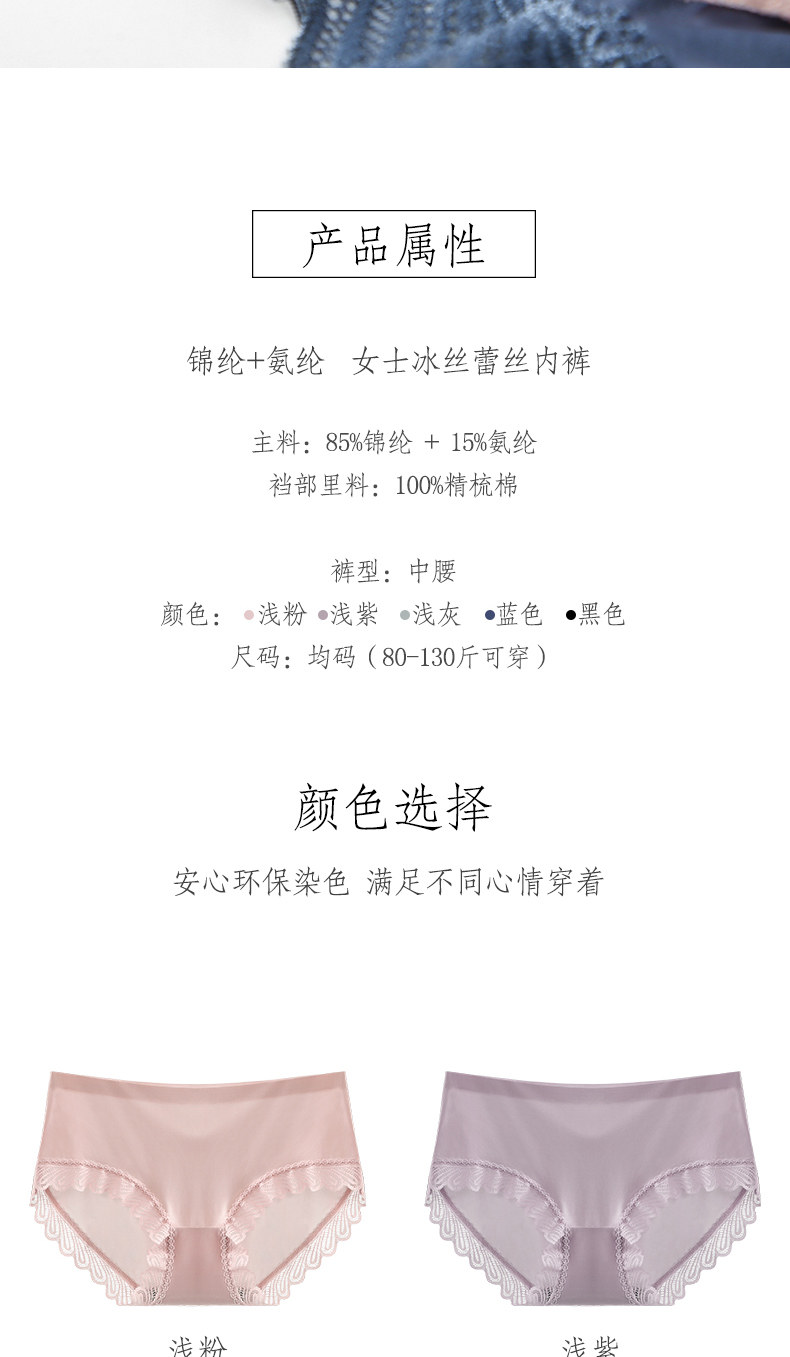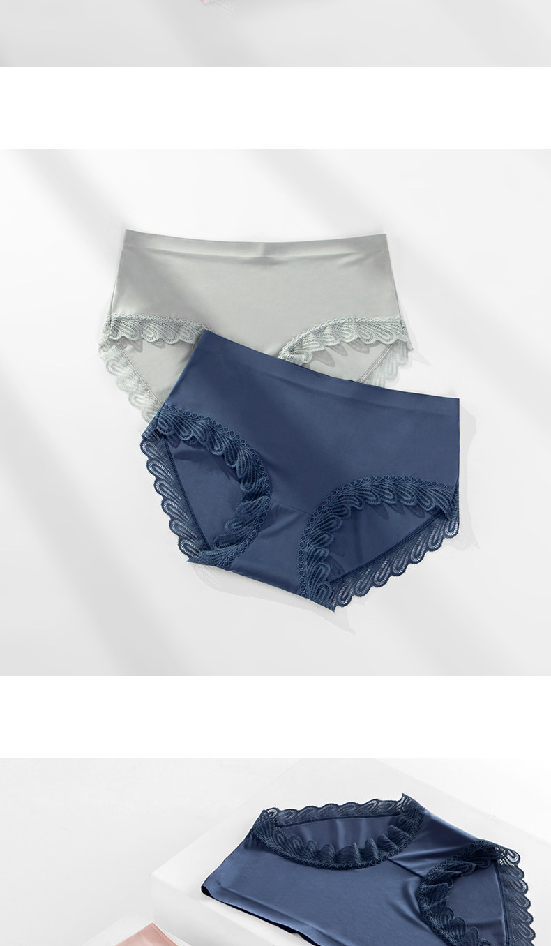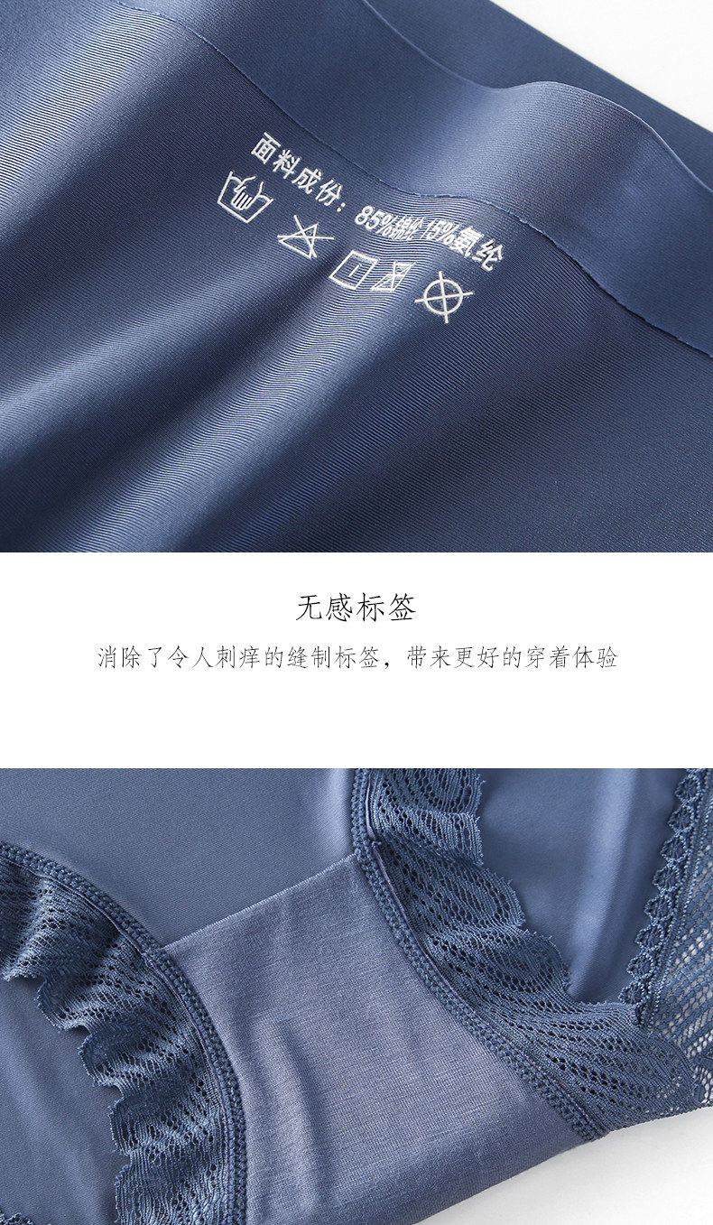 One-piece seamless sexy lace-edged pure cotton crotch panties for women, mid-waist breathable ice silk triangle shorts with thin top