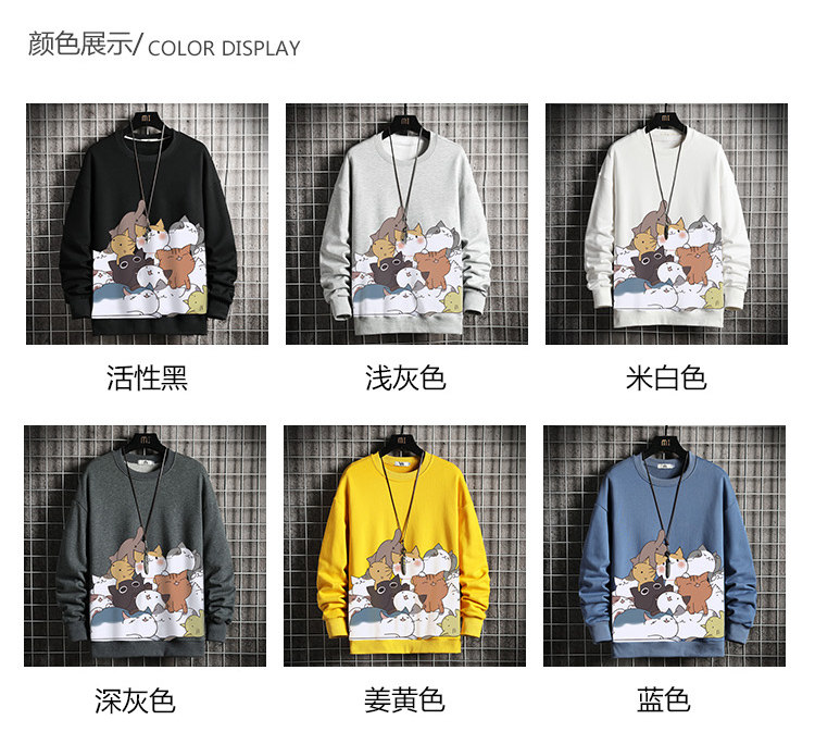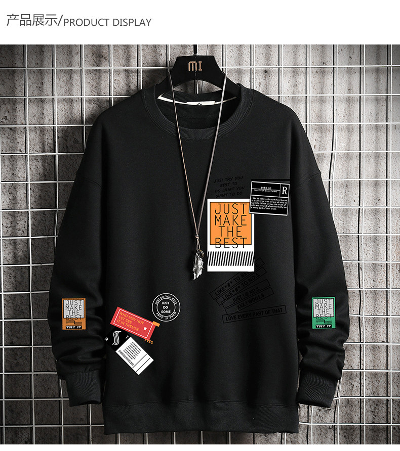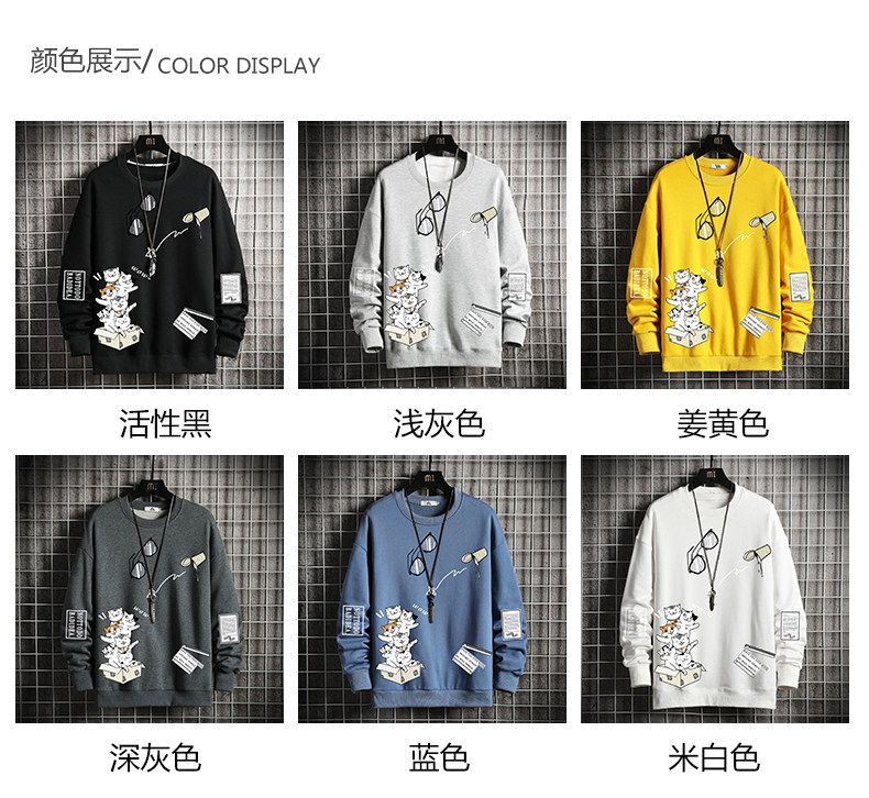 Autumn and Winter Fleece-Lined Thickened Sweatshirt for Men, Korean Style Trendy Loose-Fitting Large Size Long-Sleeve Thermal Clothing
