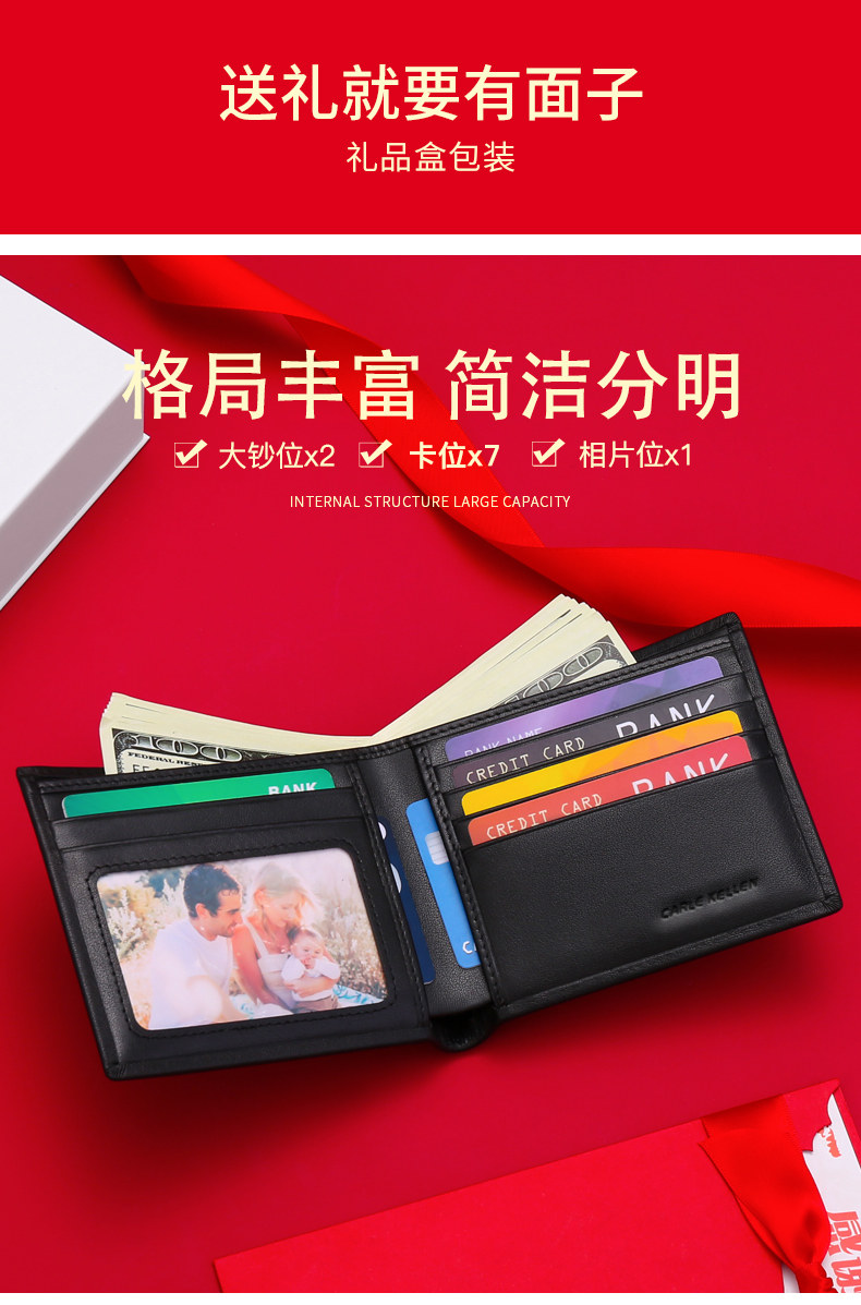 Authentic Carle Kellen Wallet Men's Genuine Leather Short Style Men's 2023 New Multi-Functional Wallet Birthday Gift