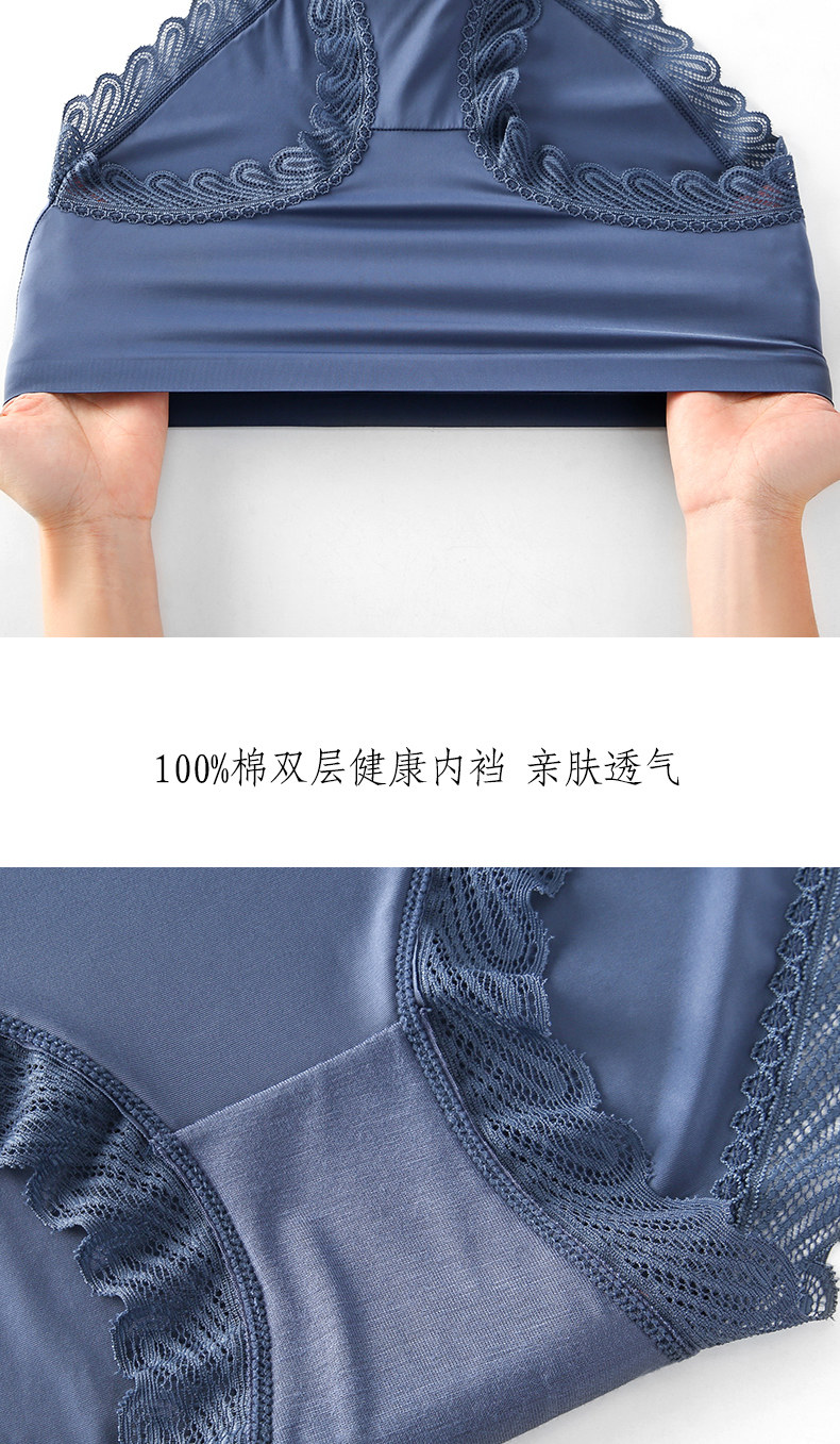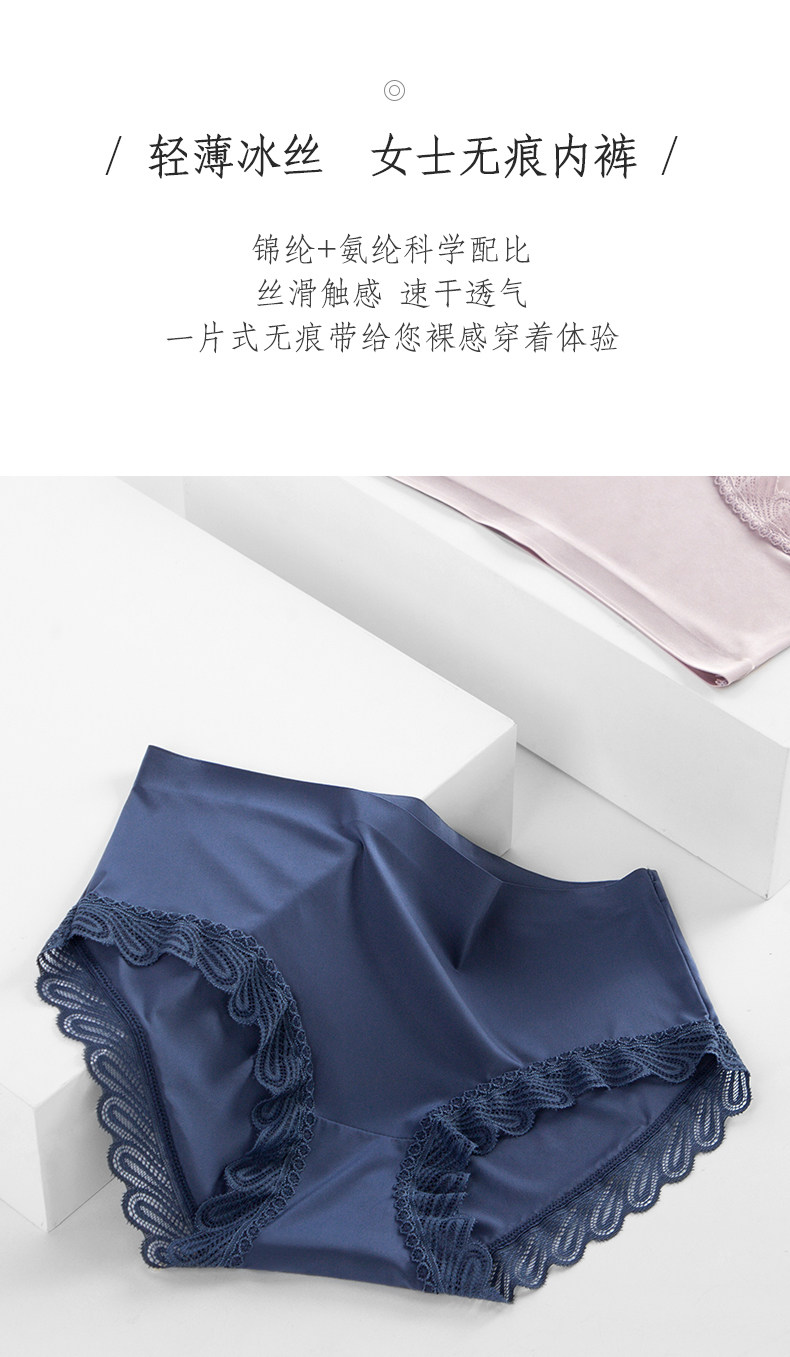 One-piece seamless lace pure cotton crotch underwear for women mid-waist ice silk comfortable briefs summer thin style