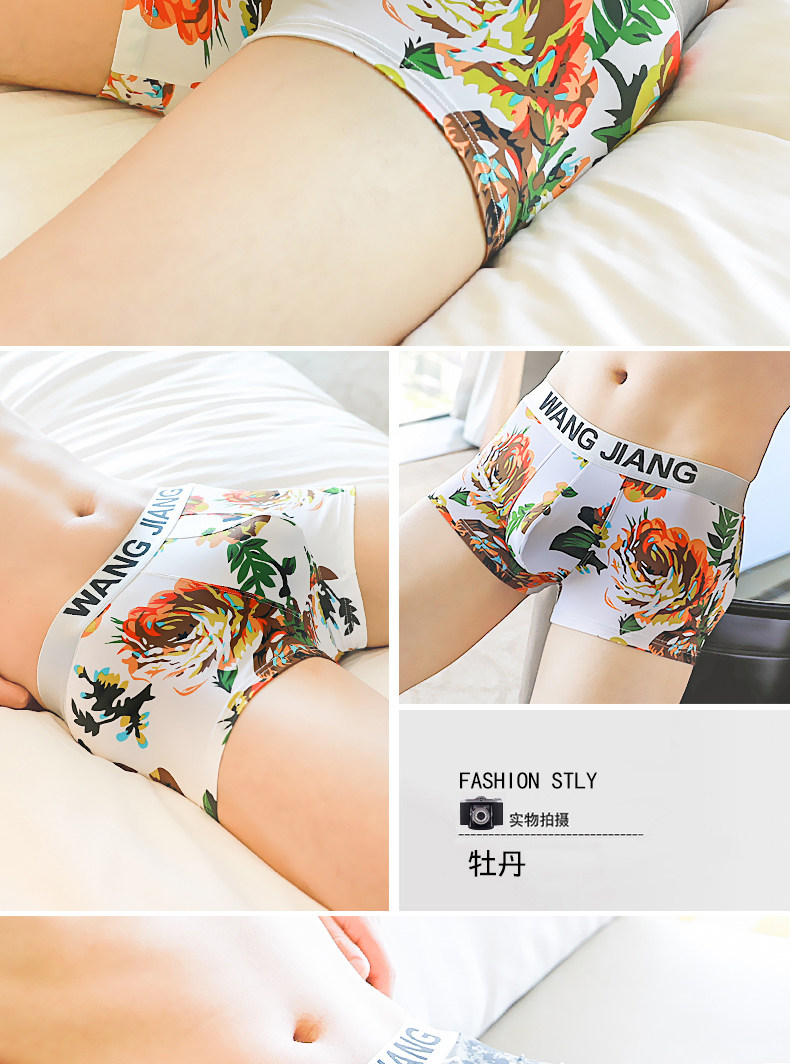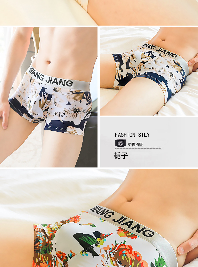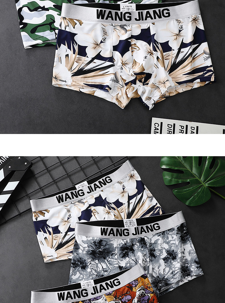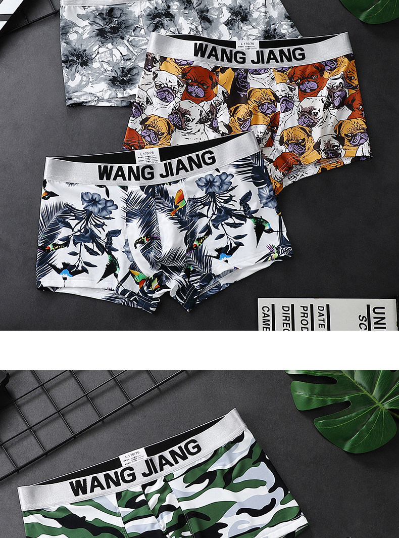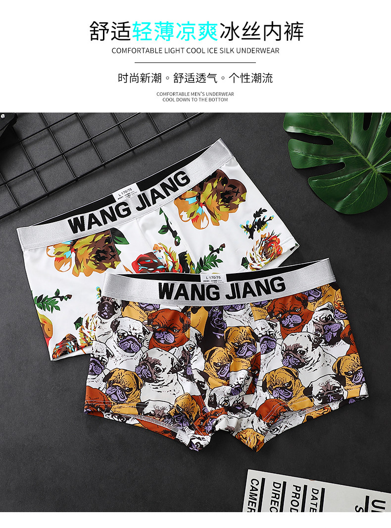 New Ice Silk Men's Underwear, Summer Thin Boxer Briefs, Printed Breathable Trendy Brand Boys' Youth Boxer Briefs