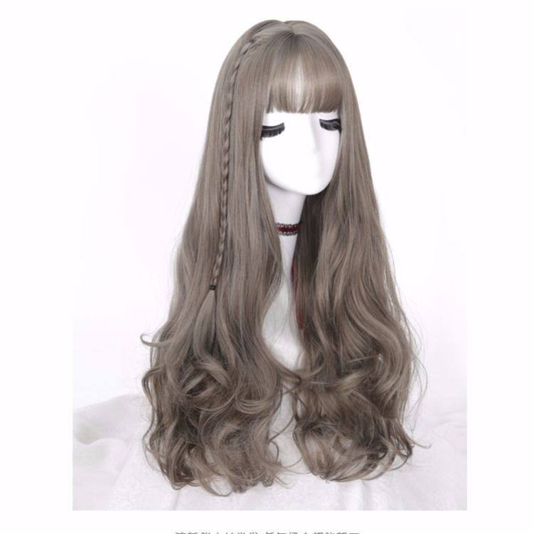 2023 new wig for women with air bangs, fluffy long curly hair, big waves, sweet and natural full headgear
