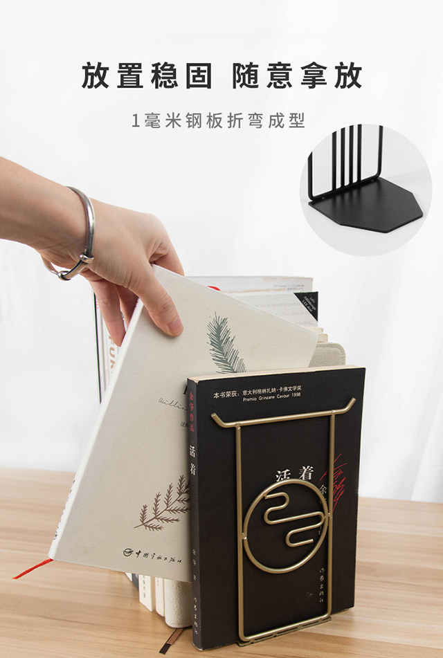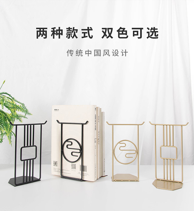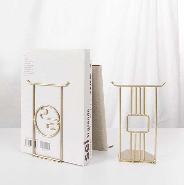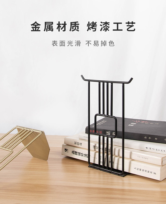 Chinese style metal bookends creative golden desktop file book organization and storage bookends