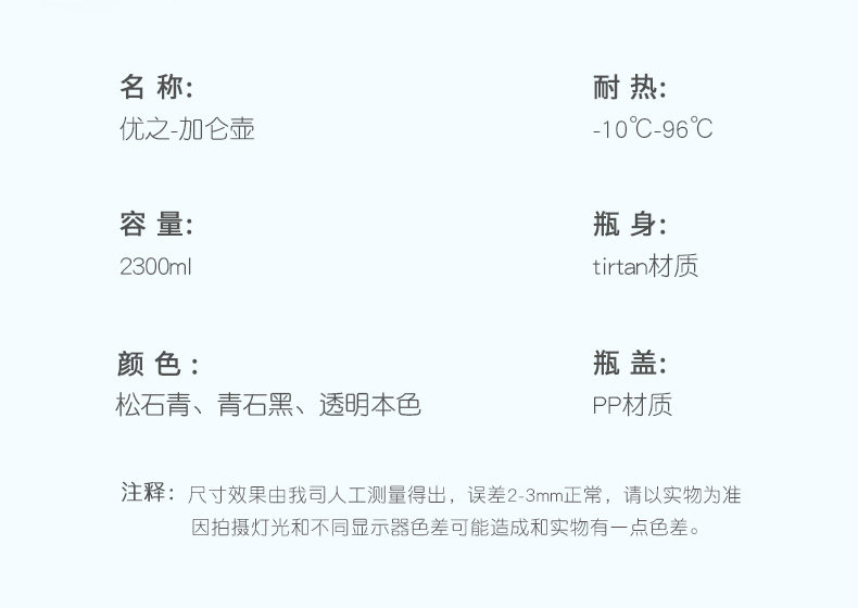 Color Classification 2300ml Natural Color (Direct Drinking) Tritan Material Temperature Resistant to 90 Degrees,2300ml Dawn Pink (Direct Drinking) Tritan Material, Temperature Resistant to 90 Degrees,2300ml Turquoise Blue (Straw) Tritan Material, Heat Resistant to 90°C,2300ml Natural Color (Straw) Tritan Material Temperature Resistant to 90 Degrees,2300ml Dawn Pink (Straw) Tritan Bottle, Heat Resistant to 90°C