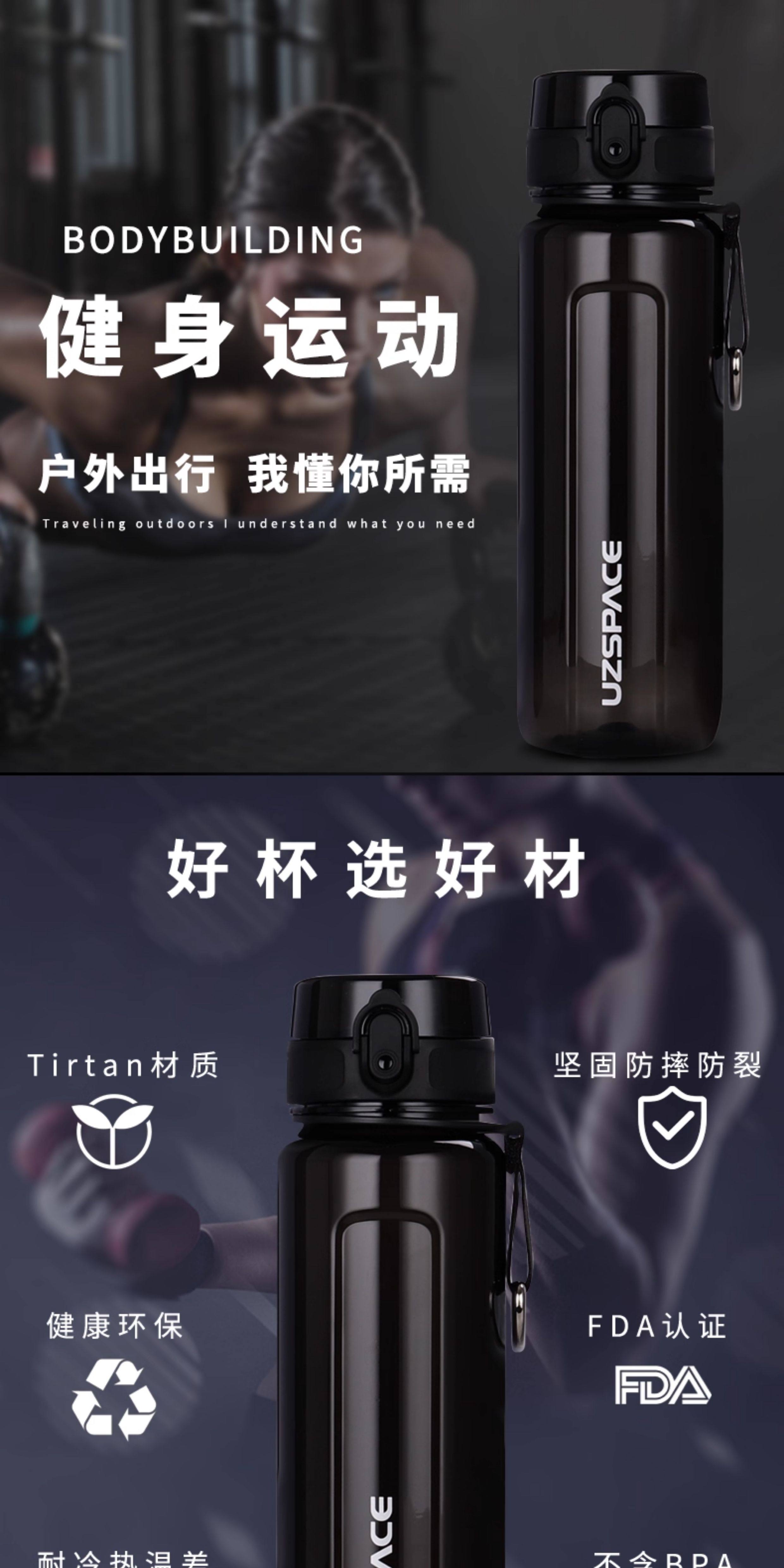 Sports Water Bottle for Women, Large Capacity, Summer Outdoor Fitness Water Cup for Men, High Temperature Resistant 1000ml Anti-Fall Space Cup