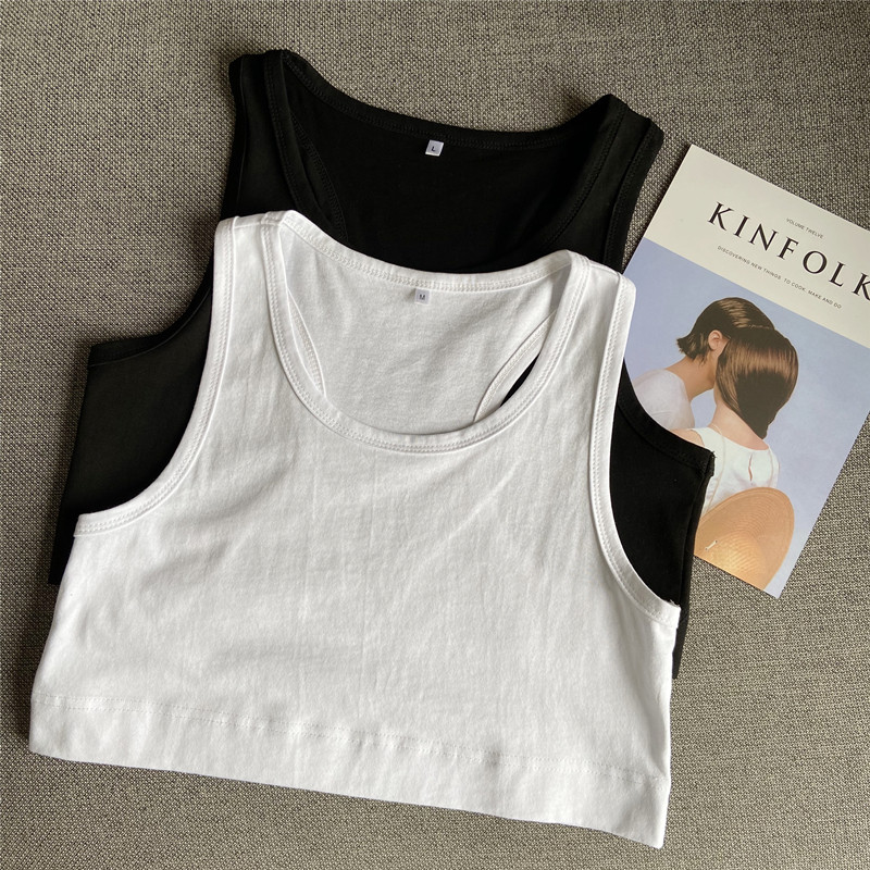 2024 new summer design, navel-baring small suspender belt, pure cotton sleeveless top, white short vest, trendy for outer wear