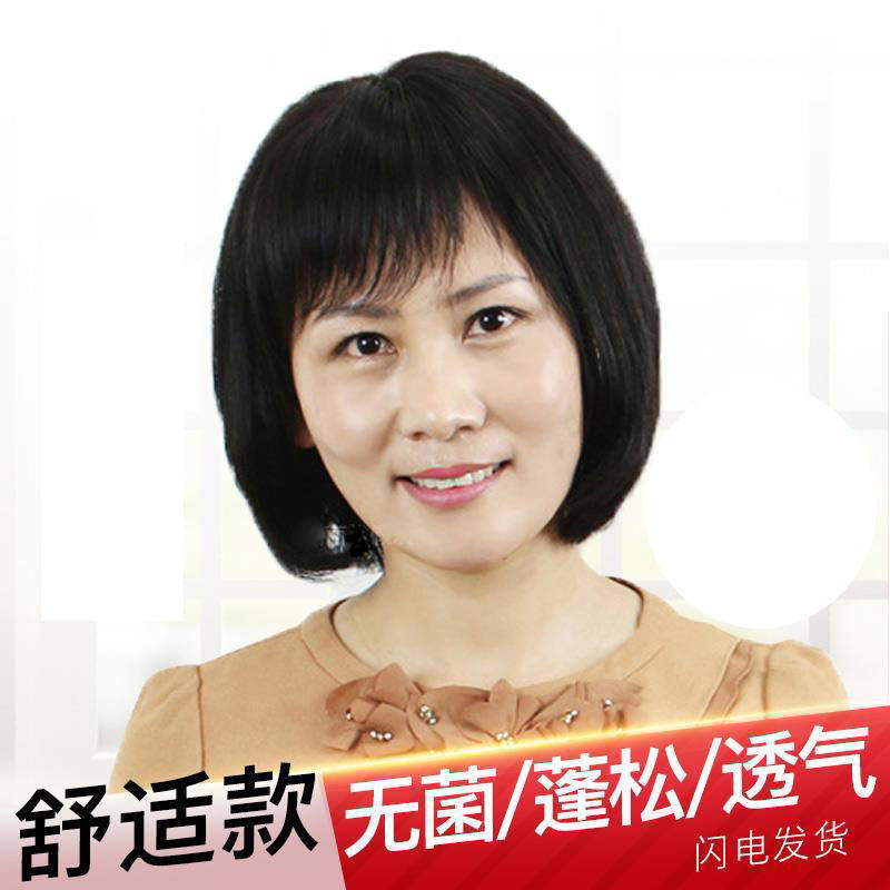 Elderly women's short hair wigs for middle-aged and elderly mothers, fashionable short straight hair, realistic and breathable 60-year-old grandma full headgear