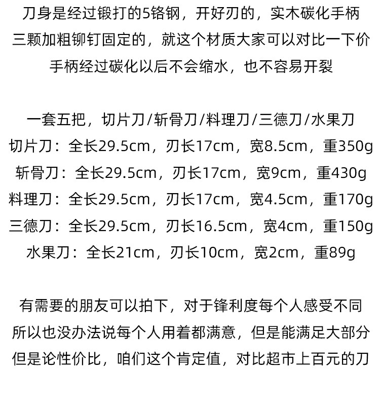 XMAN+ stocks 5 chromium stainless steel knife combination household slicing knife bone chopping knife kitchen knife tail goods slightly defective product