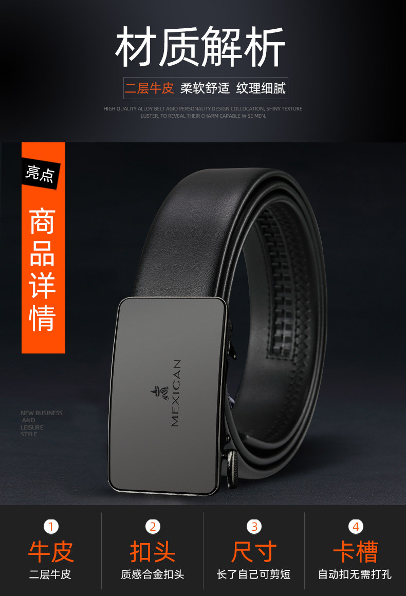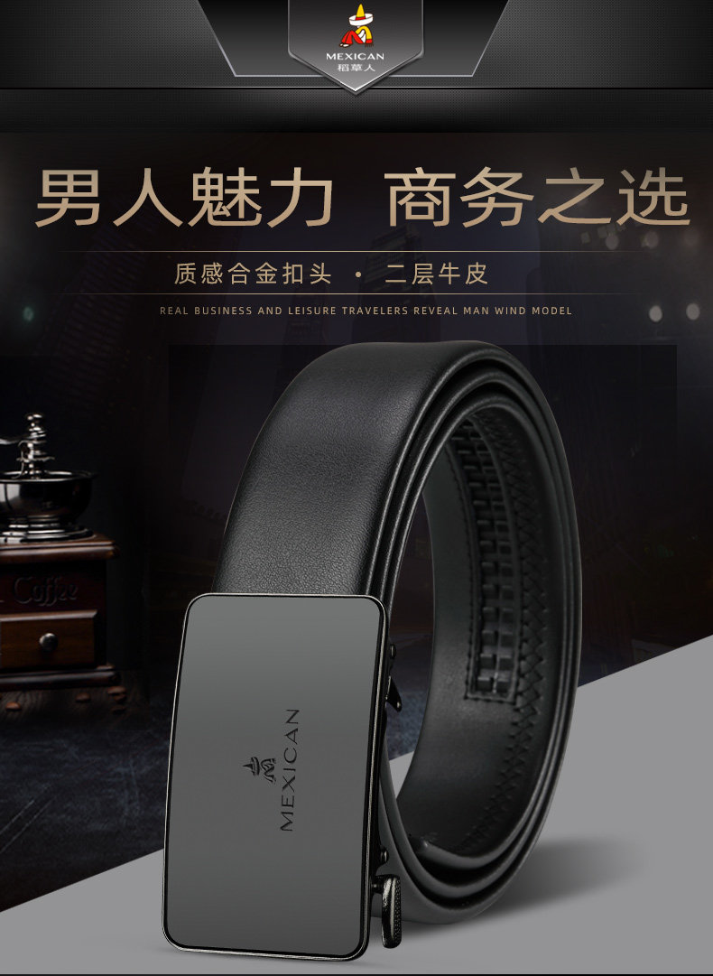 Scarecrow Pure Men's Belt Genuine Leather Korean Version Trendy Versatile Cowhide Young Men's Automatic Buckle Genuine Jeans Belt