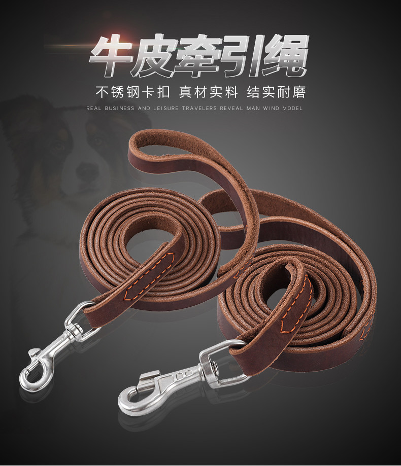 Cowhide Dog Leash for Medium and Large Dogs, Genuine Leather Dog Leash for Golden Retrievers, Malinois, and German Shepherds