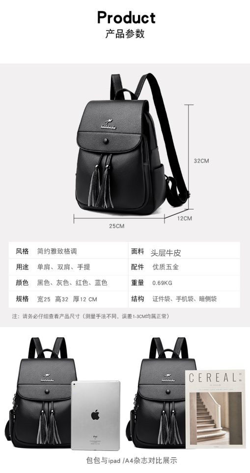 Hong Kong I.Tgreg Backpack Genuine Leather Women's Korean Style Fashionable Versatile Casual Backpack Cowhide Large Capacity Travel Bag