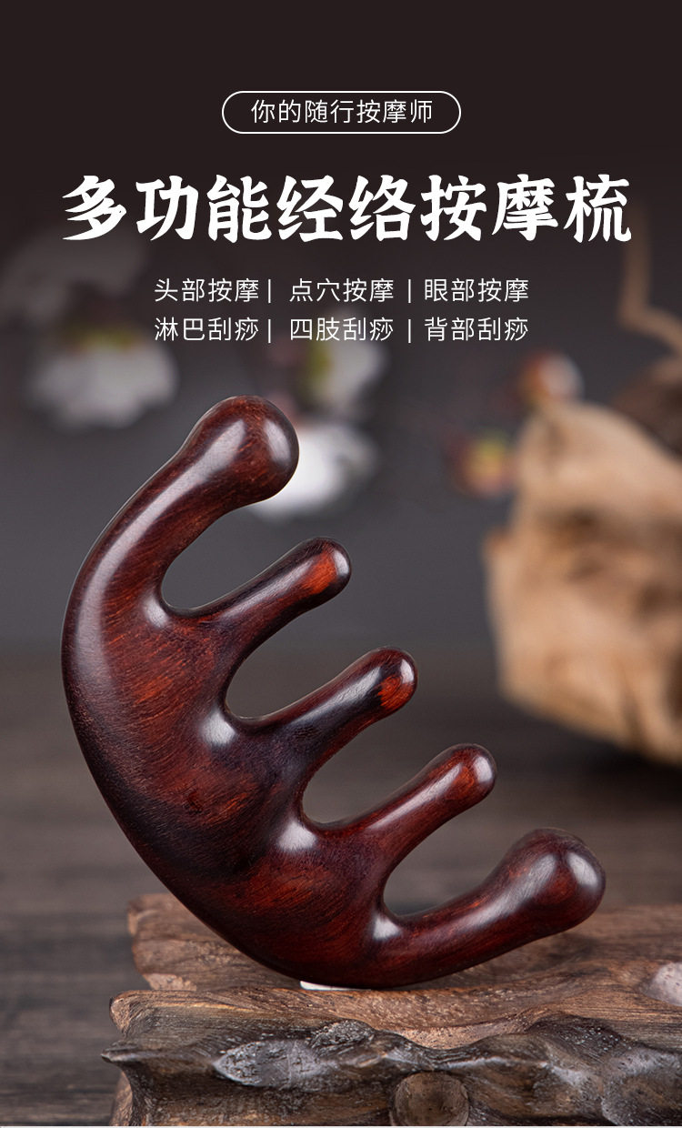 Peine de masaje de palisandro, fragancia de madera, masaje de dientes anchos, peine de madera, registro Natural, sándalo verde, madera entera espesa, peine meridiano de piel