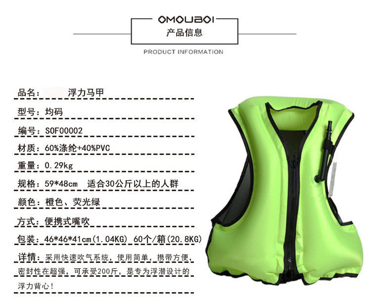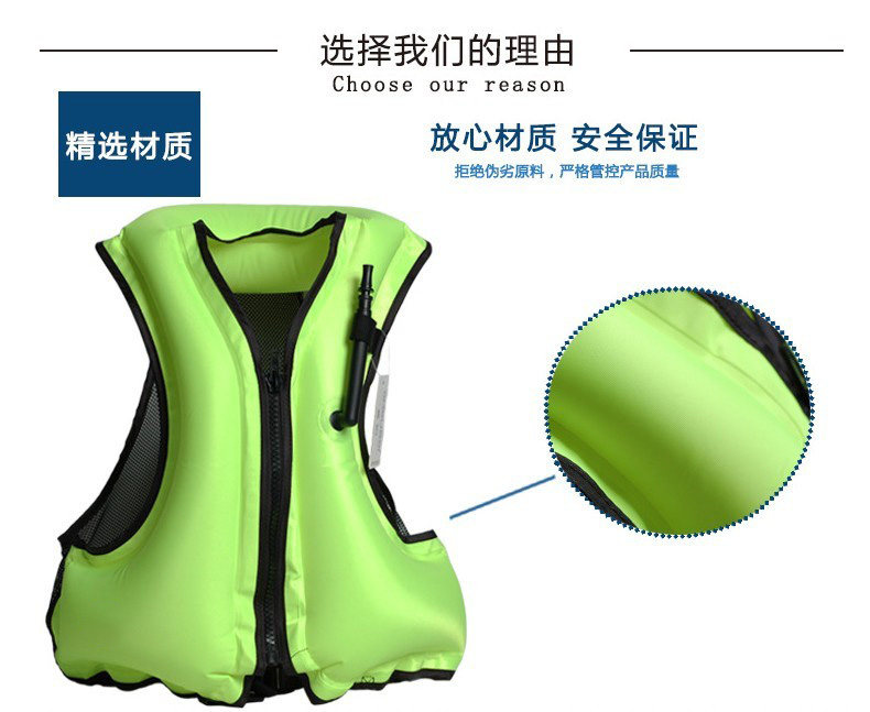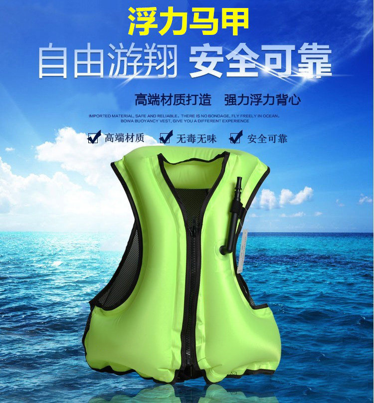 Portable mouth-blown air-filled life jacket for adults and children, buoyancy vest, safety vest, swimming and snorkeling reinforced anti-cut vest