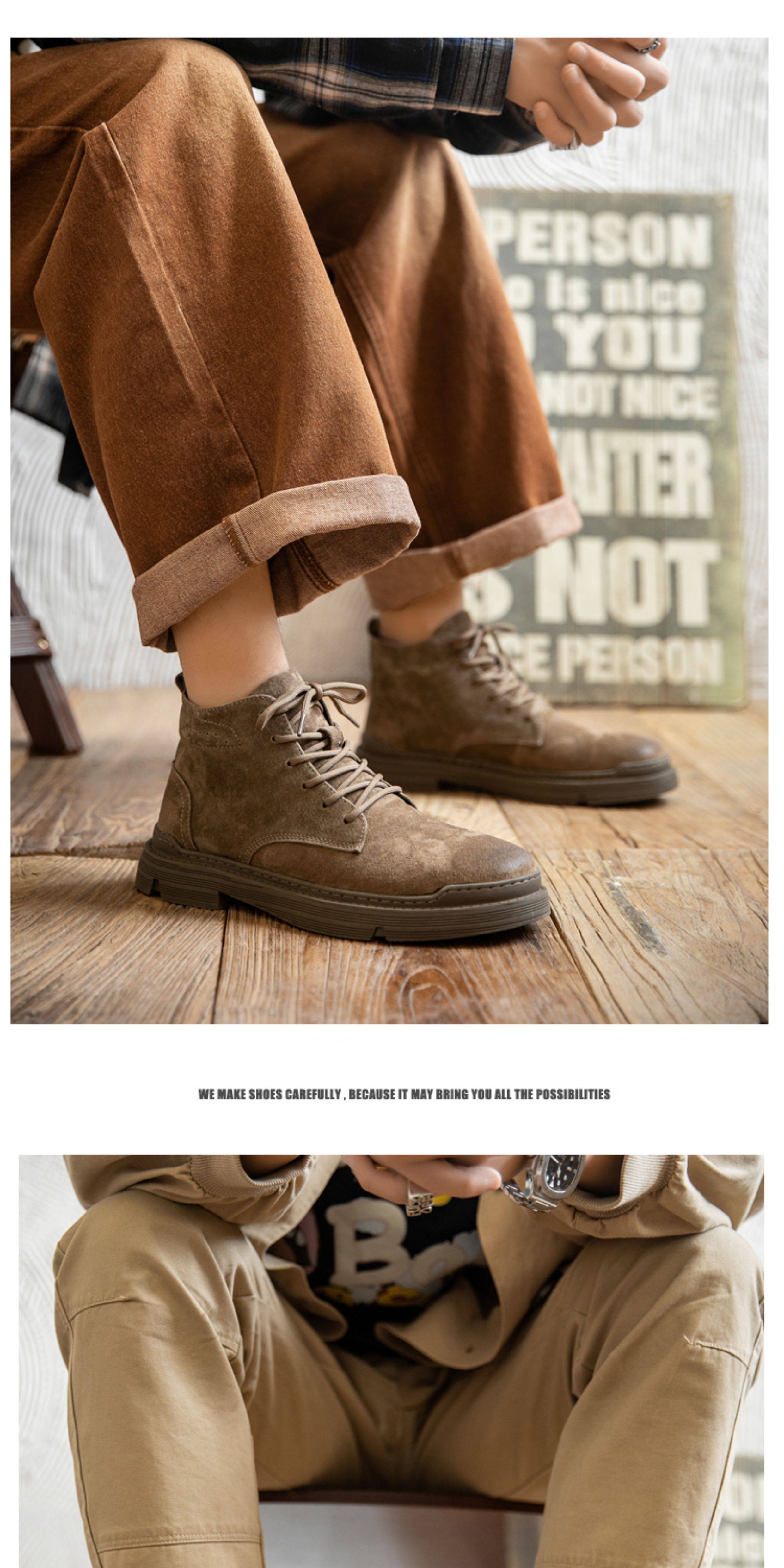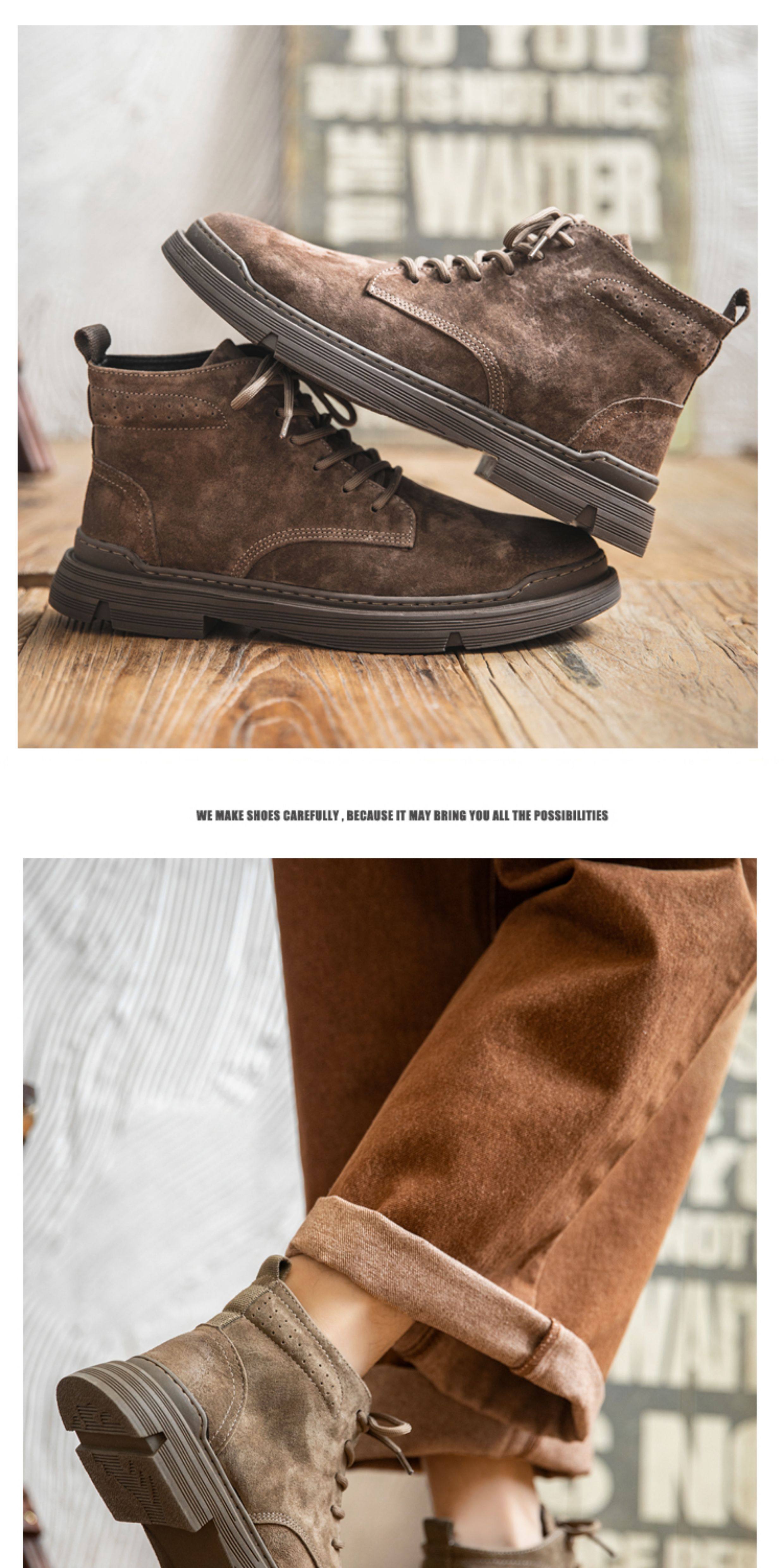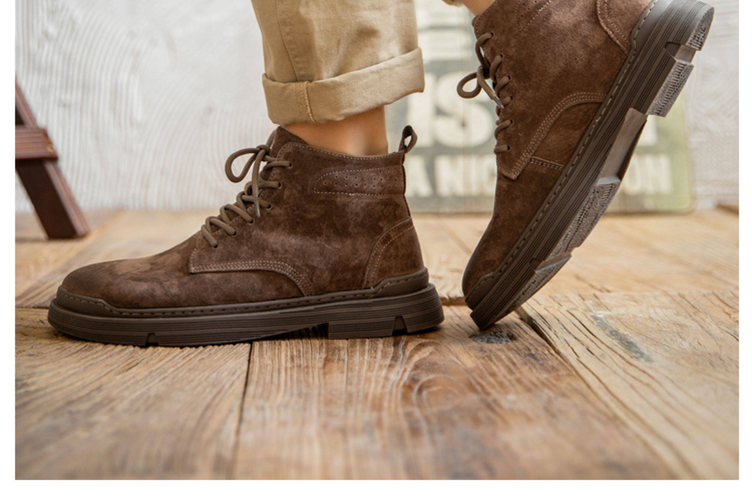 Martin Boots for Men, Winter Trendy Retro High-Top Shoes, Genuine Leather Casual Short Boots, British Style, Fleece-Lined Mid-Top Work Boots