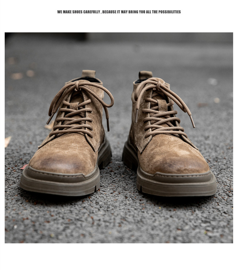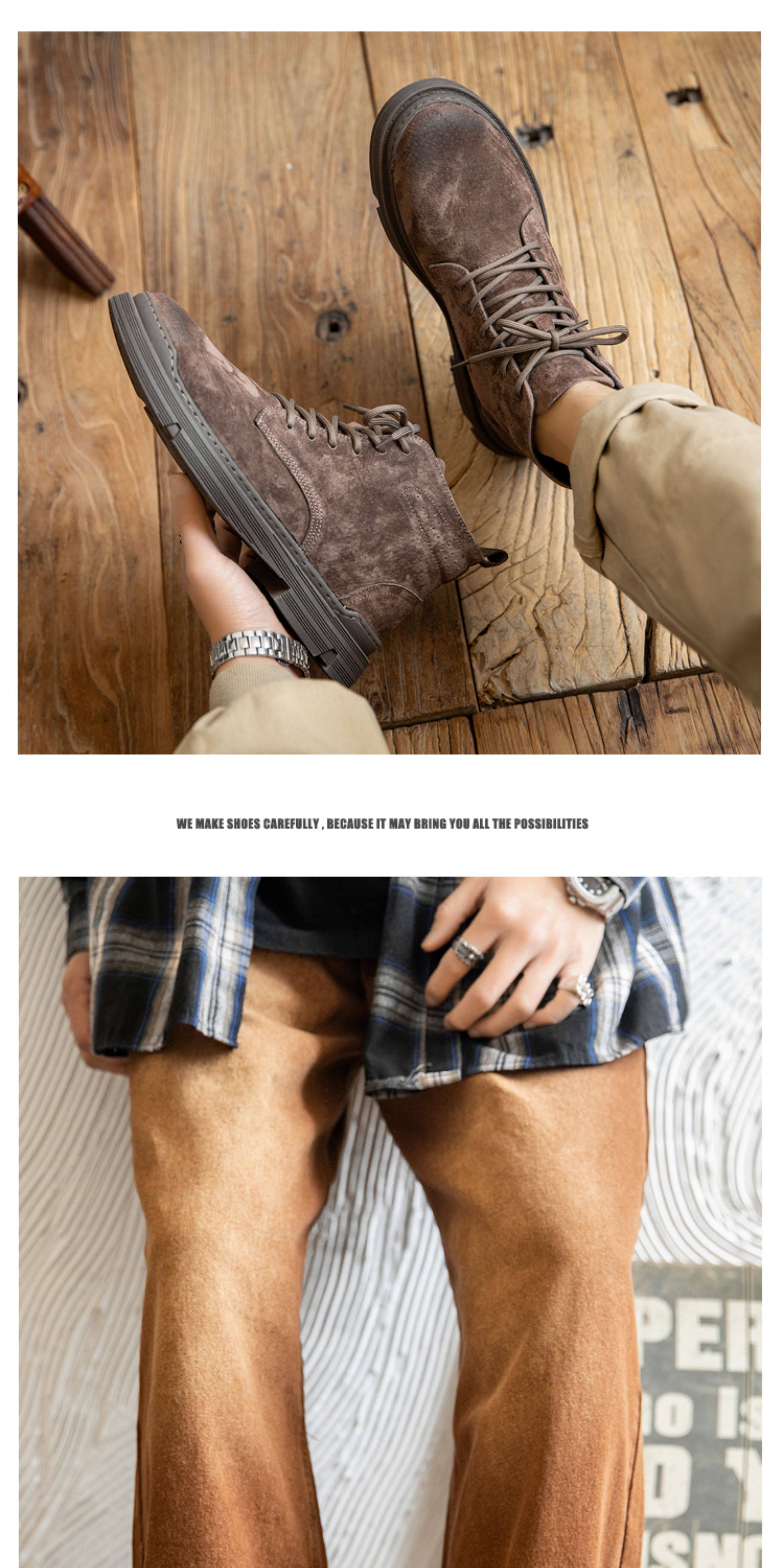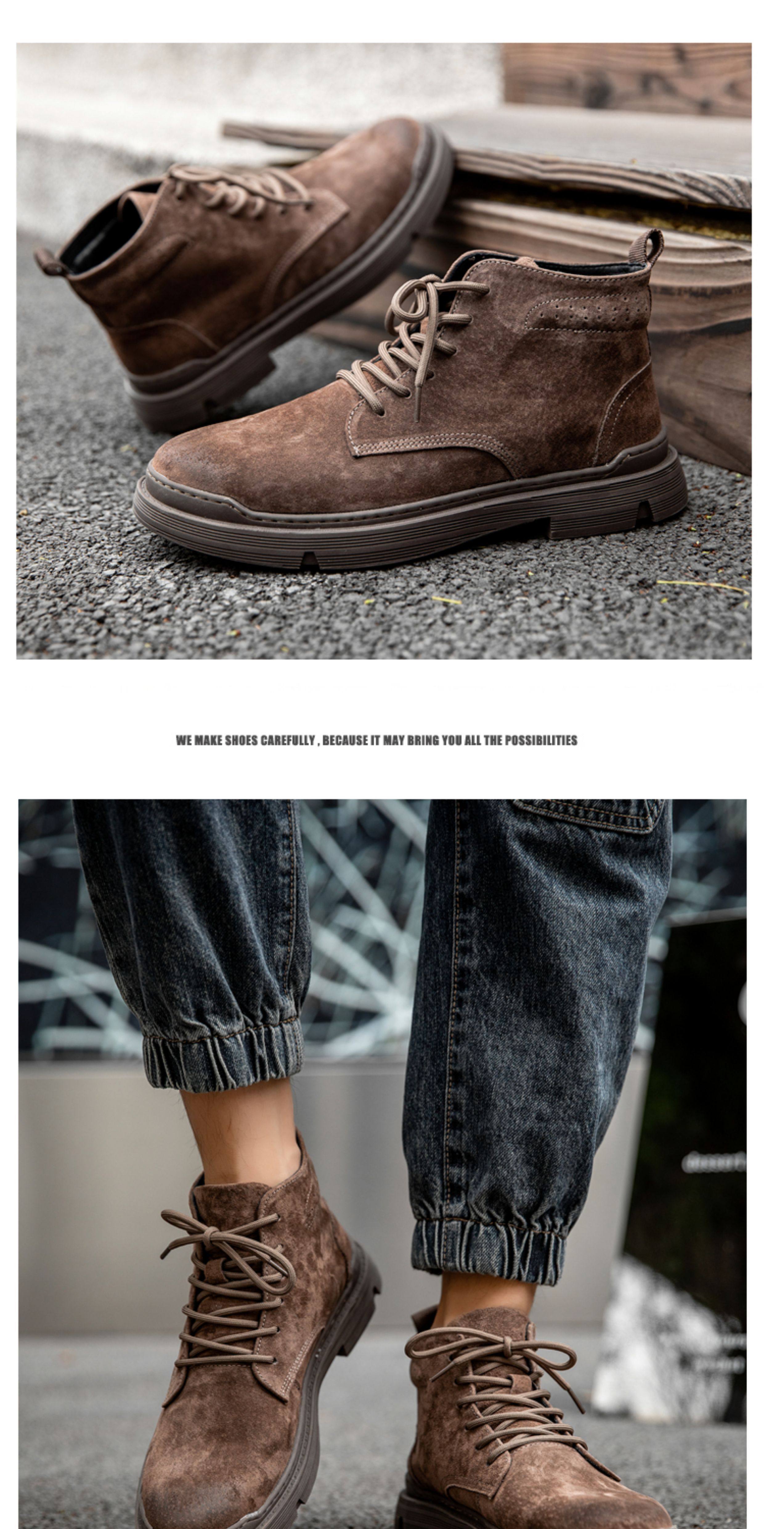 Martin Boots for Men, Winter Trendy Retro High-Top Shoes, Genuine Leather Casual Short Boots, British Style, Fleece-Lined Mid-Top Work Boots