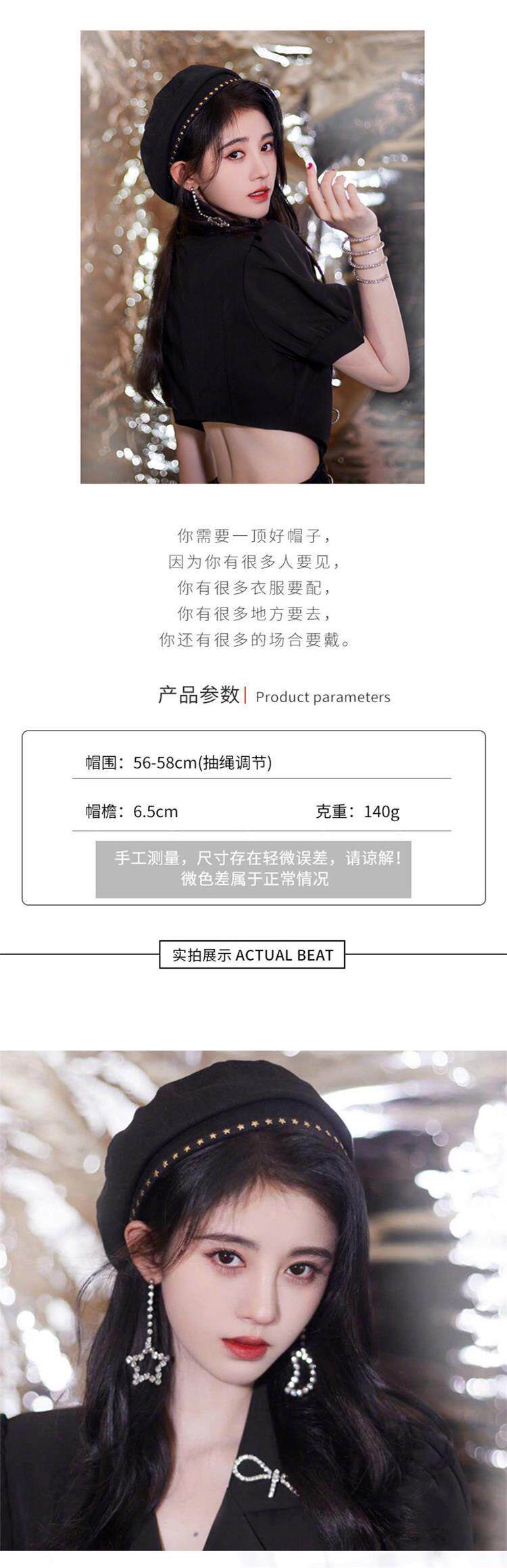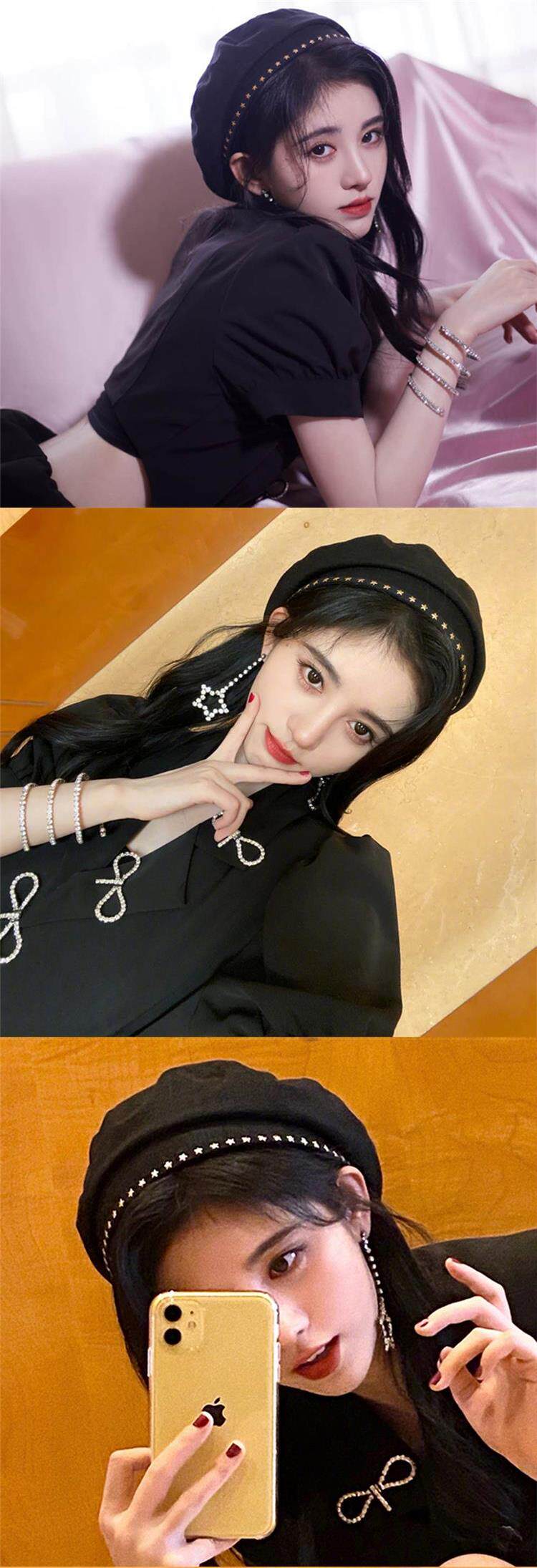 British Razt Ju Jingyi Same Style Black Beret for Women, Retro 2024 New Small Head Circumference Artist Hat