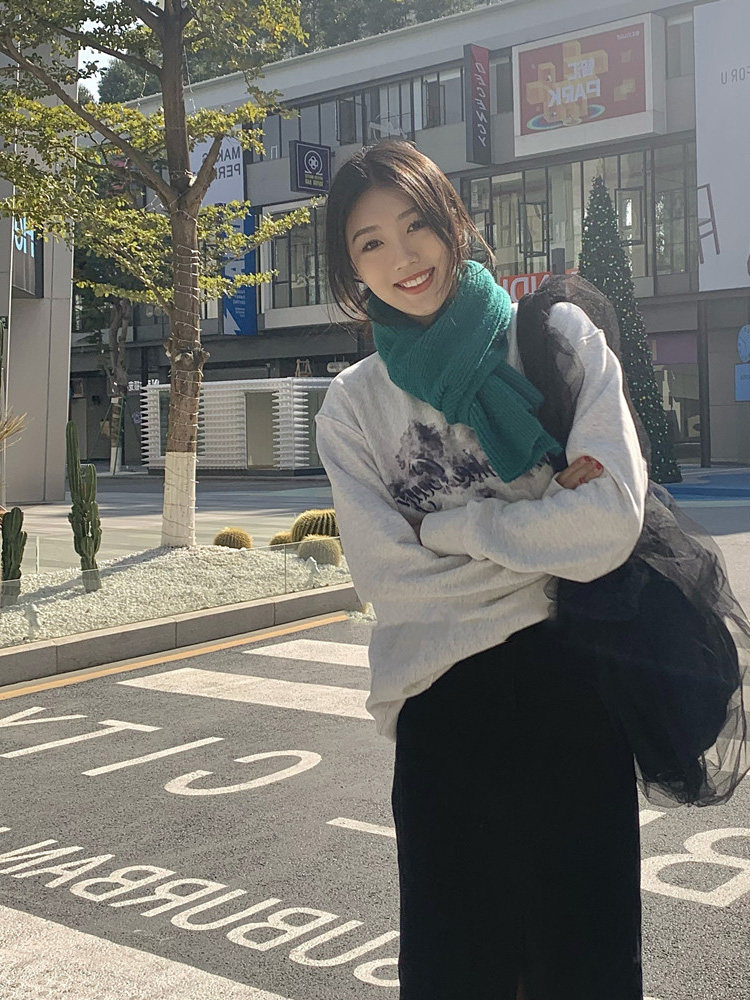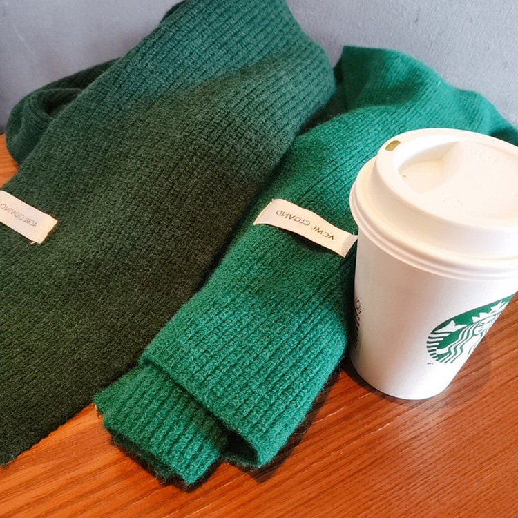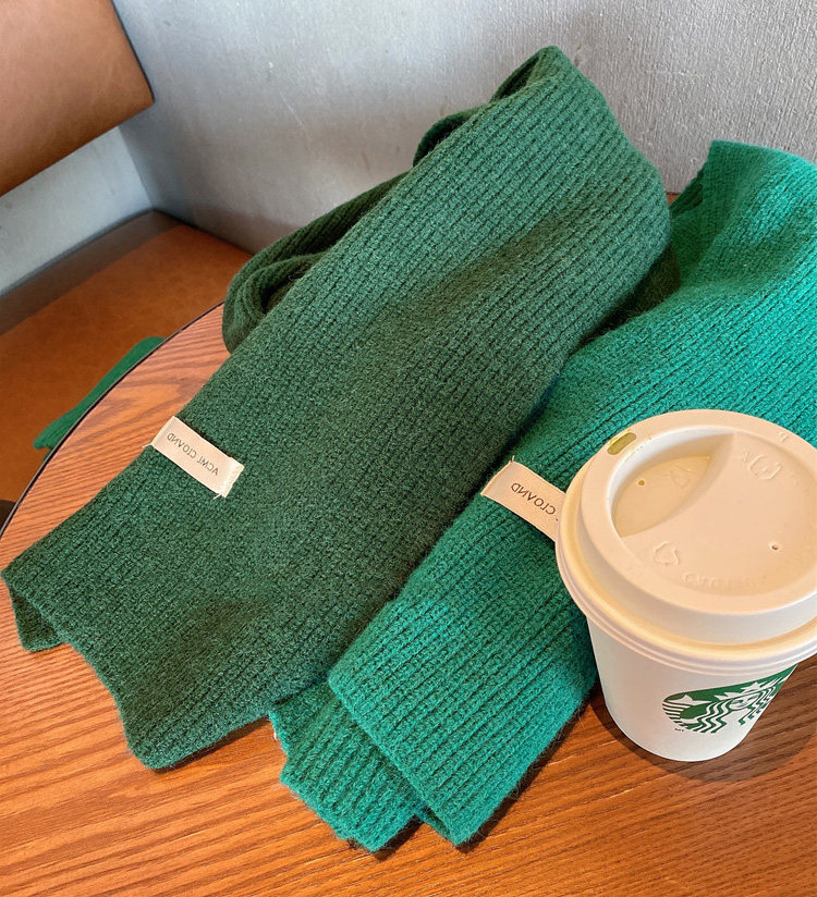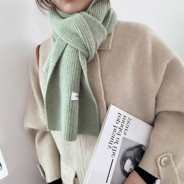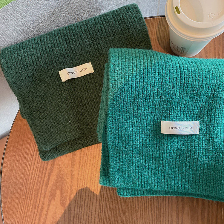 Mqvq Mars Green Scarf Women's Autumn and Winter Korean Easiest for Match Solid Color Knitted Couple Scarf New Year's Christmas Gift