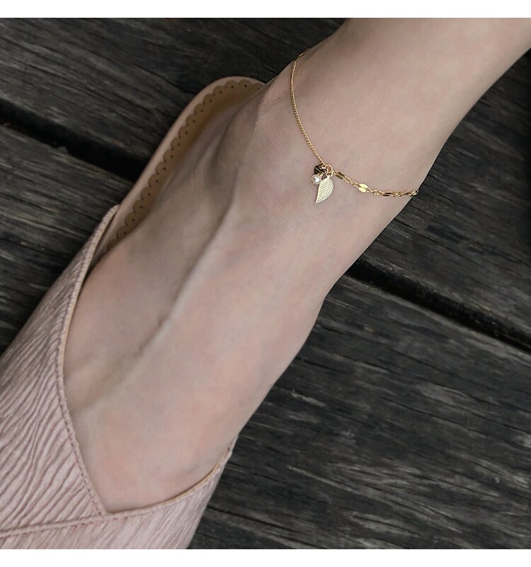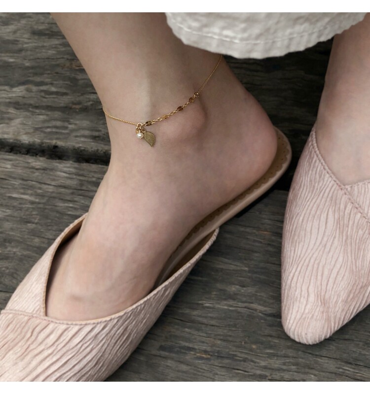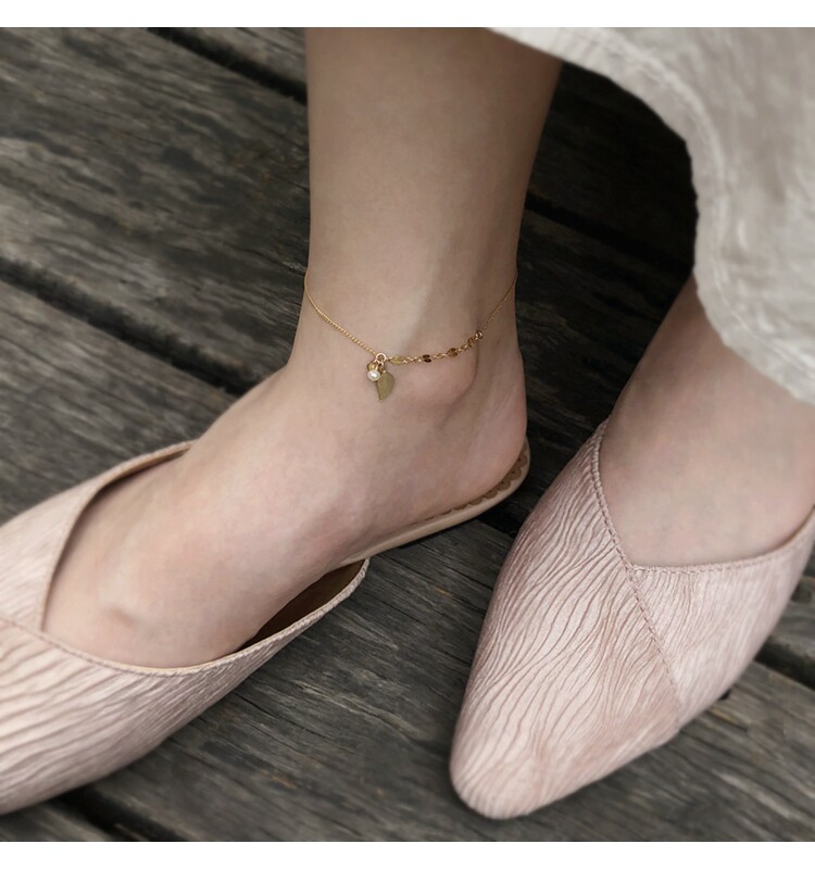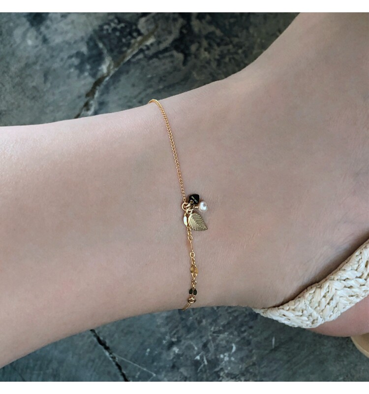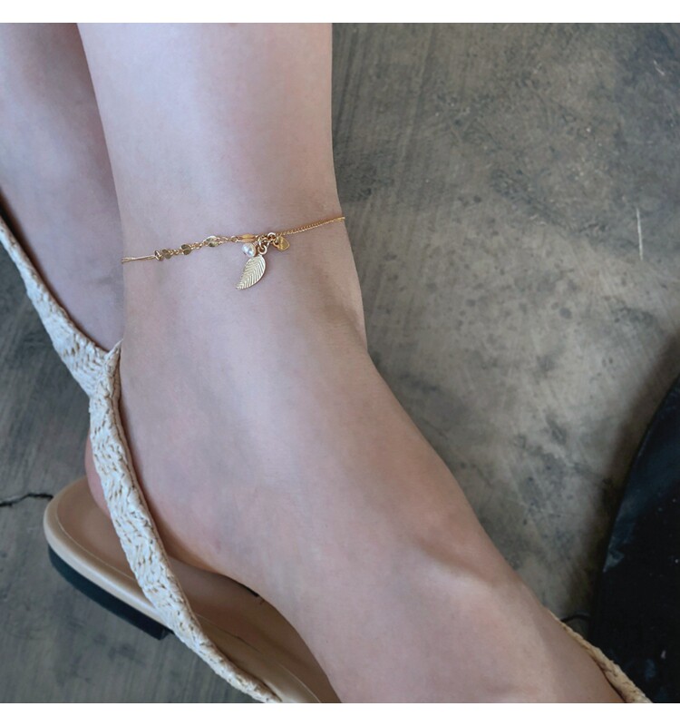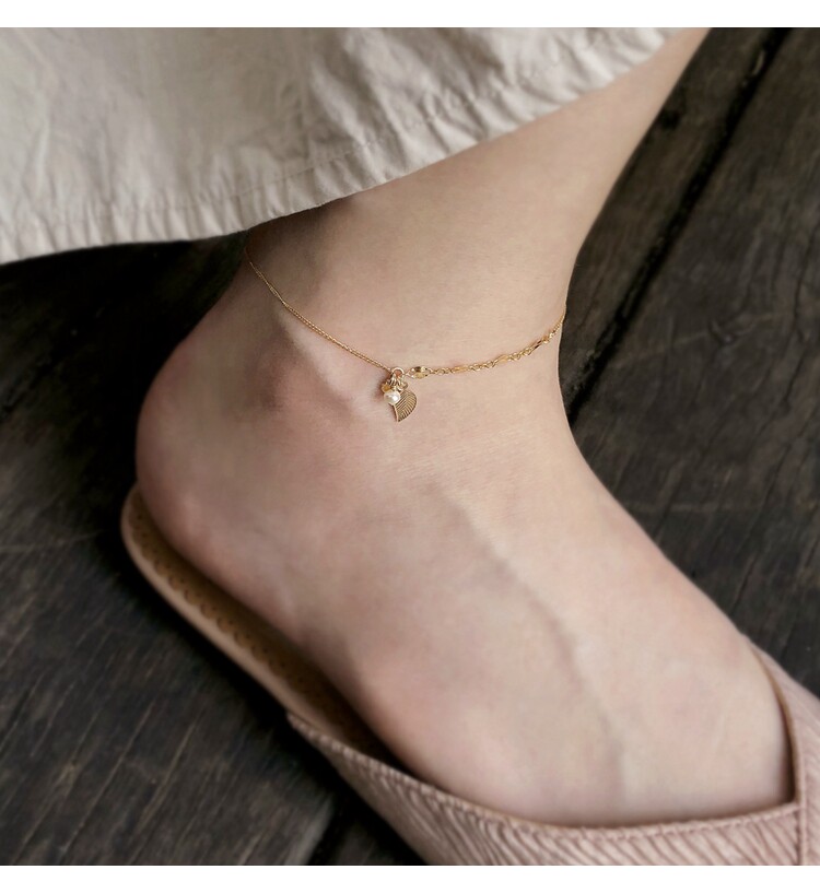Natural pearl leaf anklet for women summer 2023 new trendy internet celebrity hot style high-end niche style simple anklet
