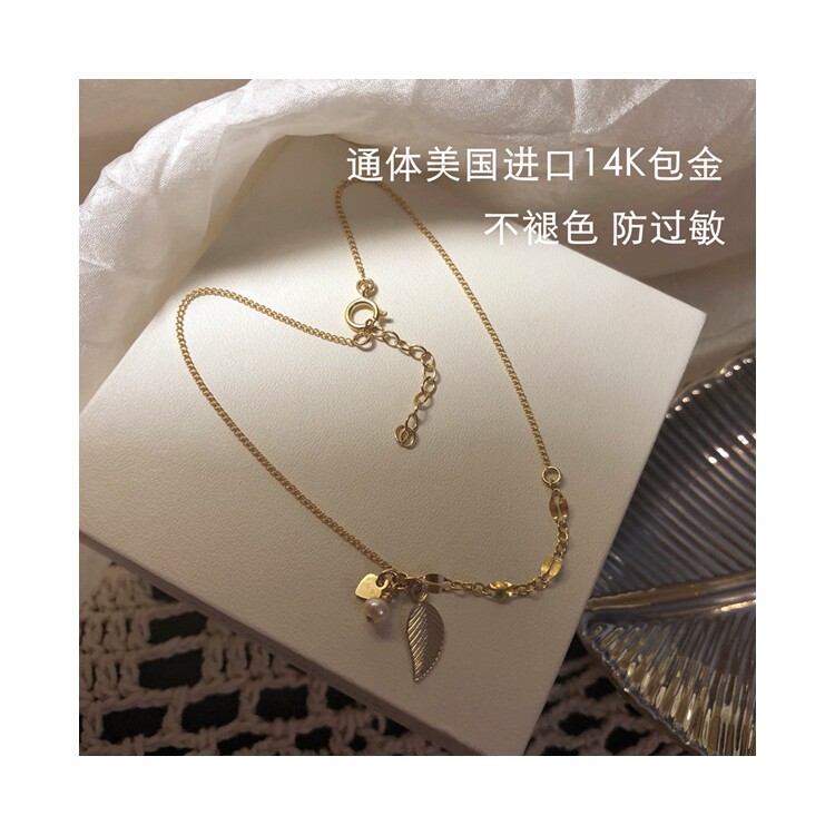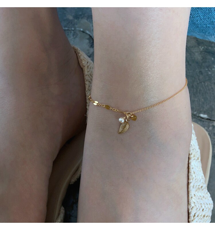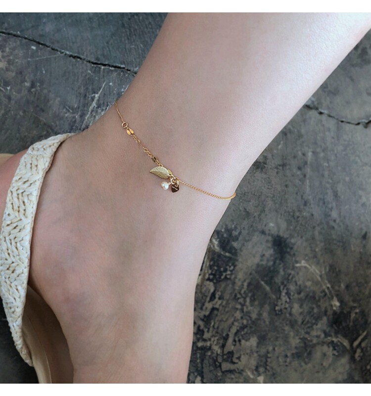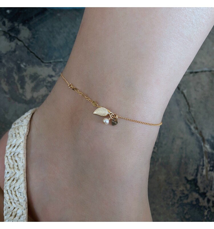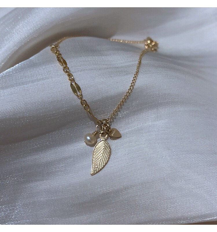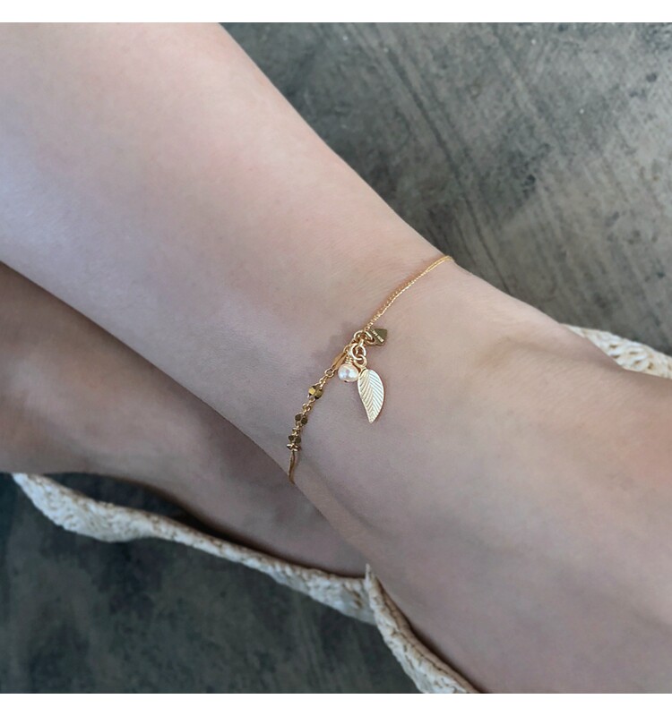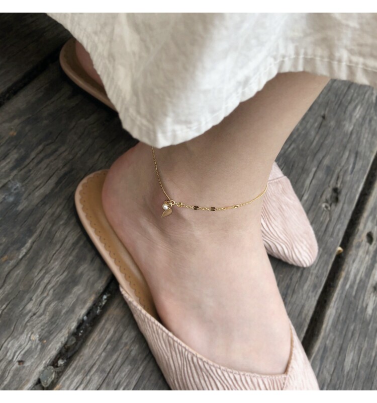 Natural pearl leaf anklet for women summer 2023 new trendy internet celebrity hot style high-end niche style simple anklet