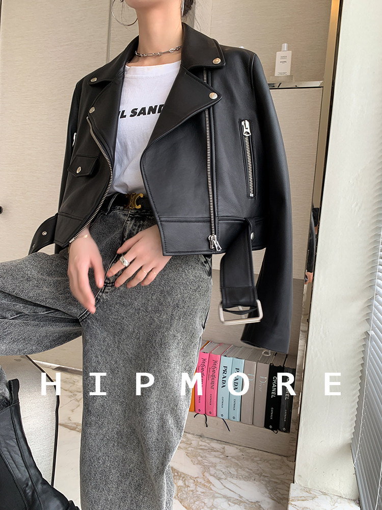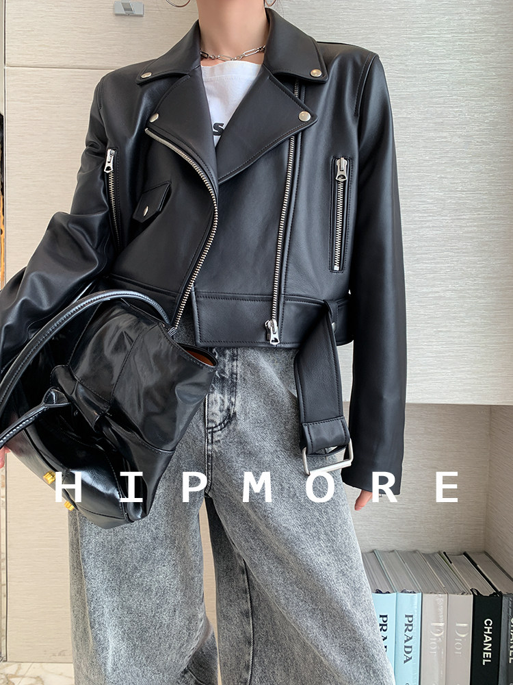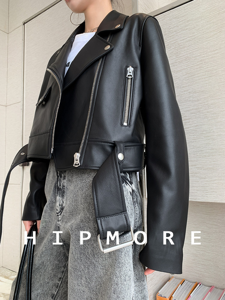 Fashionable and sophisticated bi lip waist-length 2025 autumn ultra-short leather jacket women's motorcycle jacket new trendy genuine leather loose jacket