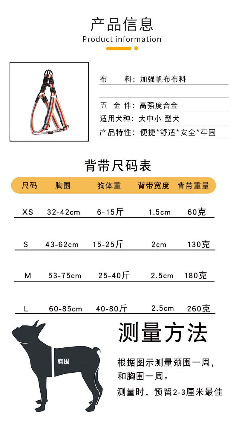 Applicable size XS size 6-15Jin Jin is equal to 0.5kg (bust 32-42cm) width 1.5,S size 15-25Jin Jin equals 0.5kg (chest 43-62cm) width 2cm,Size M 25-40Jin Jin is equal to 0.5kg (bust 53-75cm) width 2.5,L size 40-80Jin Jin is equal to 0.5kg (chest circumference 60-85cm) width 2.5