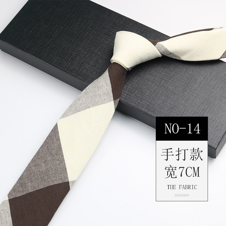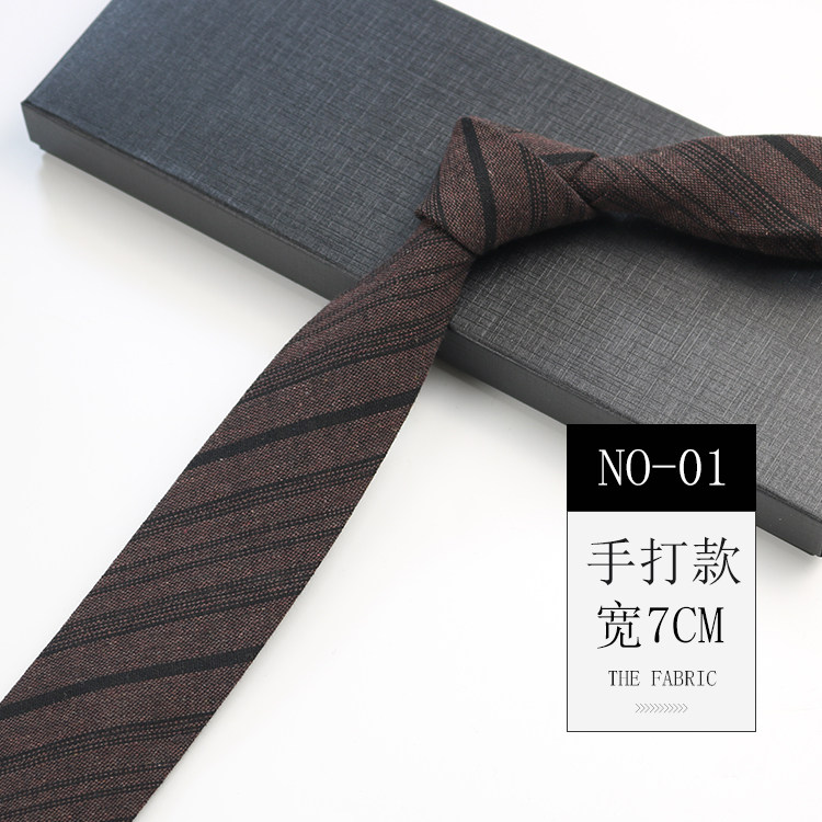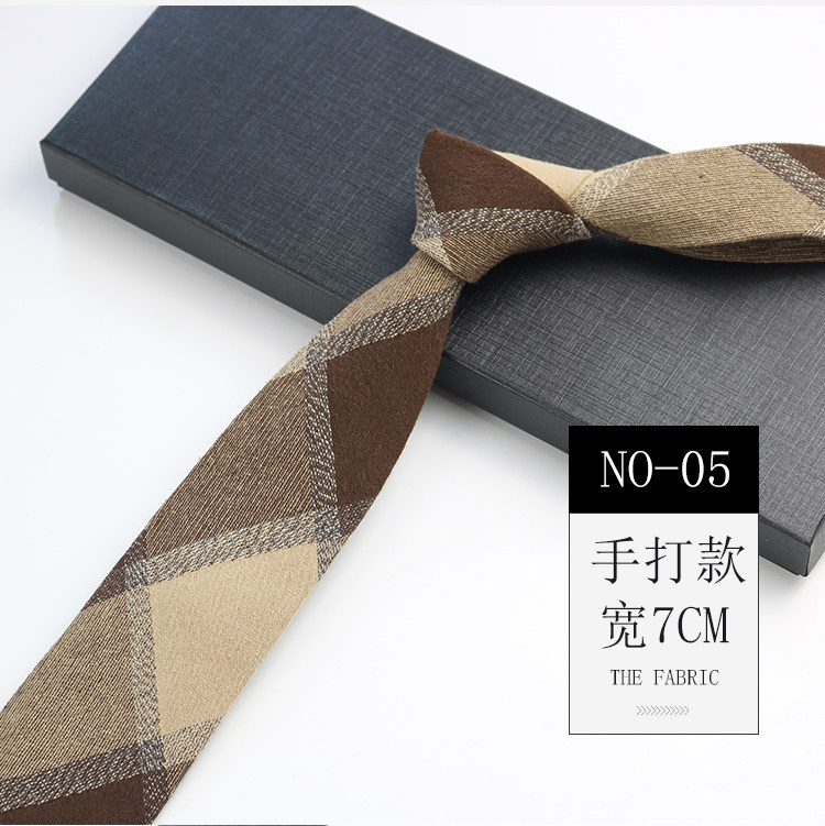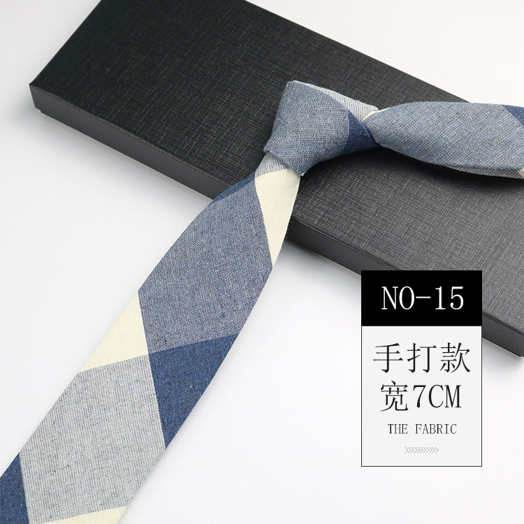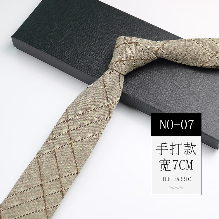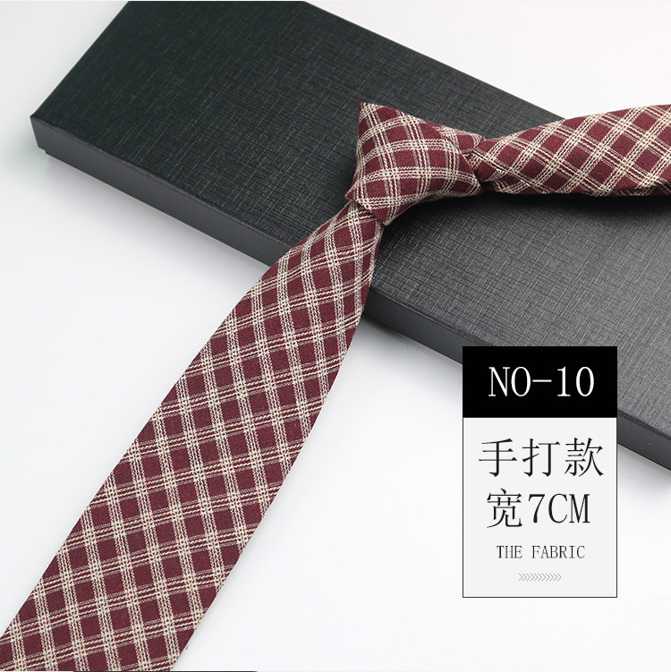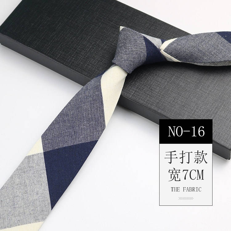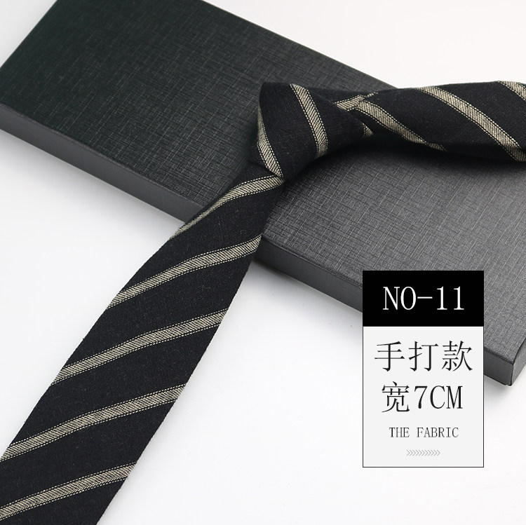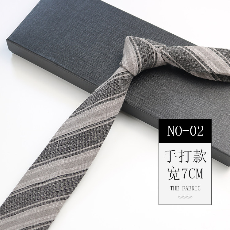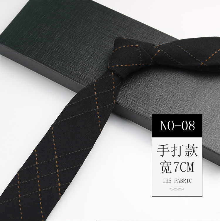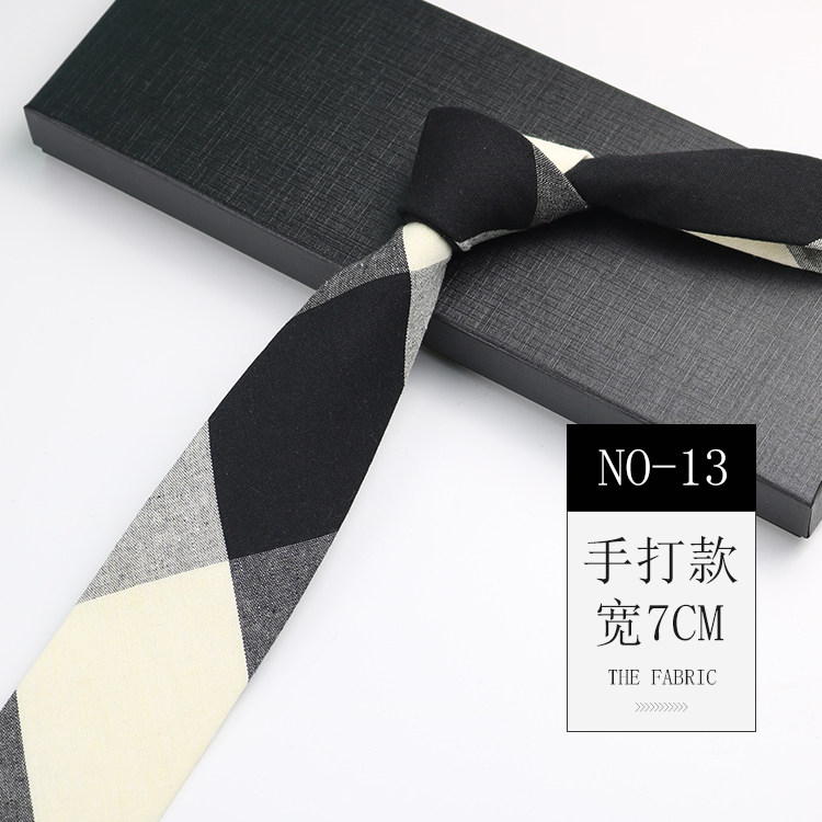 Men's Tie Korean Style Retro British 7cm Narrow Black and Gray Striped Plaid Shirt Student Preppy Style Hand-Tied Tie