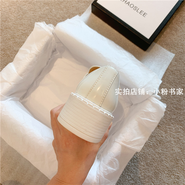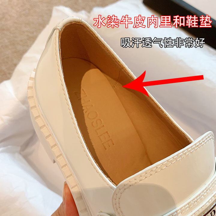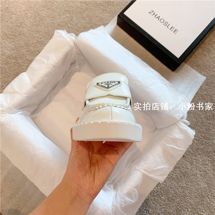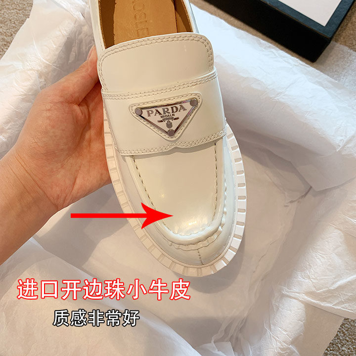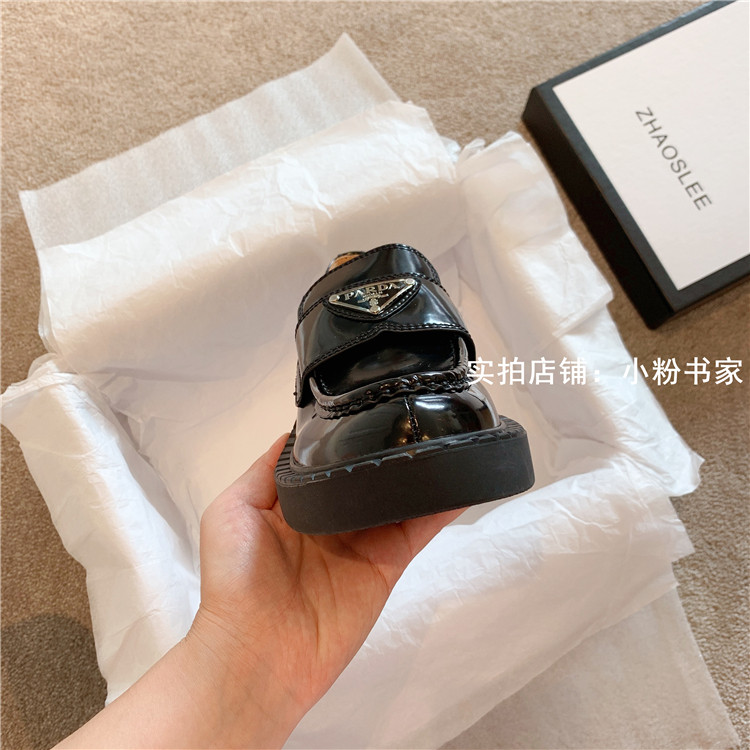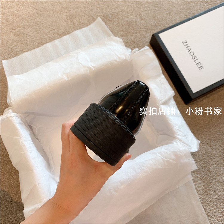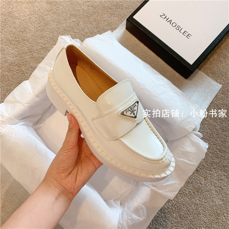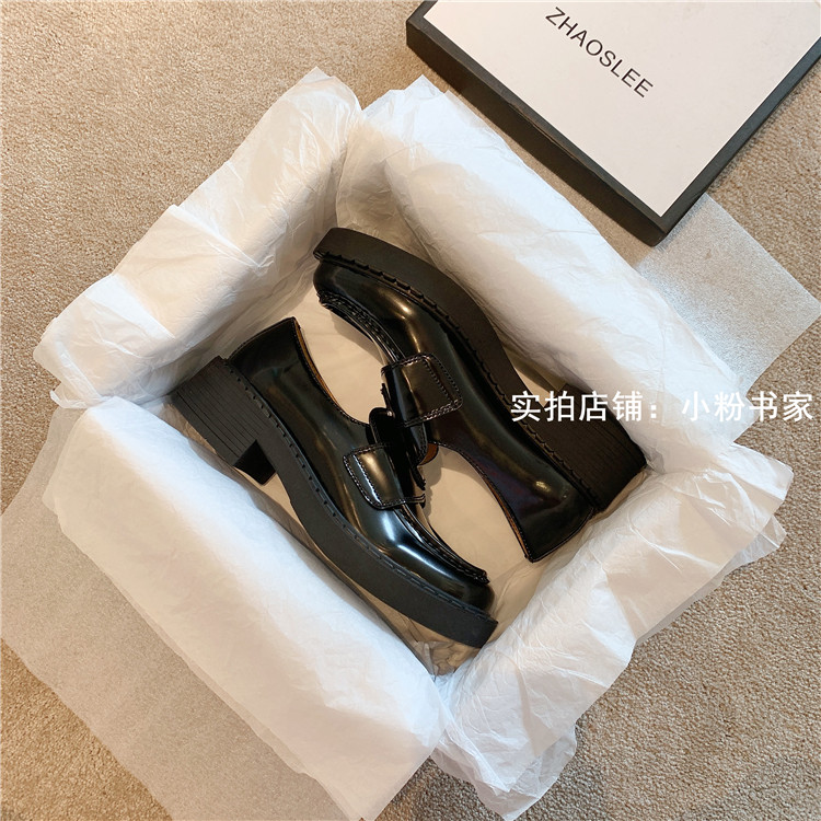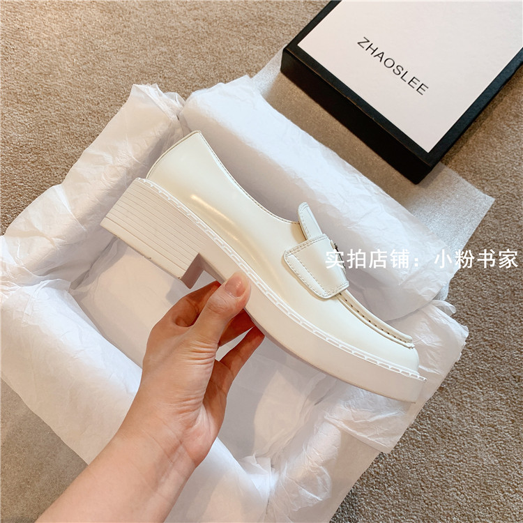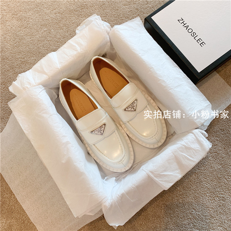 Genuine thick-soled triangular logo loafers for women, spring and autumn black British style small leather shoes, medium heel, thick heel, slip-on shoes