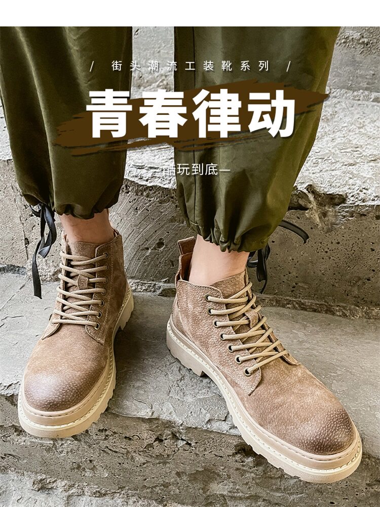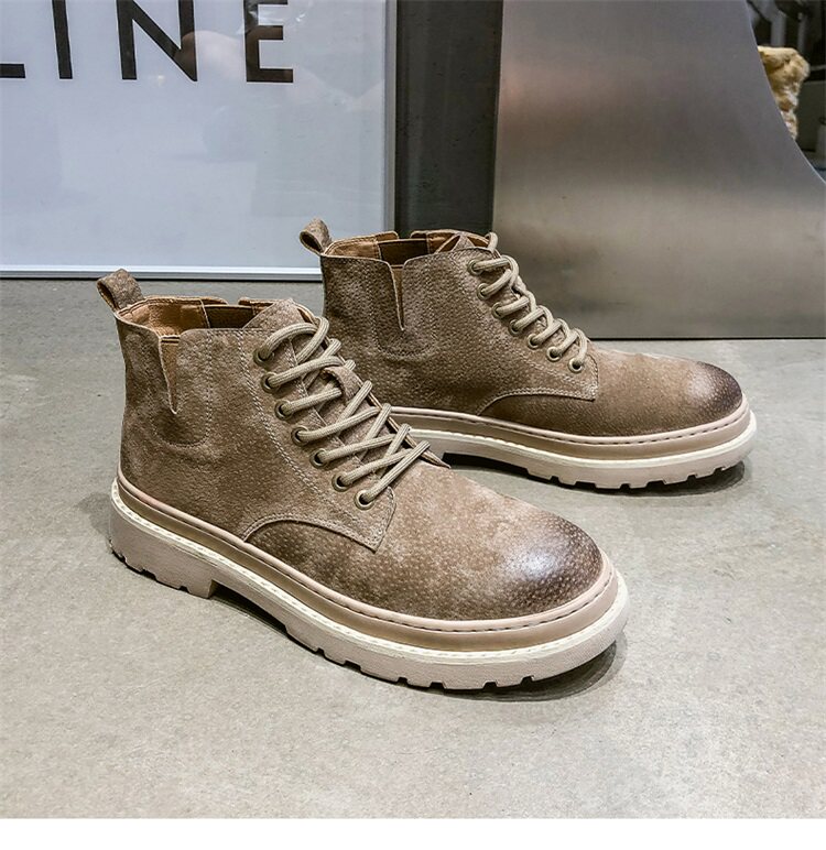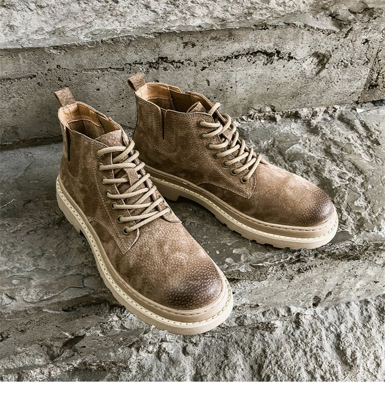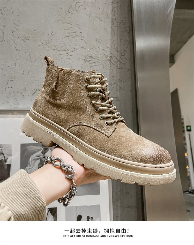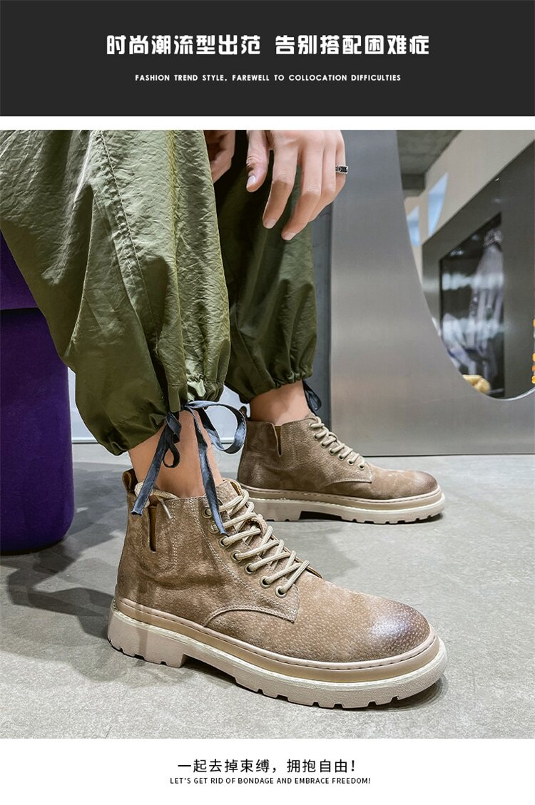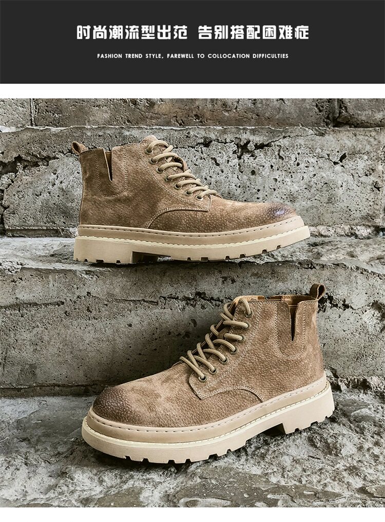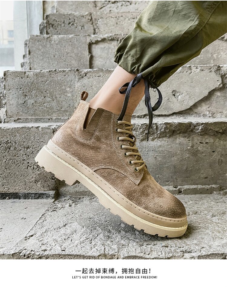 Martin Boots for Men, Winter High-Top Shoes, Trendy Genuine Leather British Style Short Boots, Retro New Style, Mid-Top Breathable Work Boots