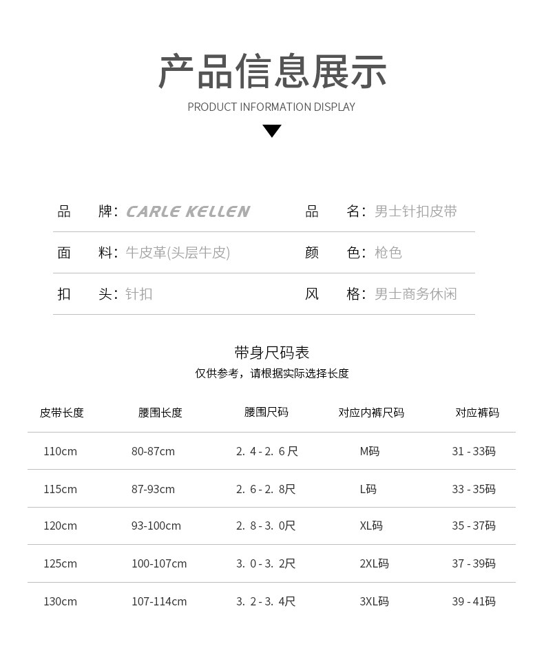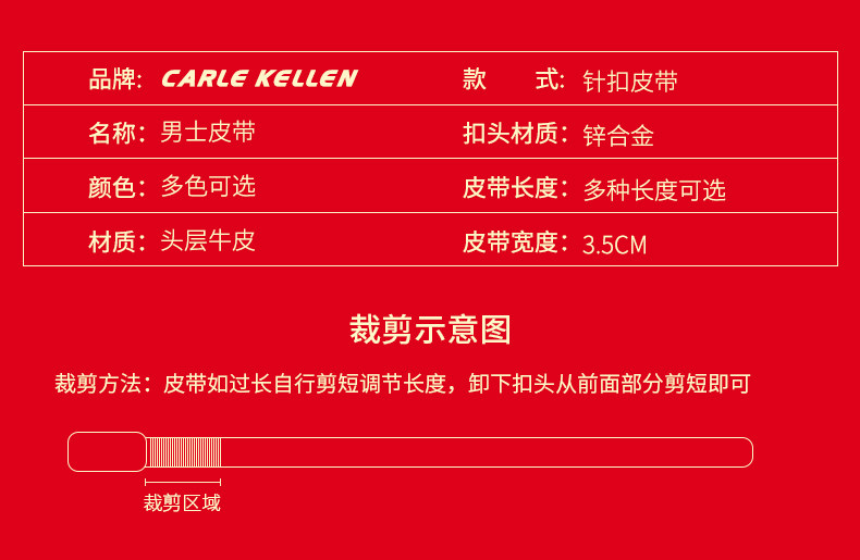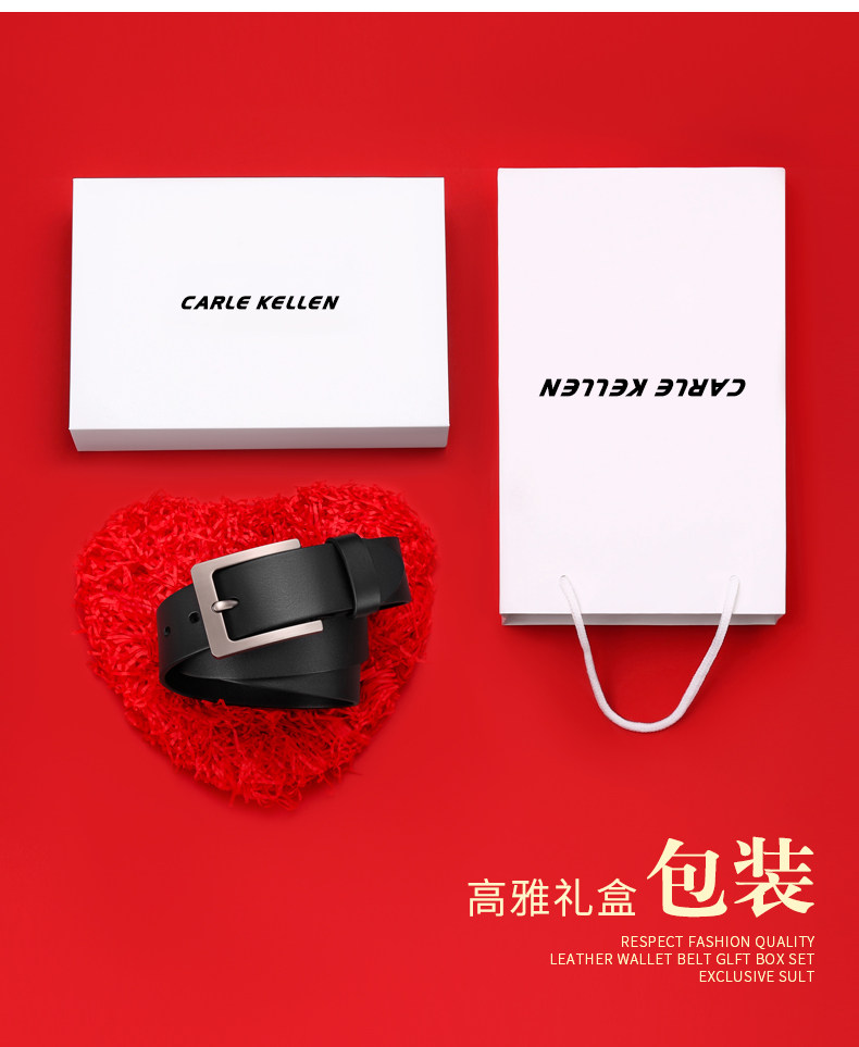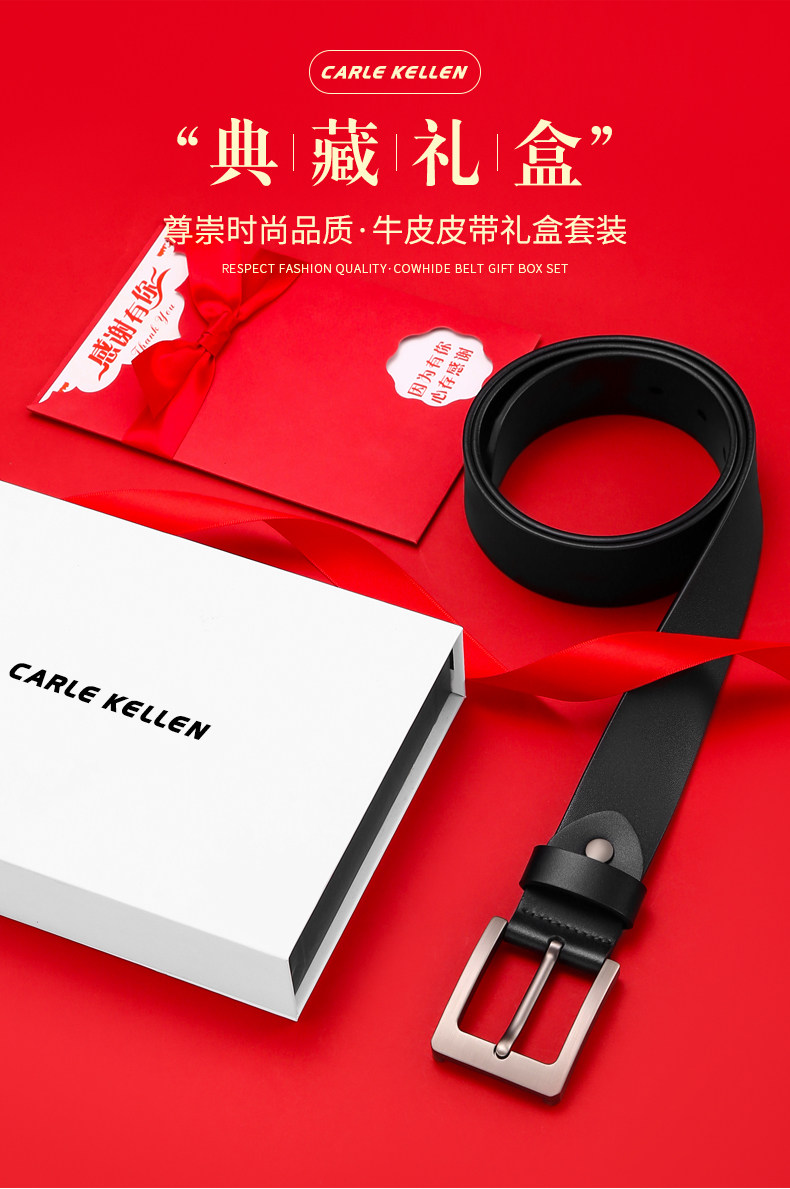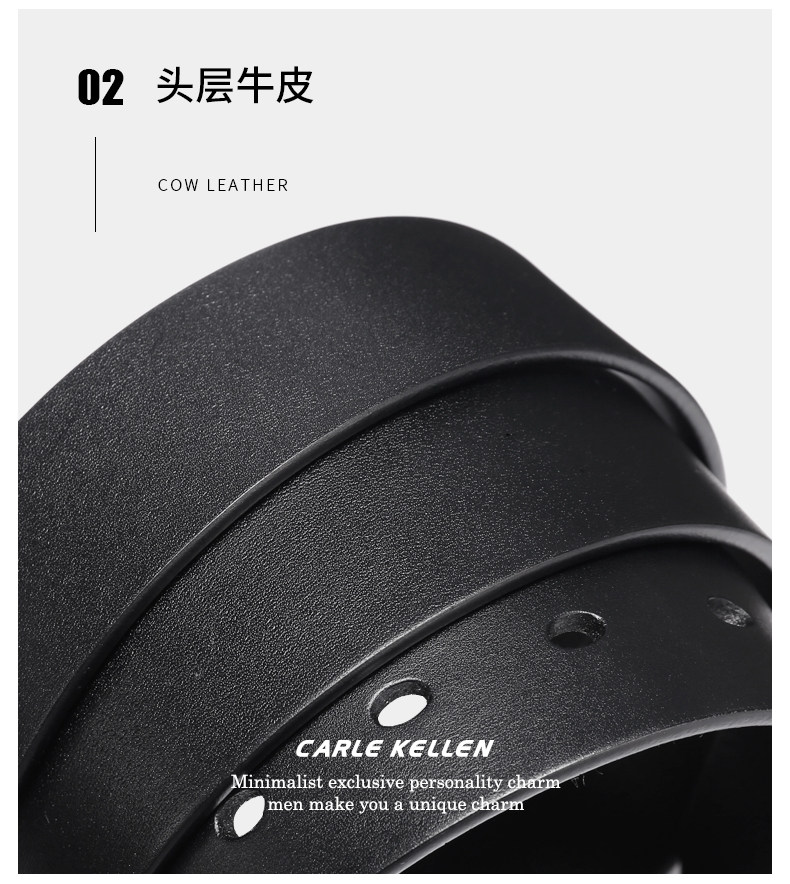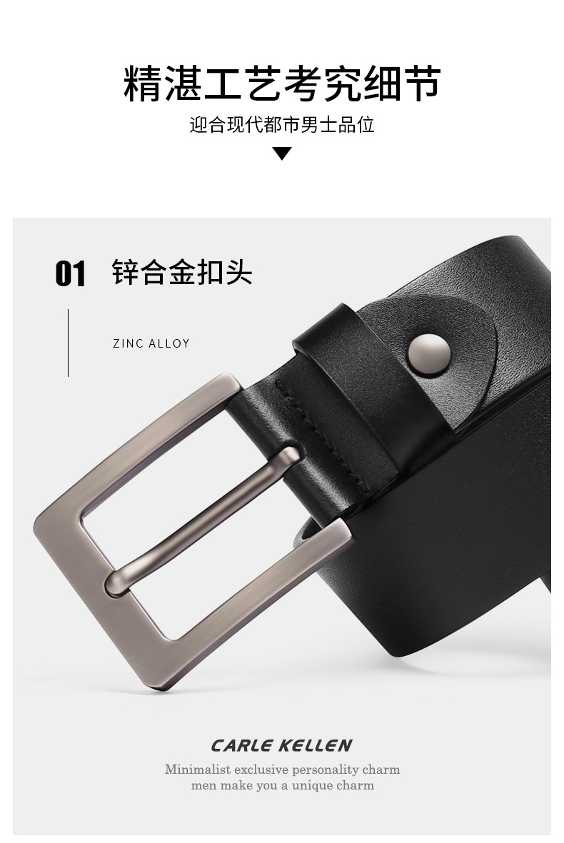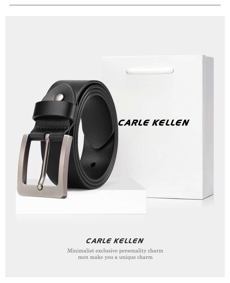 Carle Kellen Men's Leather Belt Genuine Leather Pin Buckle Casual Young People's Belt Pure Cowhide Versatile Jeans Belt