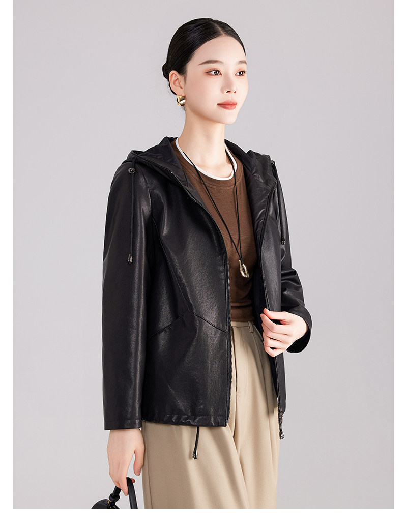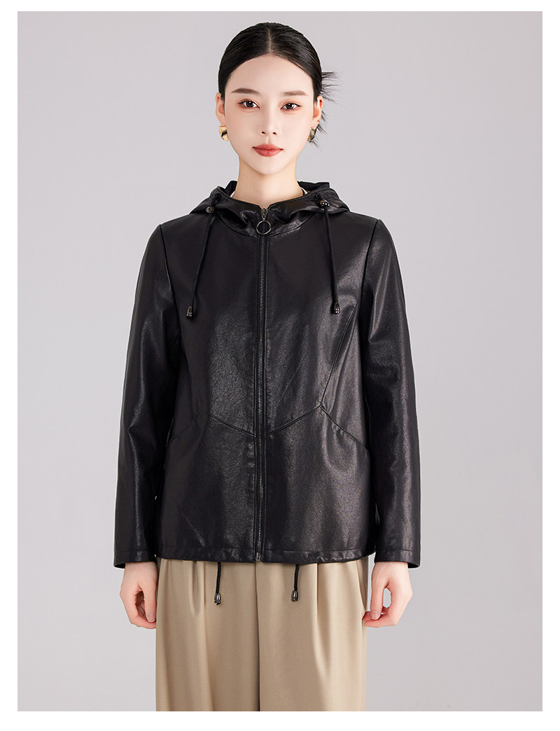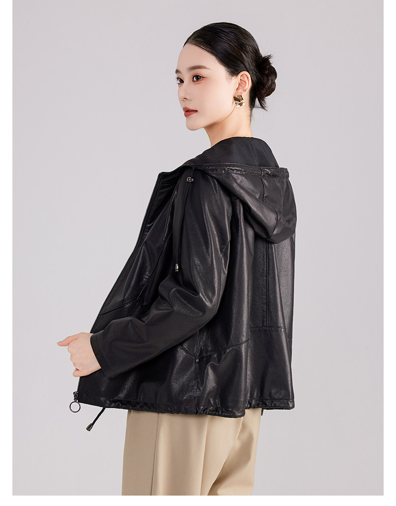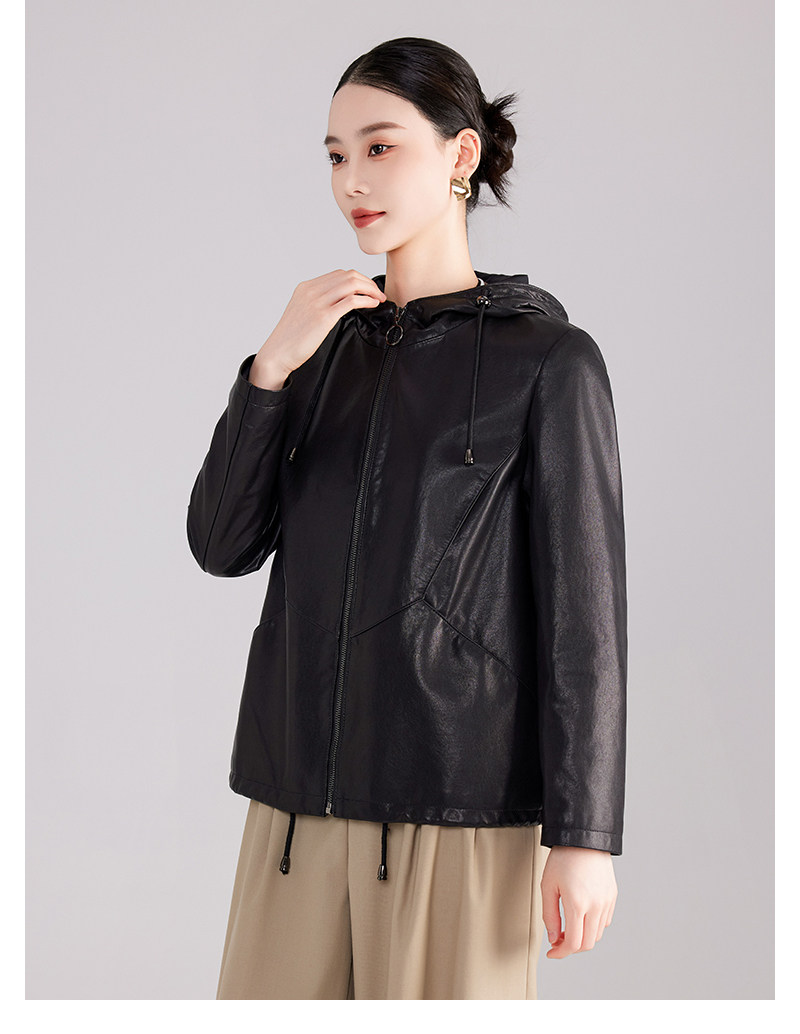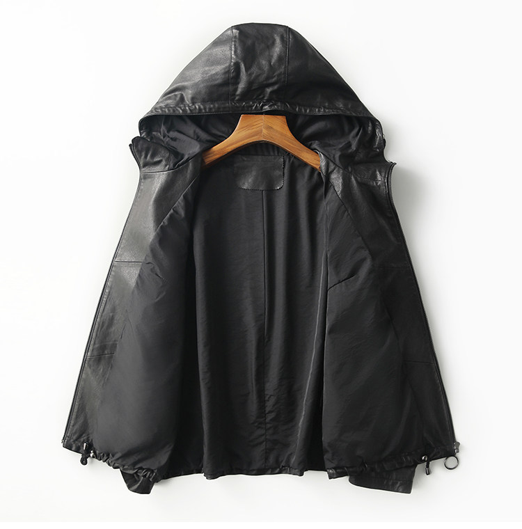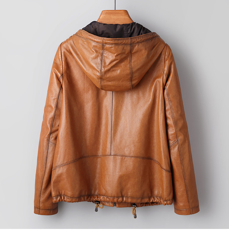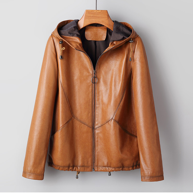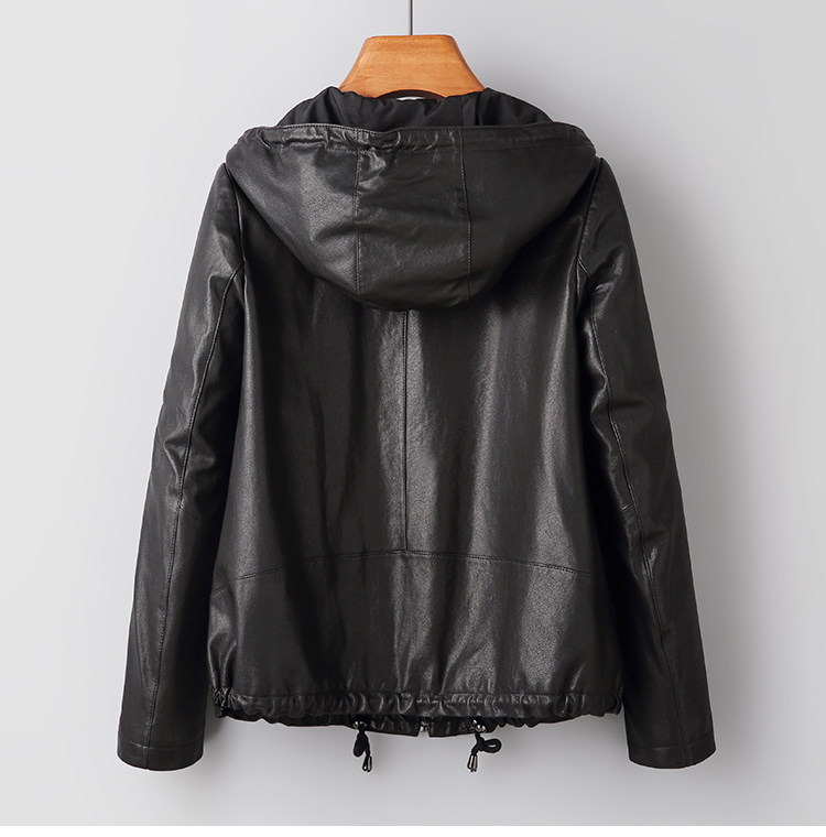 High-End Haining Genuine Leather Jacket for Women, Short Casual Sheepskin Coat, Korean Style Loose Hooded Large Size Leather Jacket for Spring and Autumn