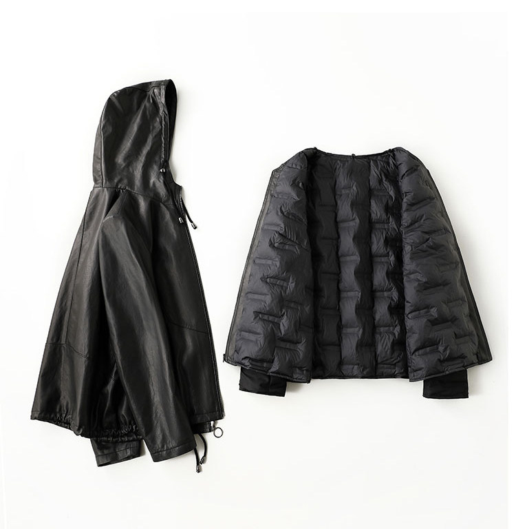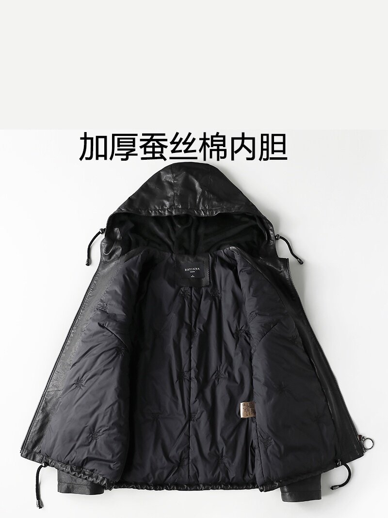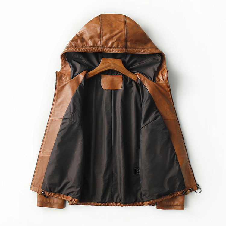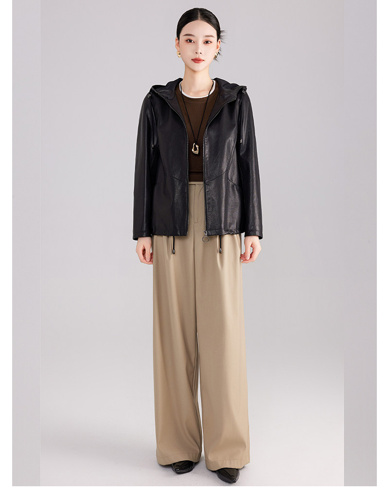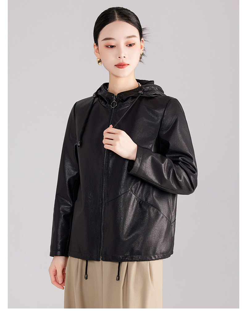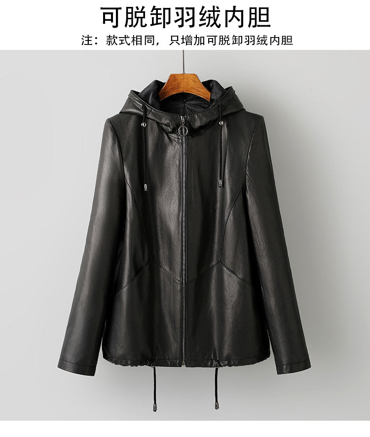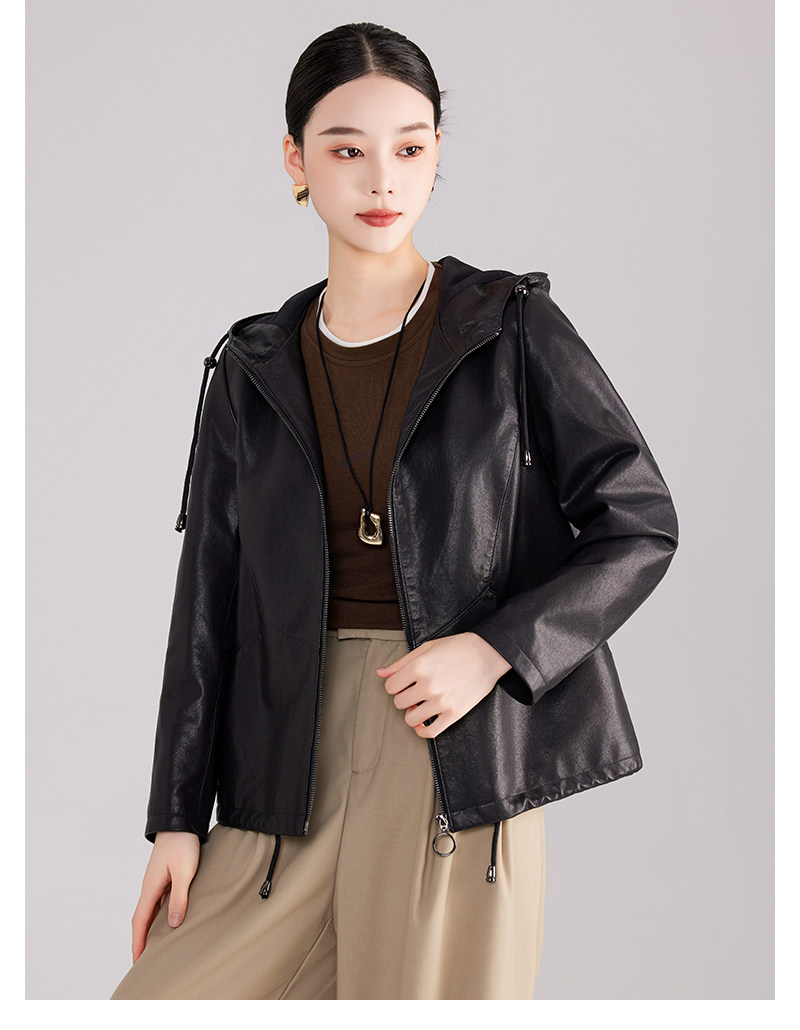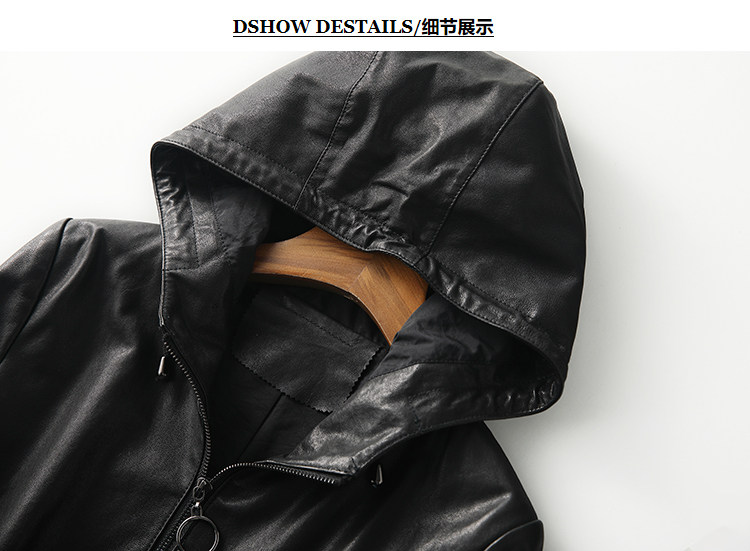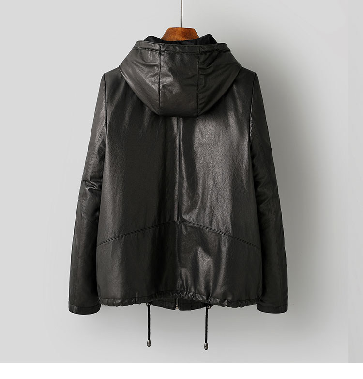 High-End Haining Genuine Leather Jacket for Women, Short Casual Sheepskin Coat, Korean Style Loose Hooded Large Size Leather Jacket for Spring and Autumn