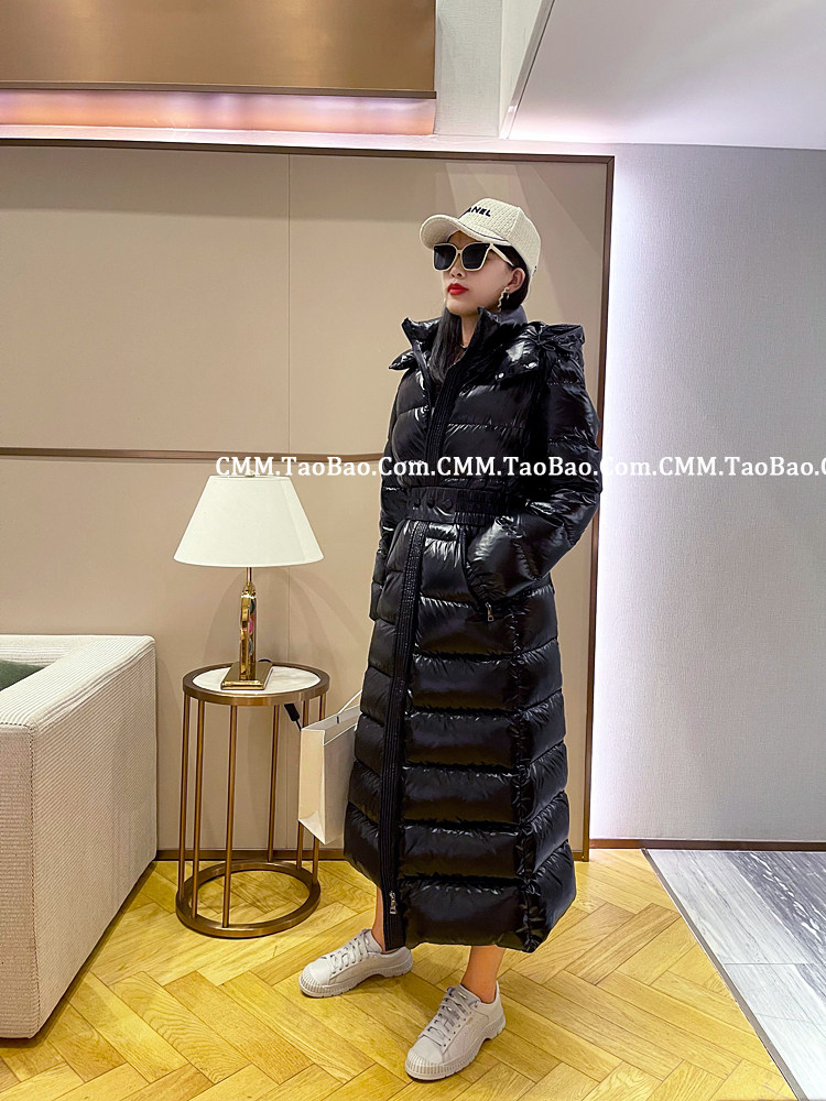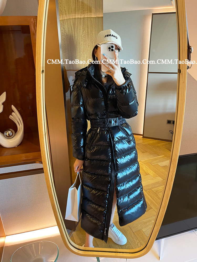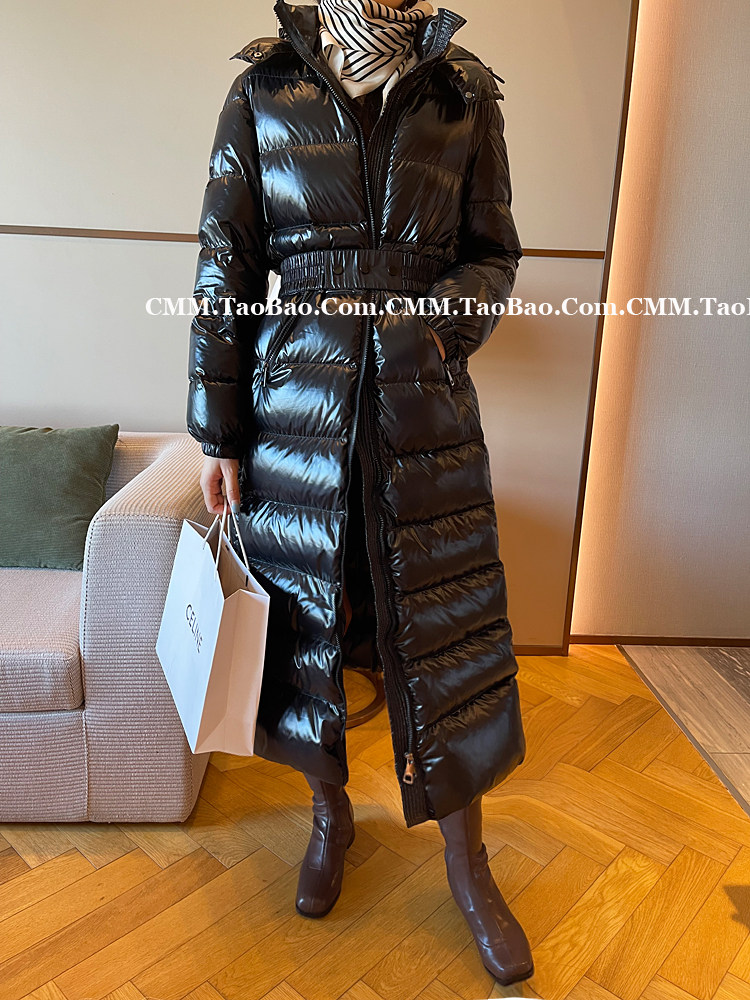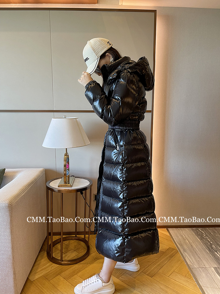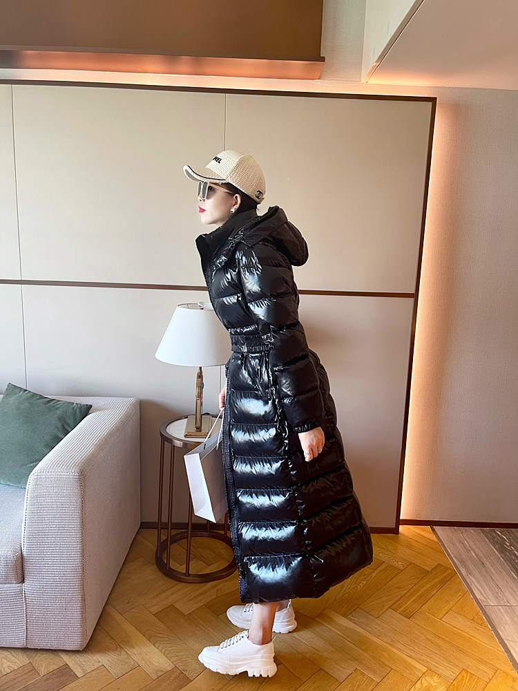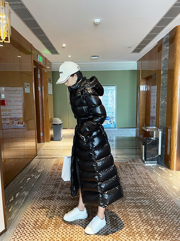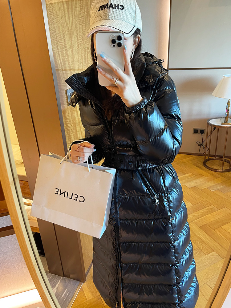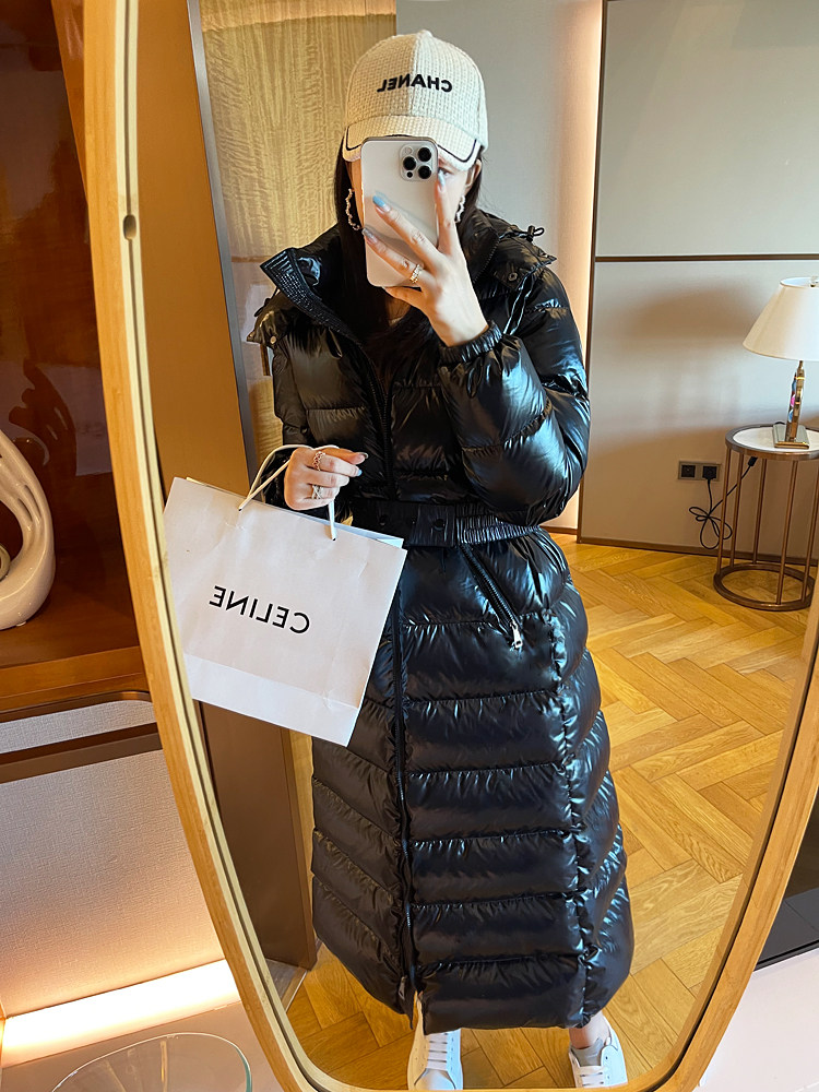 Super thick down jacket for women long to ankle 95 white duck down 400G snow jersey black slim hooded jacket