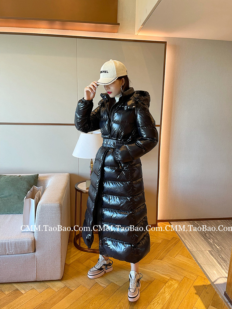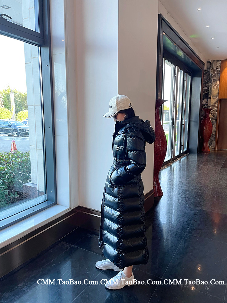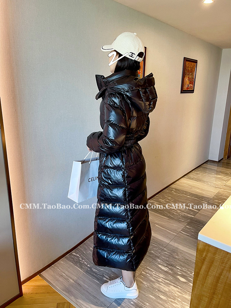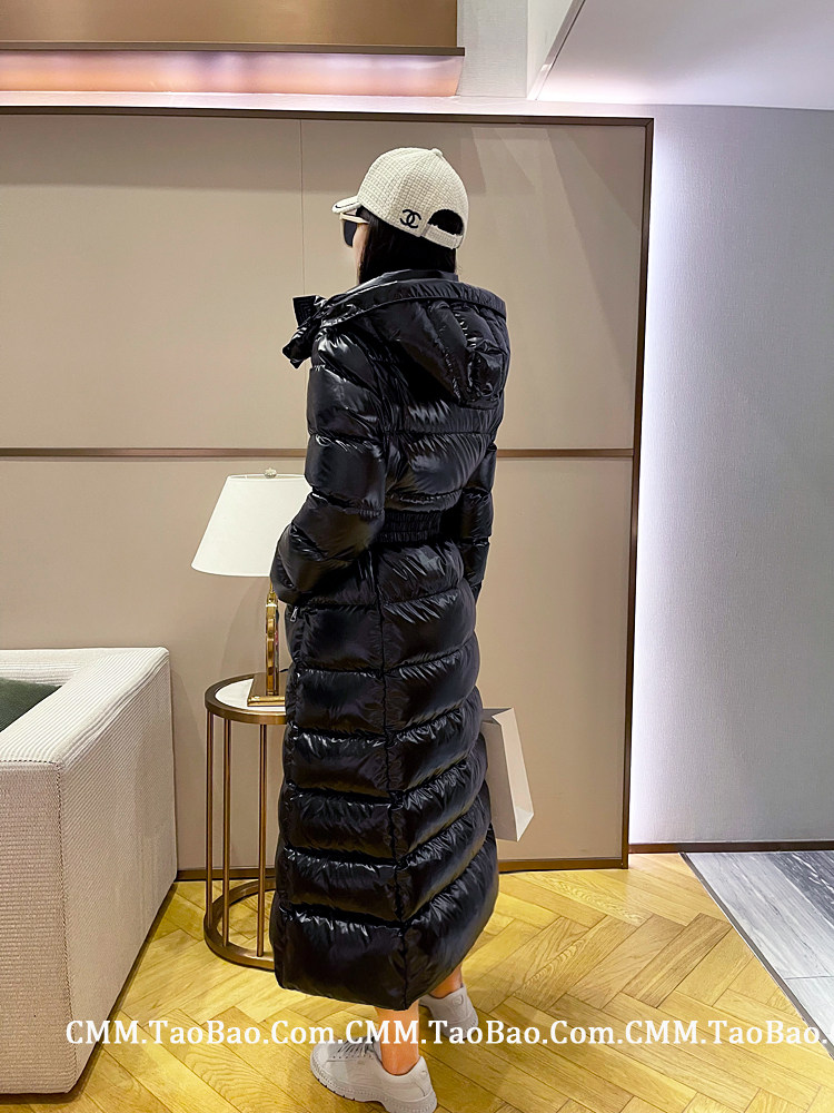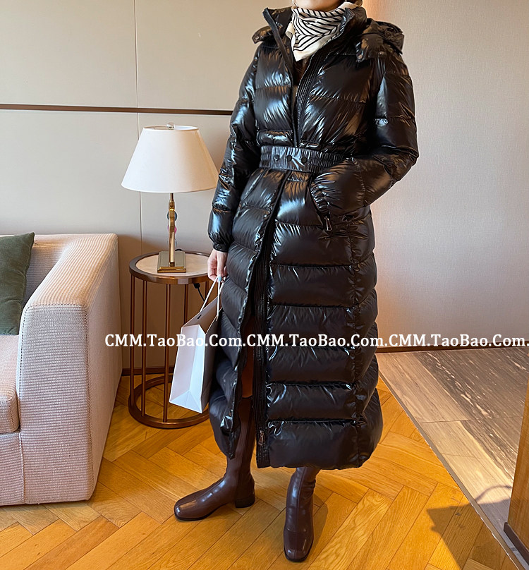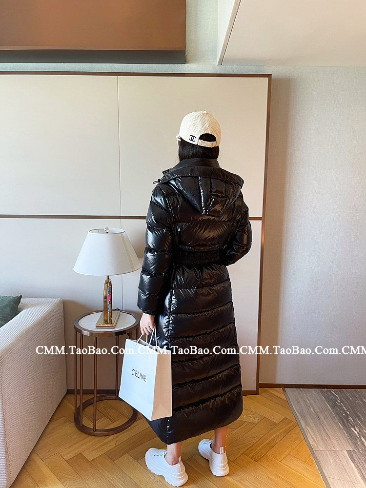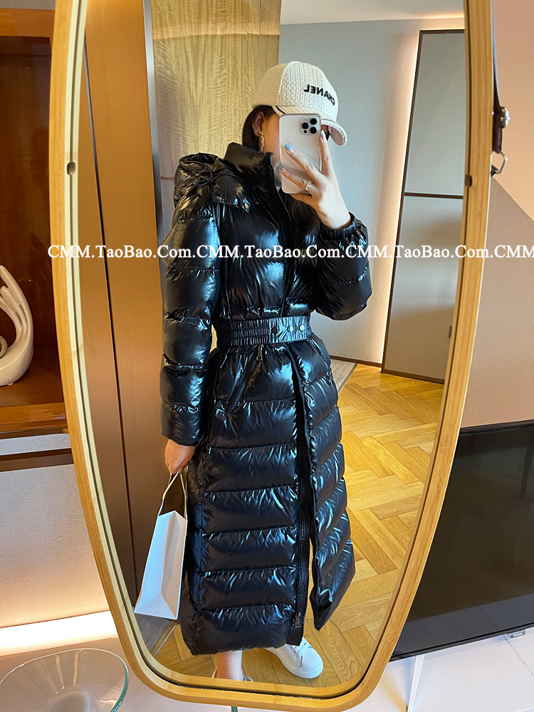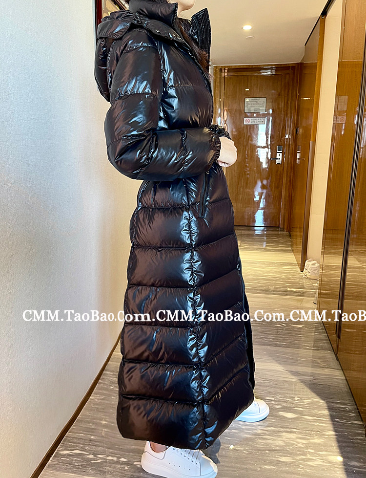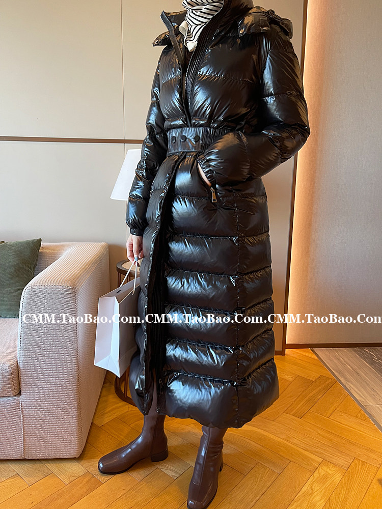 Super thick down jacket for women long to ankle 95 white duck down 400G snow jersey black slim hooded jacket