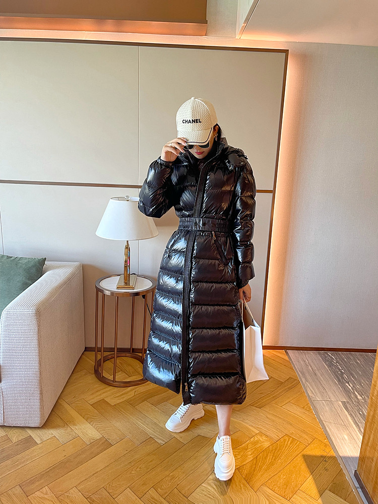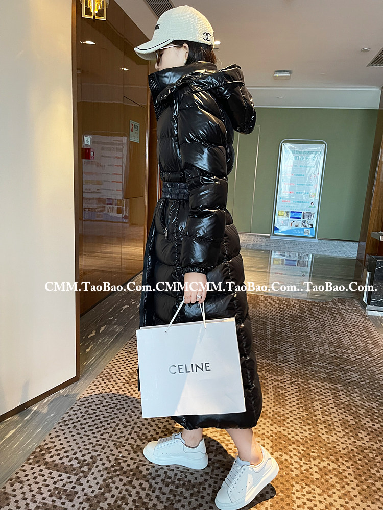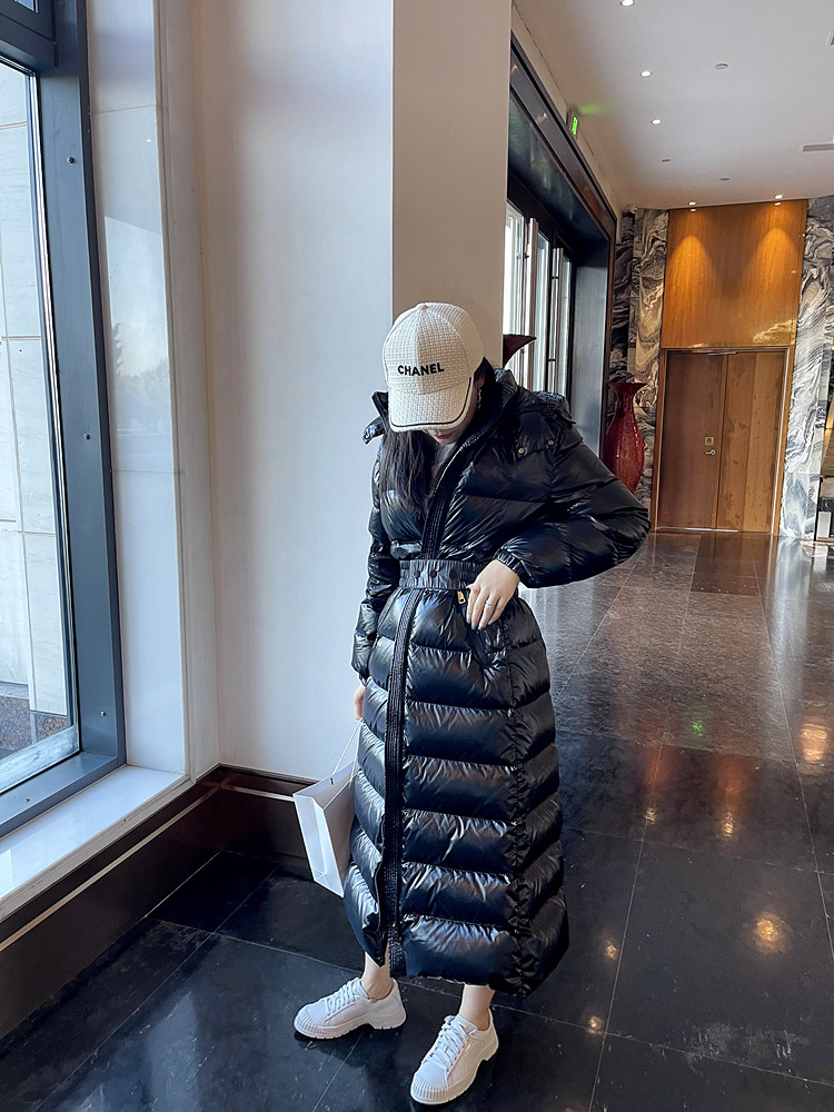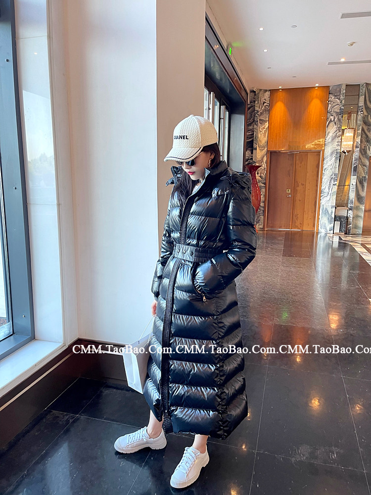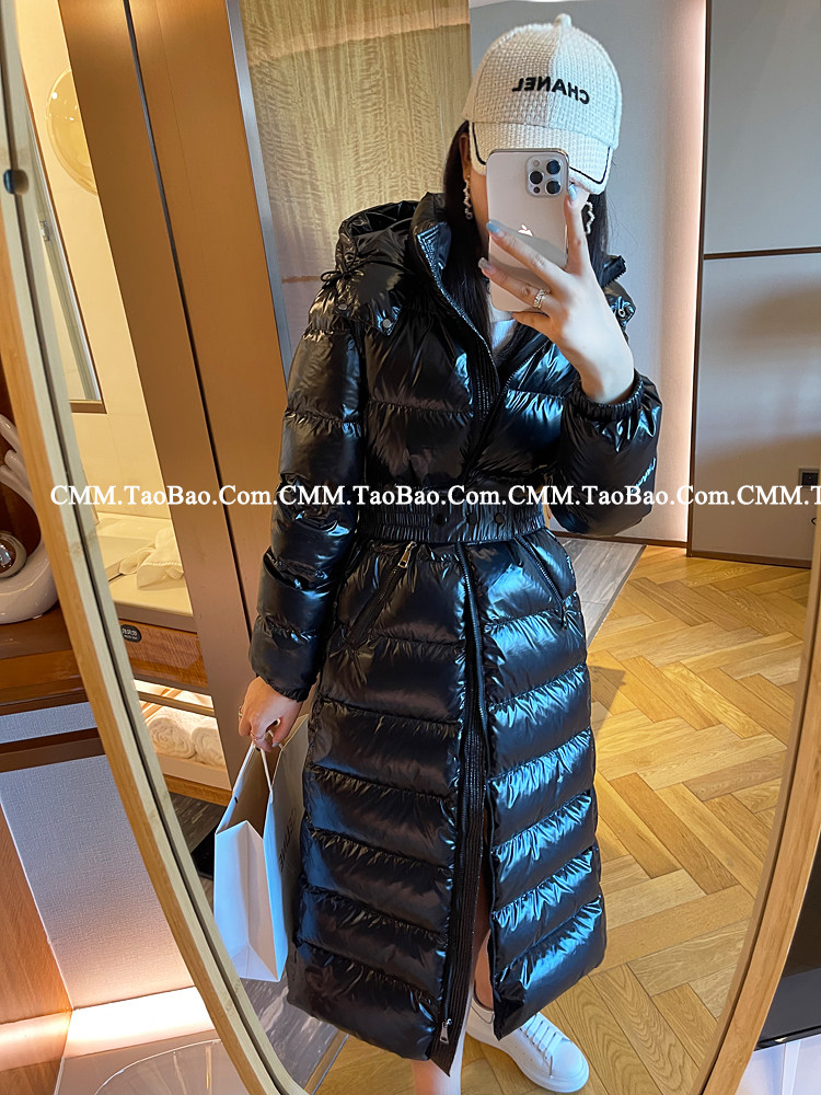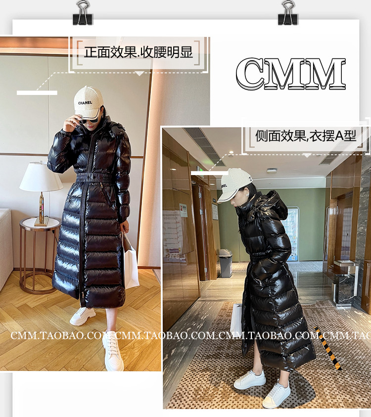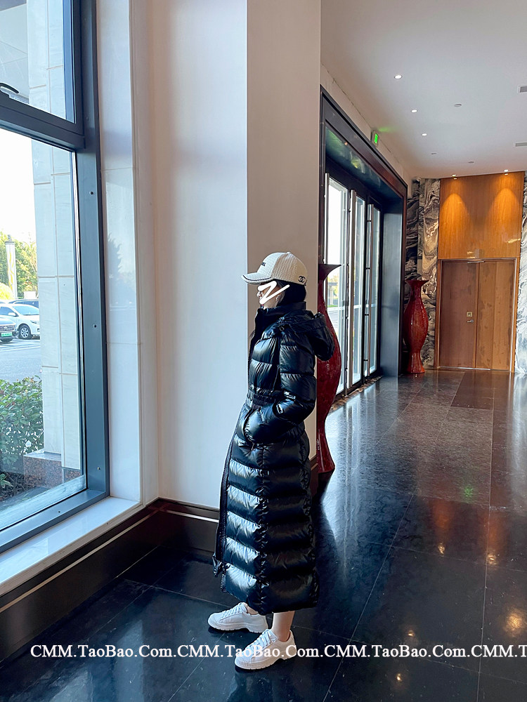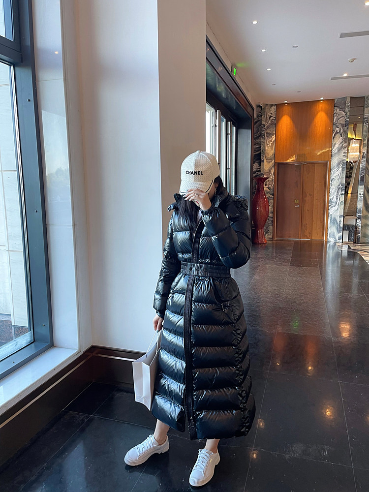 Super thick down jacket for women long to ankle 95 white duck down 400G snow jersey black slim hooded jacket