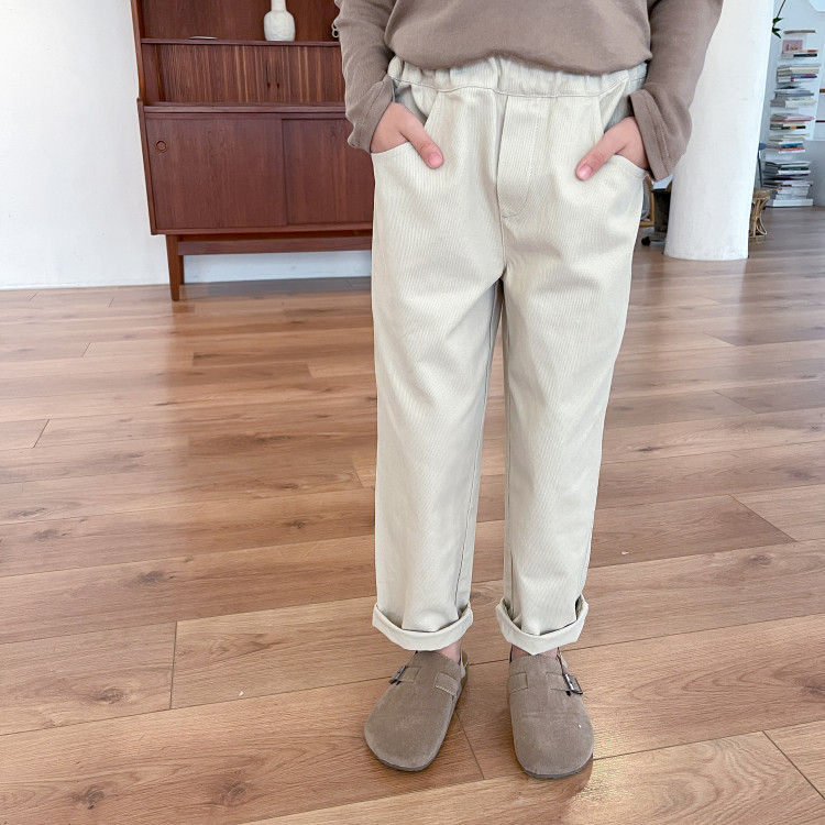 Qiji spring and autumn new children's clothing medium and large children's pure cotton casual trousers for boys and girls versatile straight pants solid color