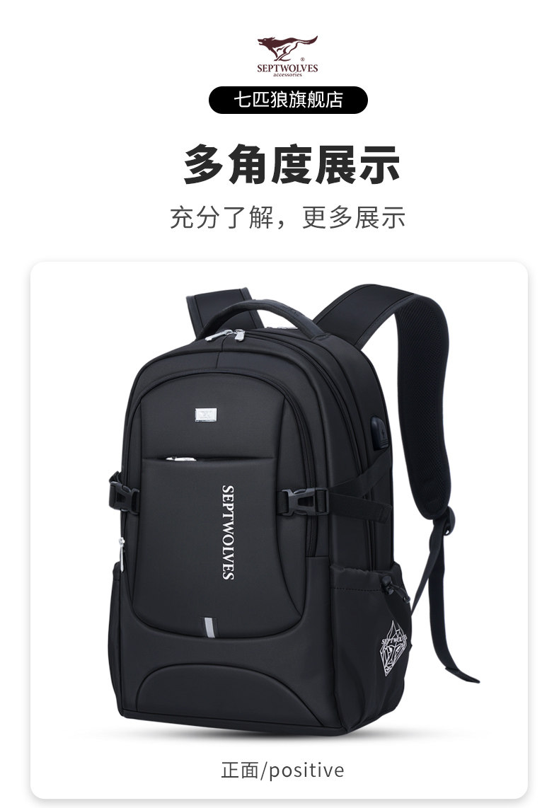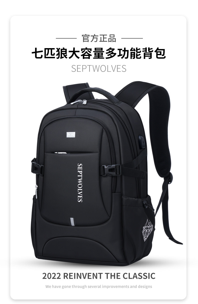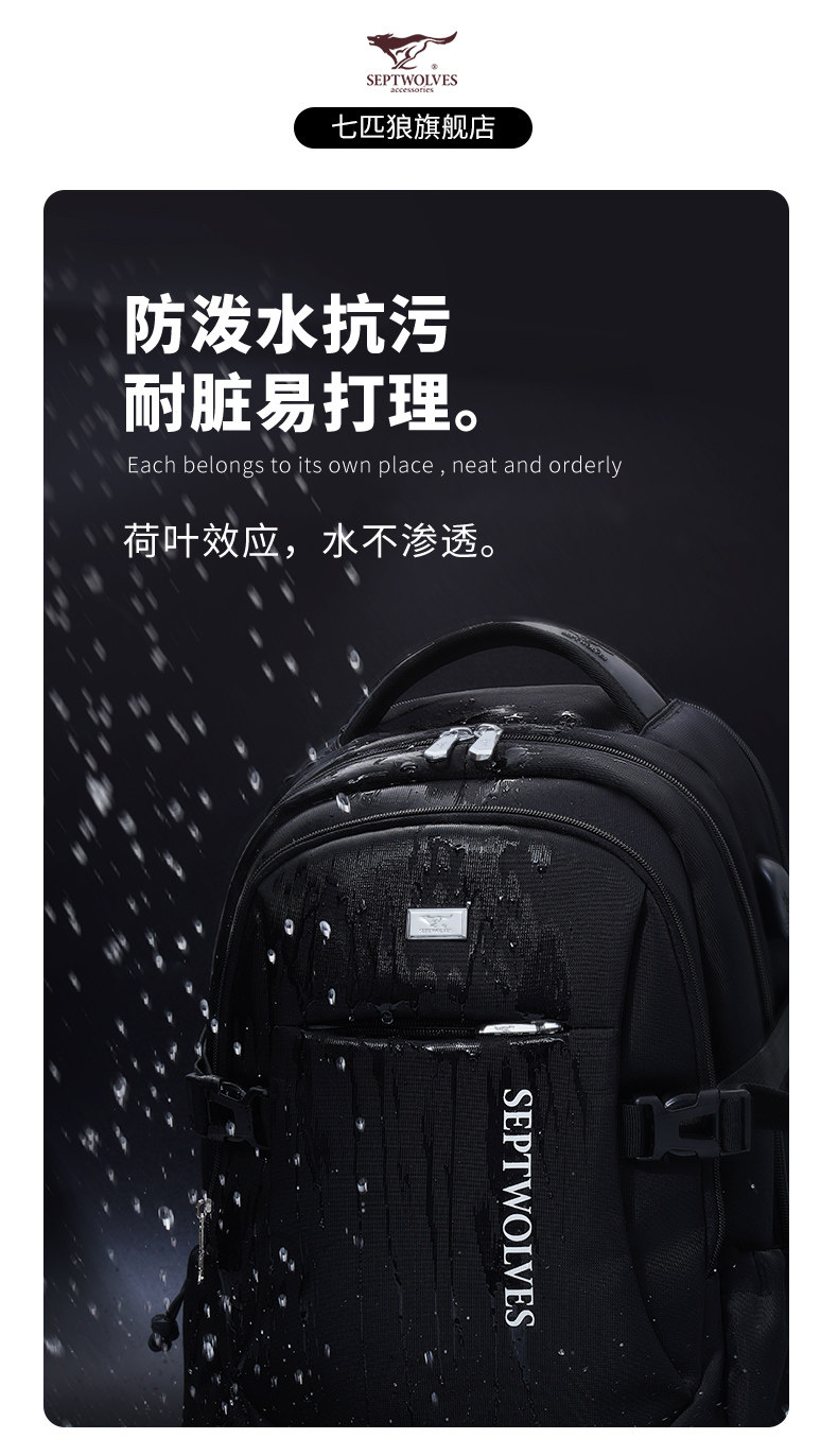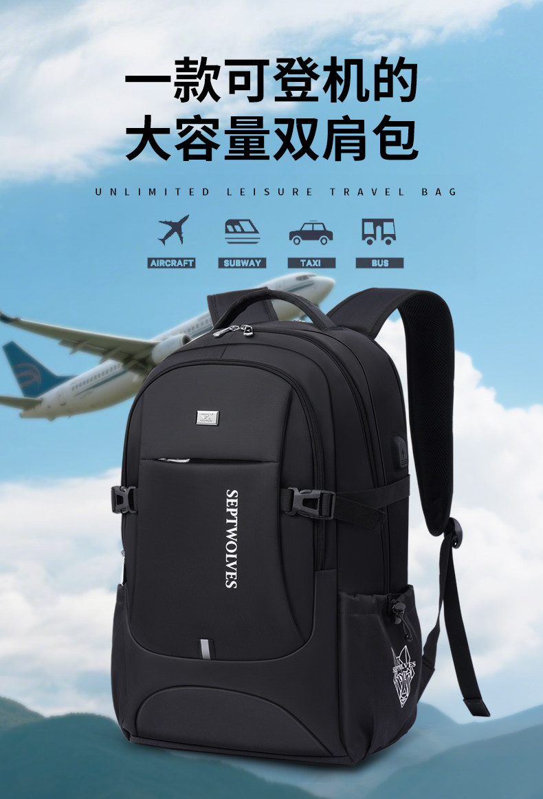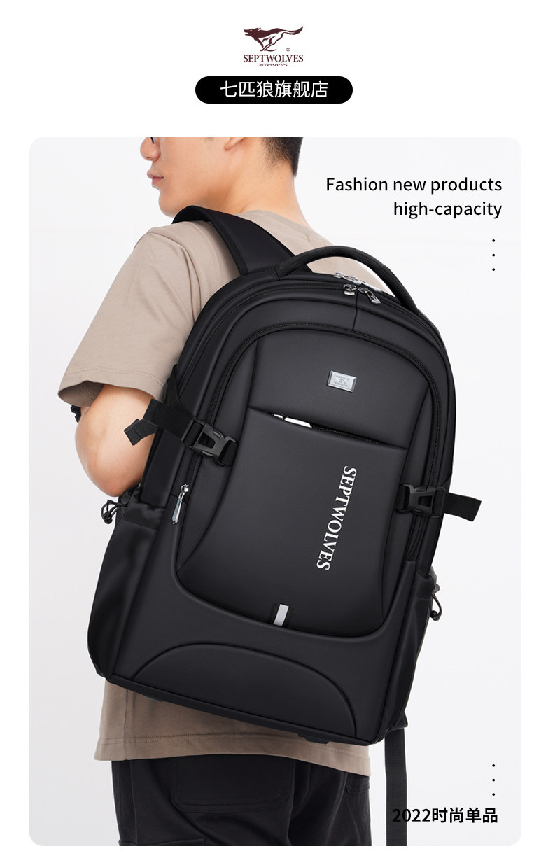 Septwolves backpack large capacity men's travel backpack 2025 new school bag men's business trip computer bag