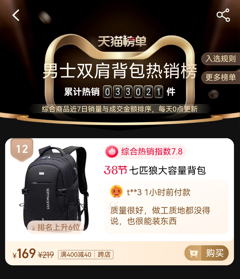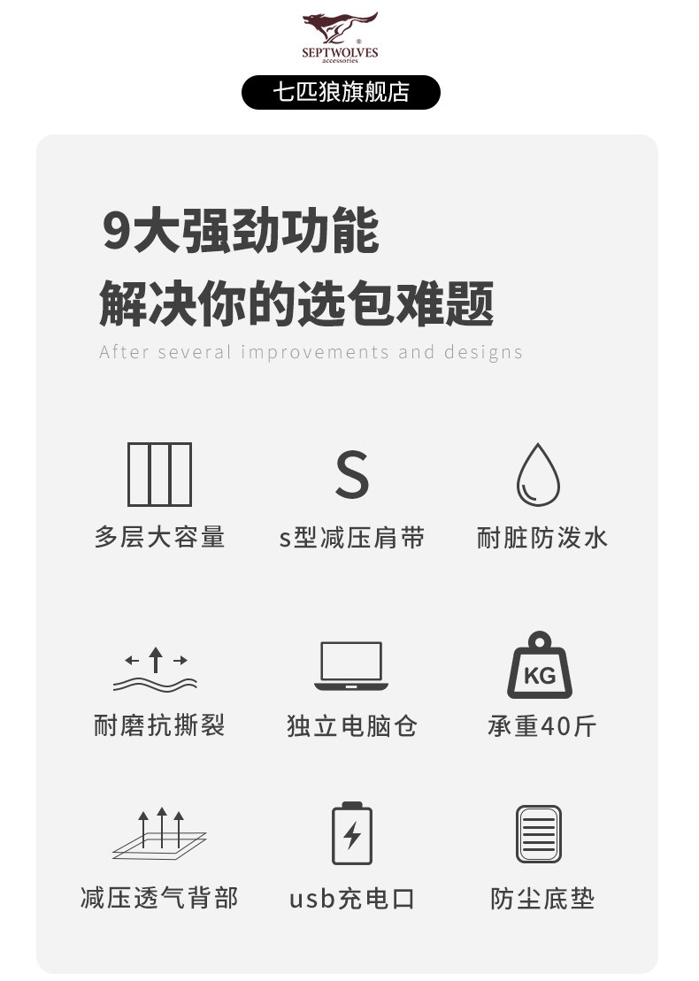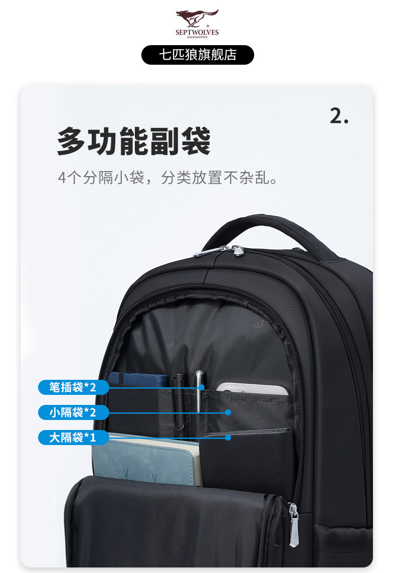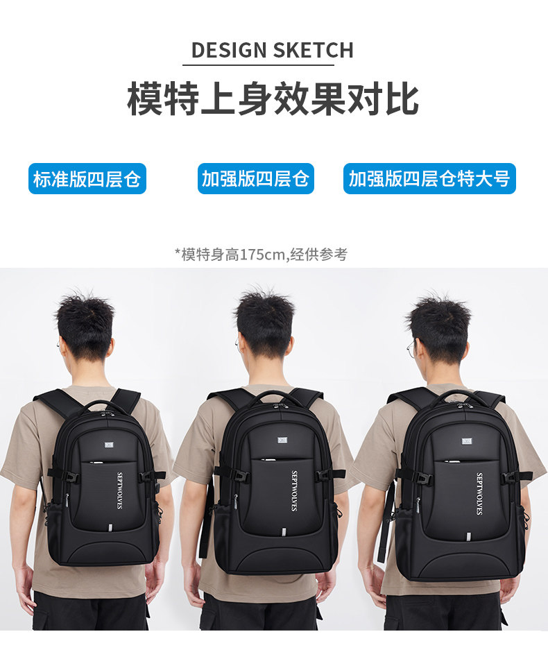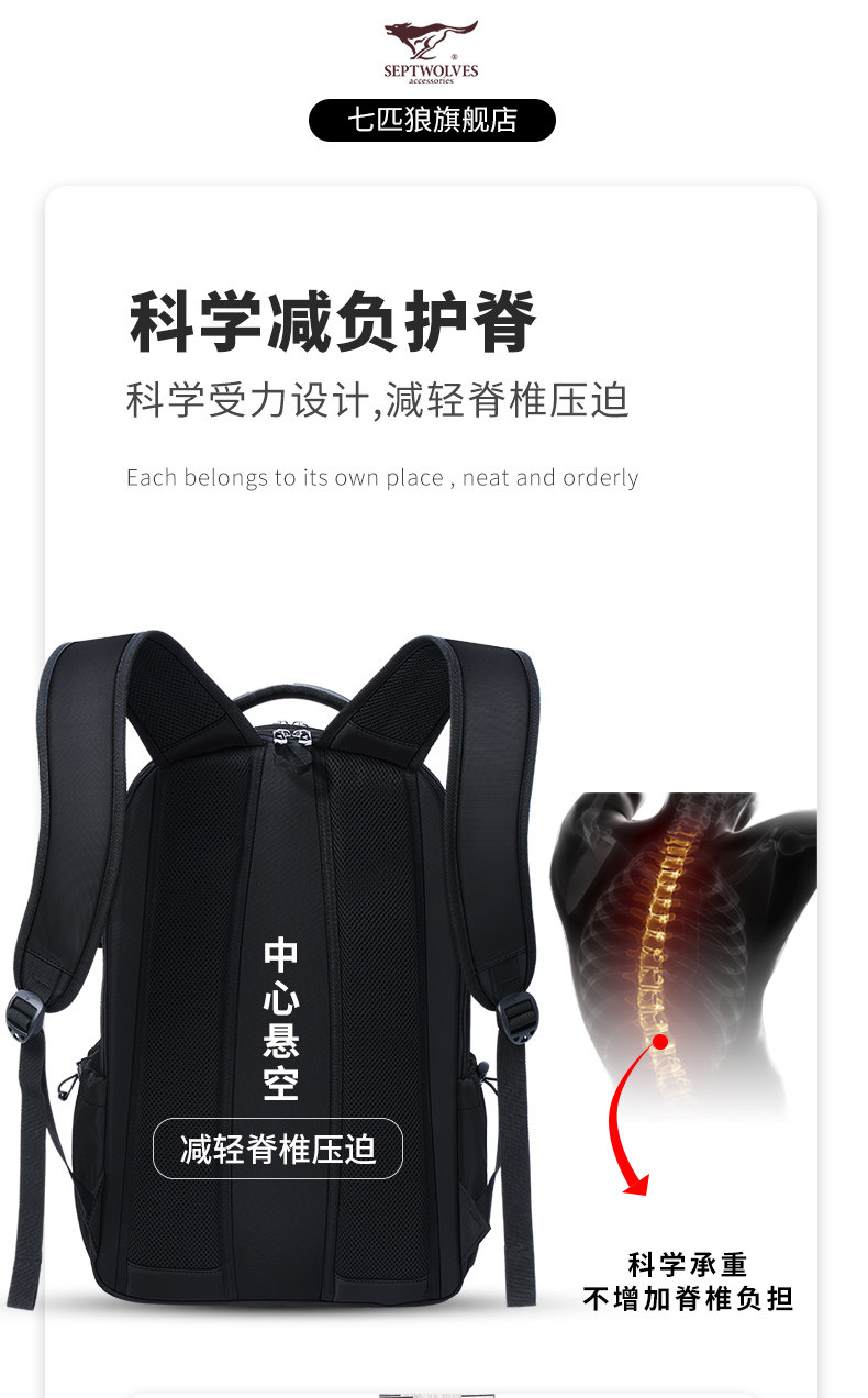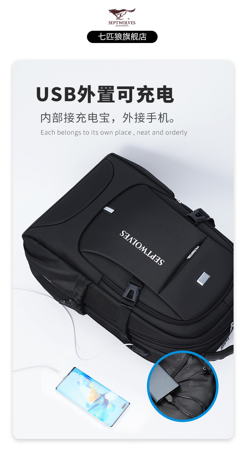 Septwolves backpack large capacity men's travel backpack 2025 new school bag men's business trip computer bag