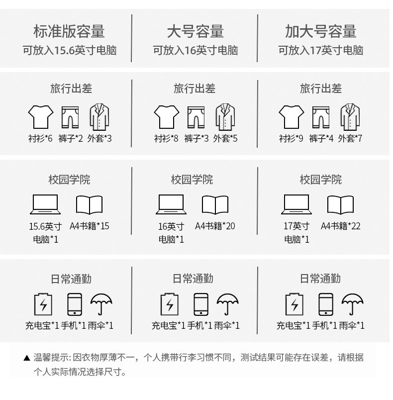 Sort by color Official flagship store, ten-year warranty, replace damaged items with new ones,Size comparison table, choose according to your needs ~ official authentic product,Ready stock, quick delivery, attentive service, contact customer service for a free repackaging bag,Contact customer service to support customized text patterns,Waterproof and wear-resistant, standard 4 layers 40L, large capacity for commuting, 80% of users choose to buy,High-quality Oxford fabric, reinforced 4-layer 60L, recommended for 3-5 days of business travel,Breathable shoulder strap Reinforced 4 layers extra large 80L 7 days + large capacity recommended,Burden reduction and spine protection standard 3-layer 35L daily commuting model,Travel in one bag, lightweight model with 3 compartments 30L, suitable for daily commuting,Fluorescent mark 2025 classic new 3-layer 45L suitable for business commuting,Can hold 17-inch laptop. Upgrade to large shoe compartment 60L. Recommended for short-term business trips of 3-5 days.,Can hold 17-inch laptop. Upgrade to large size with enhanced shoe compartment 80L. Recommended for 7-day business trip.,Can hold 17-inch laptop, upgraded and strengthened shoe compartment, new 80L, recommended for 7-day business trip,Suitable for outdoor mountaineering, camouflage black,Suitable for outdoor mountaineering, camouflage green,Breathable shoulder straps Standard 4-layer 40L+U-shaped pillow Large capacity for commuting 80% of users choose to buy,Waterproof and scratch-resistant, reinforced 4-layer 60L+U-shaped pillow, recommended for 3-5 days of business travel,Electroplated alloy smooth zipper, reinforced 4-layer extra large 80L + U-shaped pillow, 7 days + large capacity recommended,Travel partner, standard 4-layer 40L + rain cover, large capacity for commuting, 80% of users choose to buy,Travel in one package, reinforced 4-layer 60L + rain cover, recommended for 3-5 days of business travel,Large capacity, multiple compartments, reinforced 4 layers, extra large 80L + rain cover, 7 days + large capacity recommended,Comparable to suitcase, upgraded new 45L, dedicated for travel, wet and dry separation